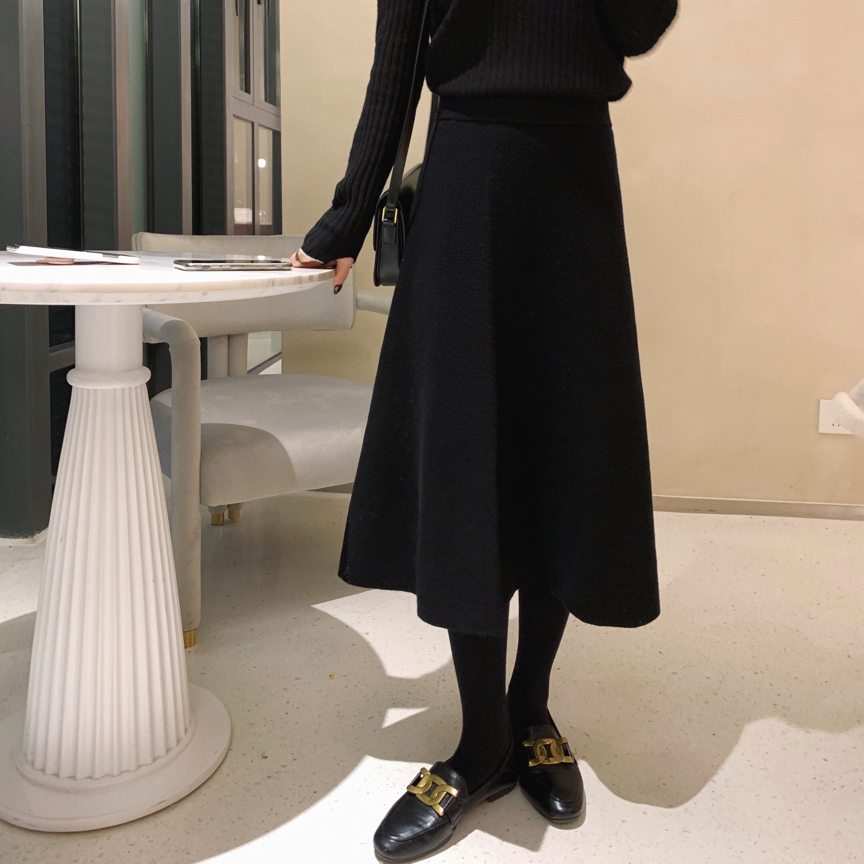 Весенняя трикотажная демисезонная юбка, высокая талия