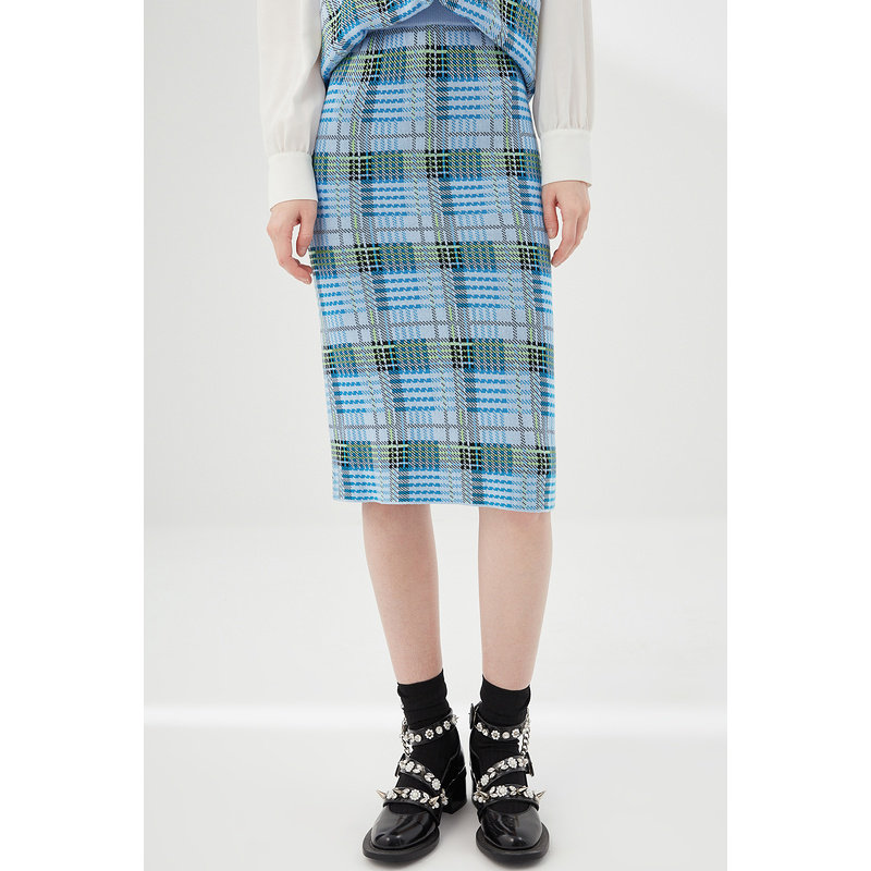 Весенняя модная трикотажная юбка, коллекция 2021, тренд сезона, с акцентом на бедрах