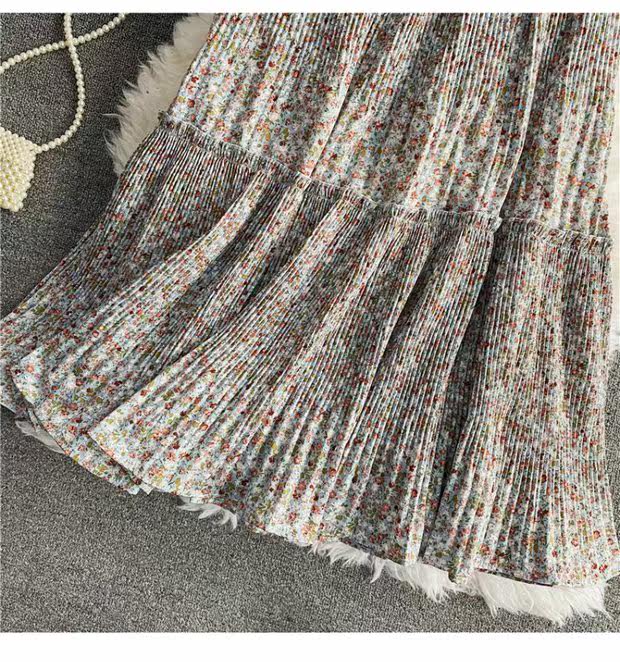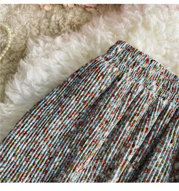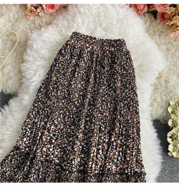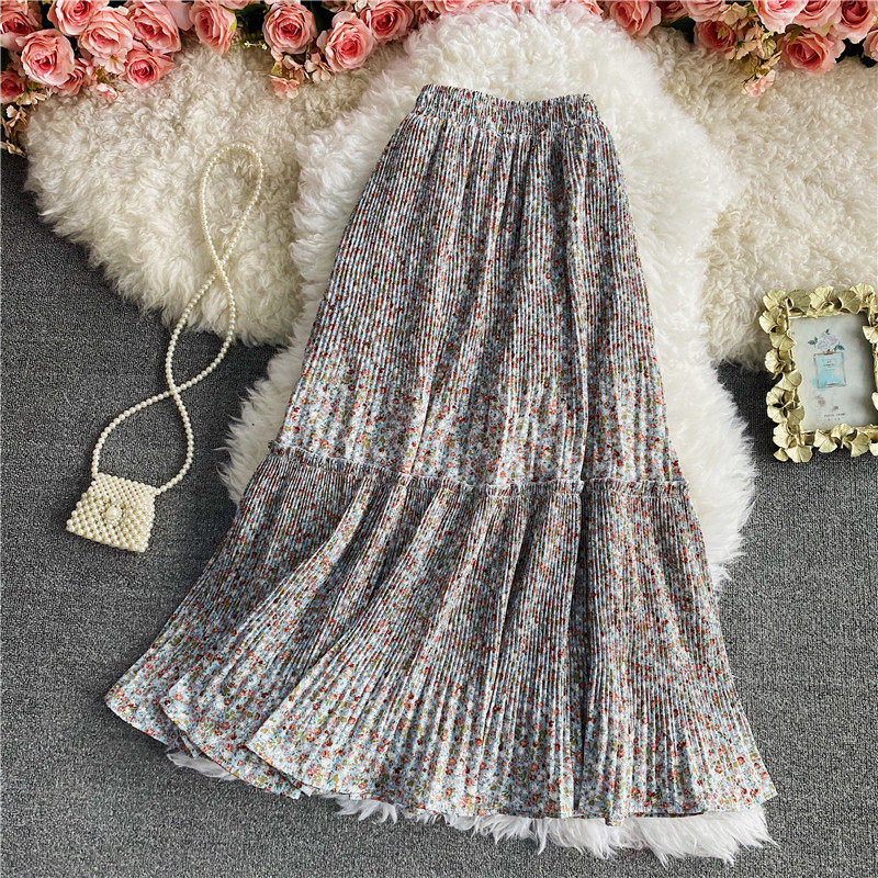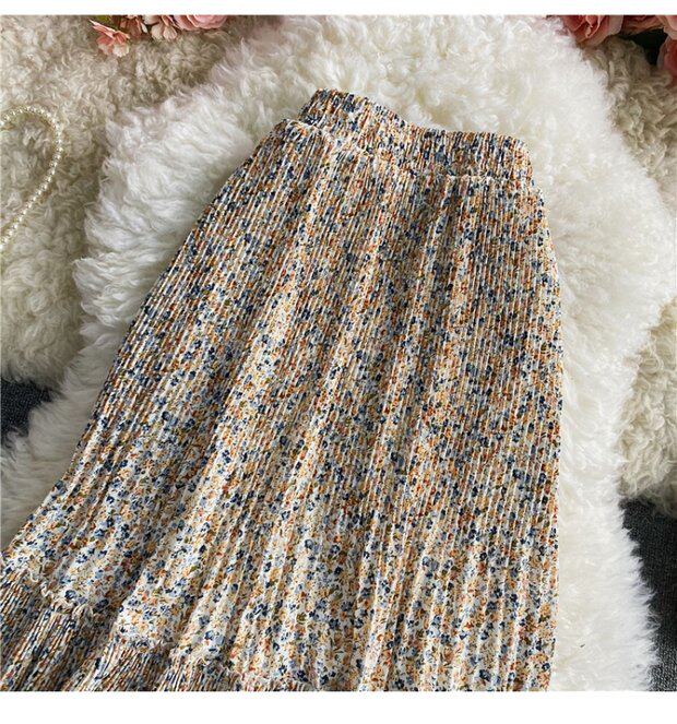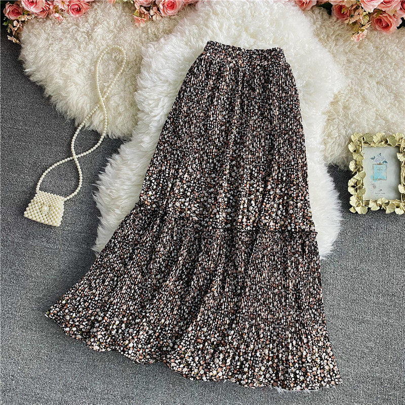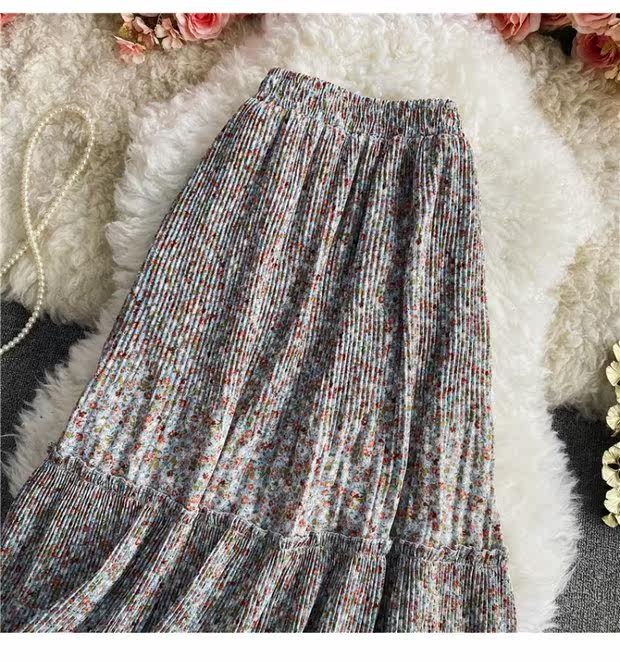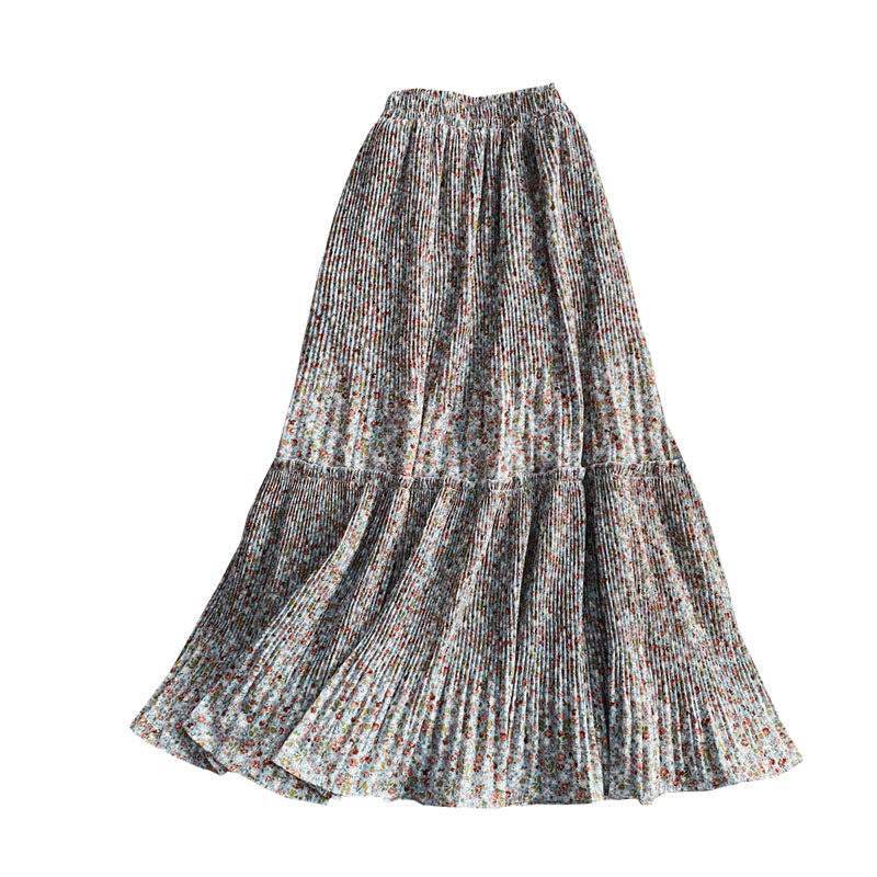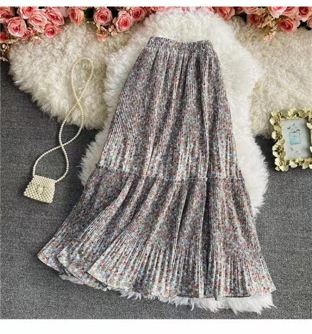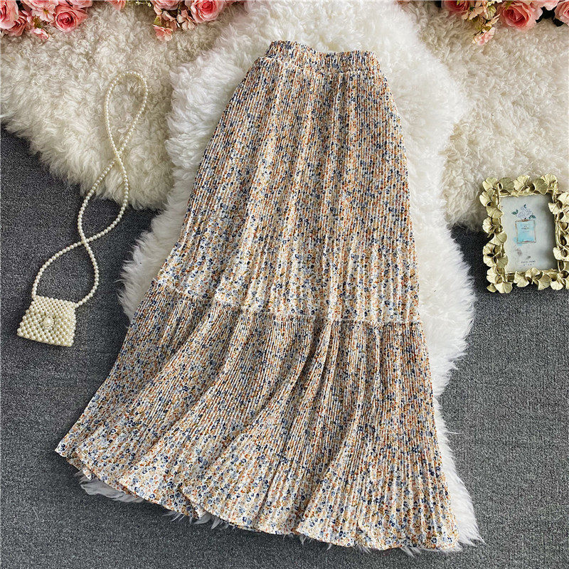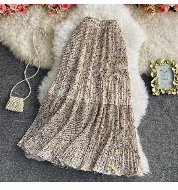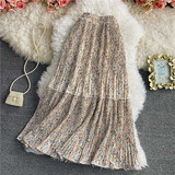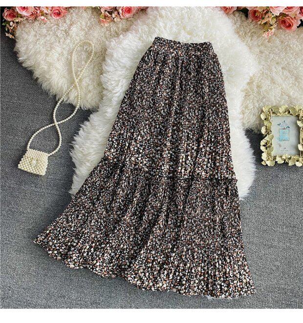 Летняя длинная шифоновая юбка в складку, сезон 2021, высокая талия, длина миди, средней длины, эластичная талия, А-силуэт