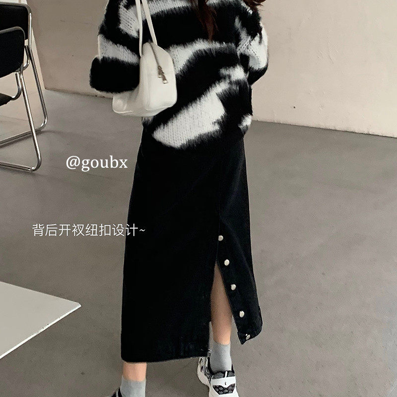 Осенняя приталенная длинная джинсовая юбка, 2023, большой размер, высокая талия, средней длины, А-силуэт
