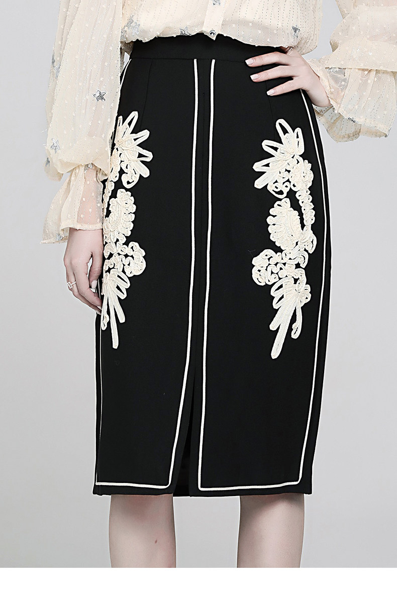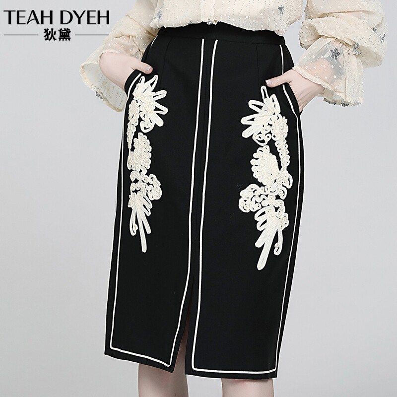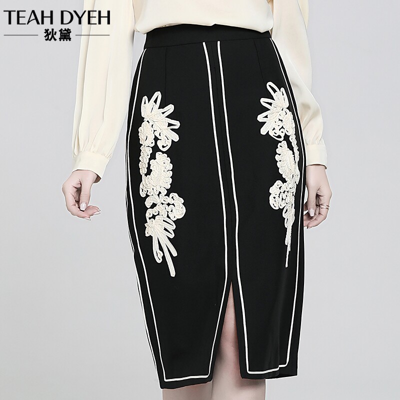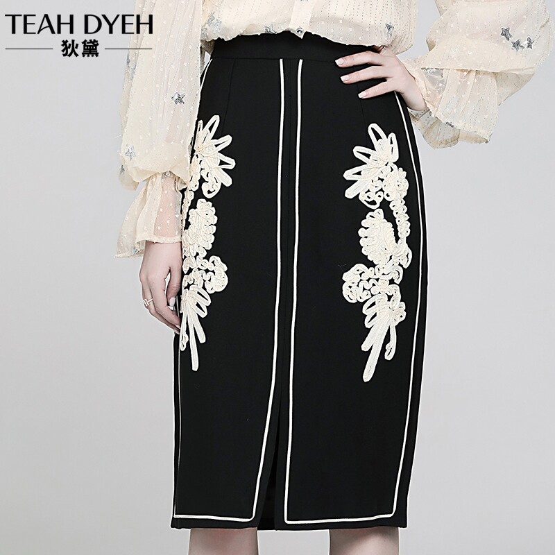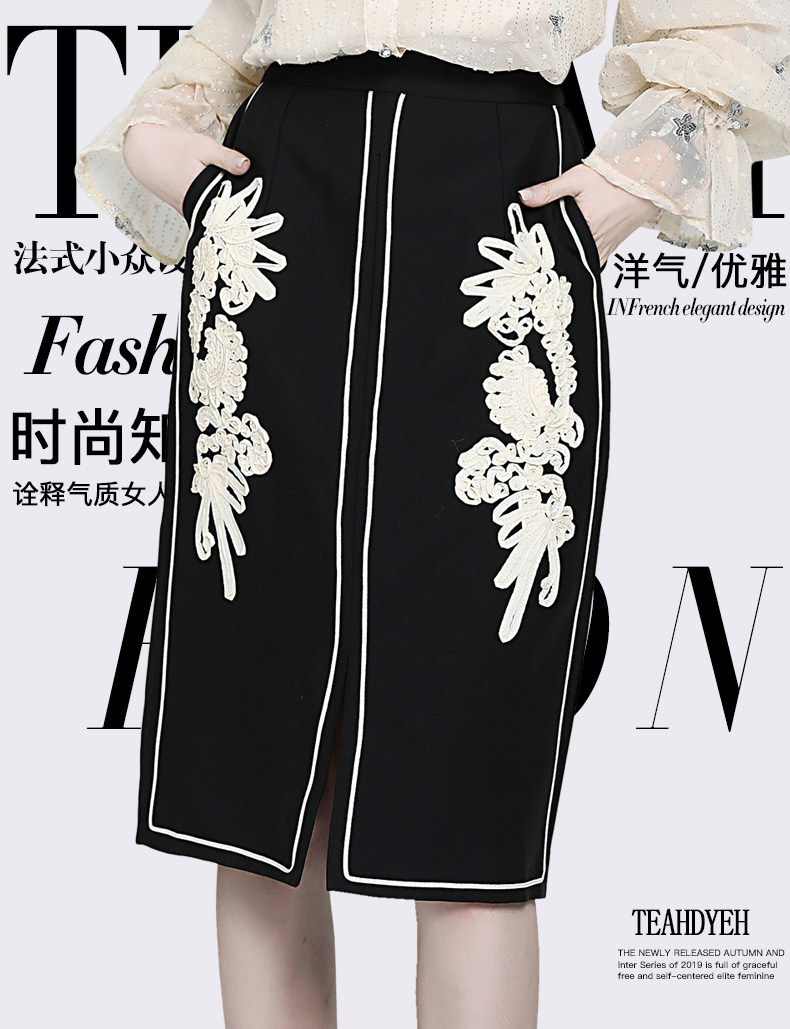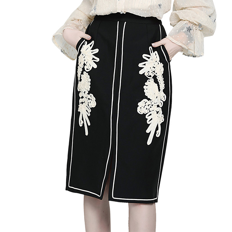Ретро кружевная приталенная модная юбка, французский стиль, с вышивкой, А-силуэт, с акцентом на бедрах