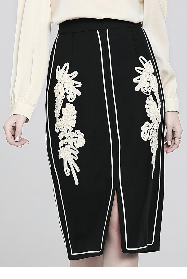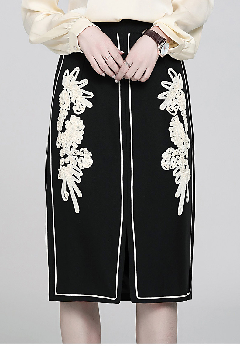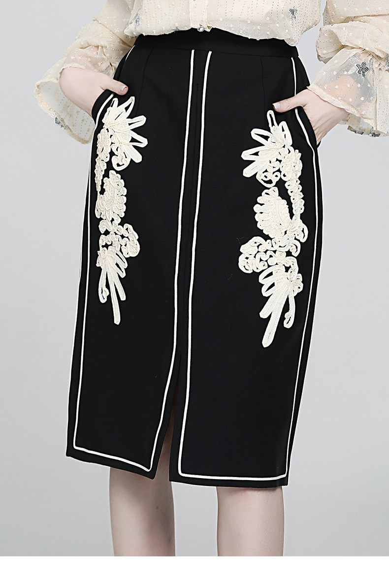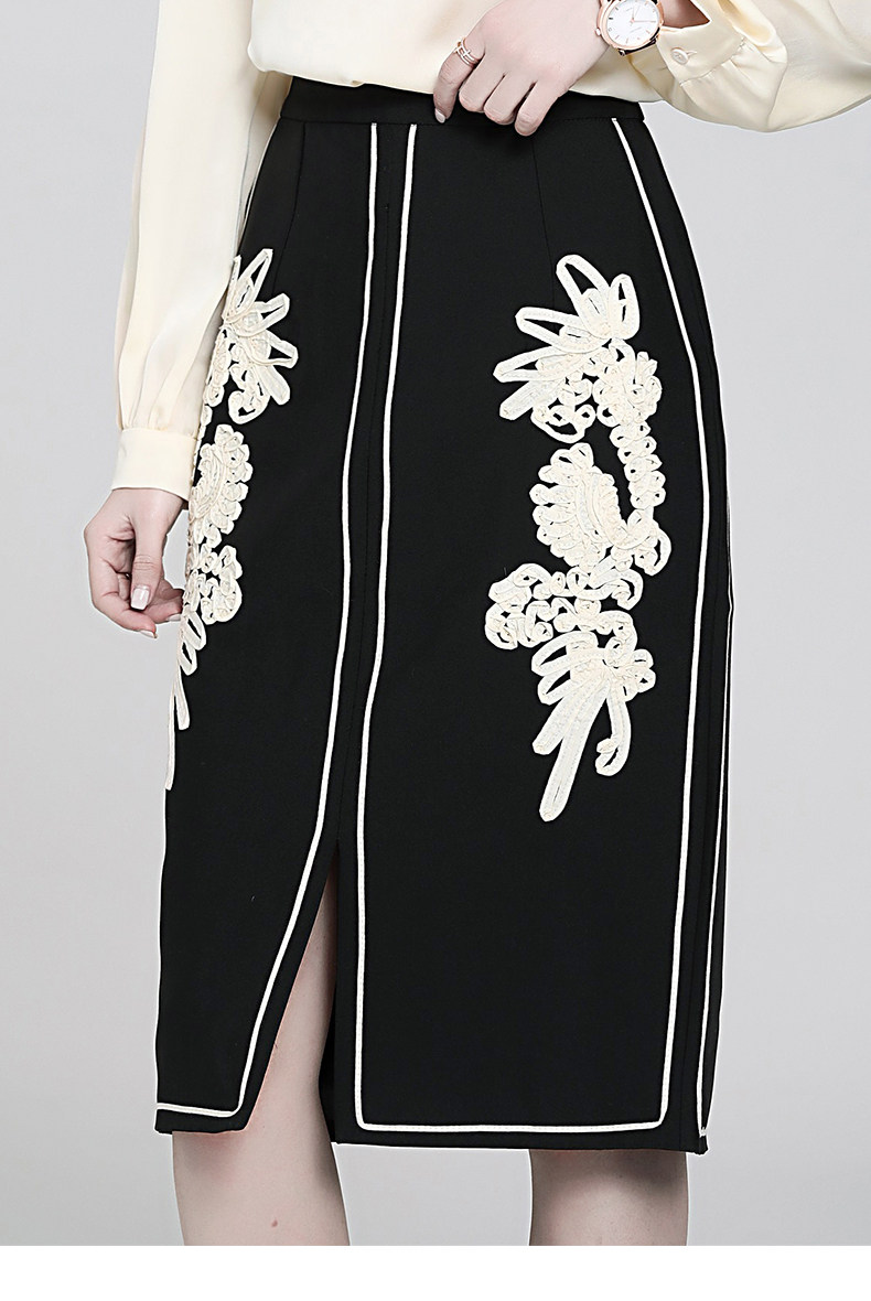 Ретро кружевная приталенная модная юбка, французский стиль, с вышивкой, А-силуэт, с акцентом на бедрах