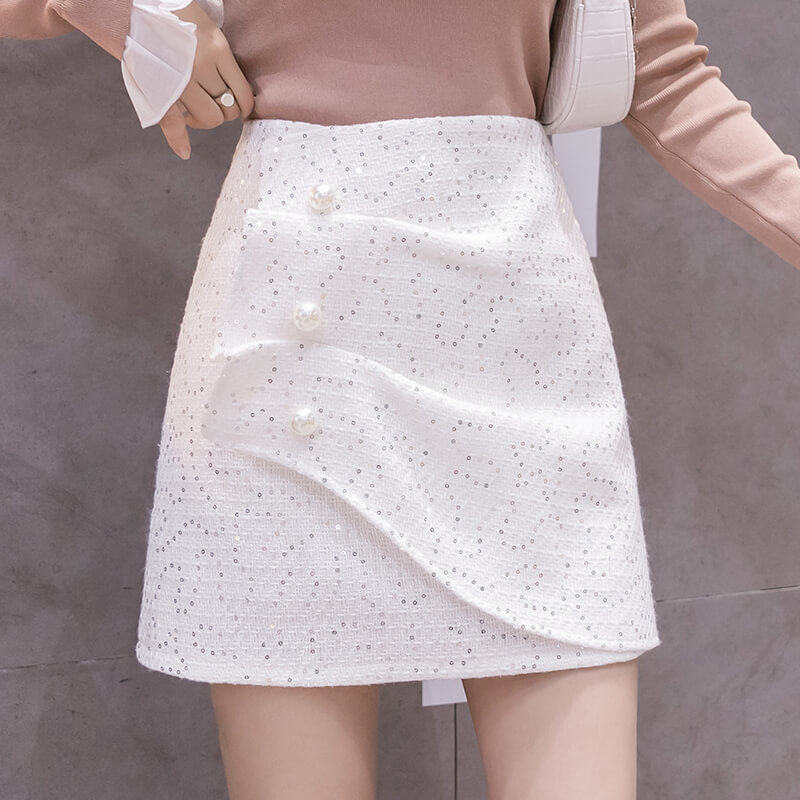 Белая юбка, осенняя мини-юбка, модные штаны, поясная сумка, коллекция 2023, высокая талия, А-силуэт