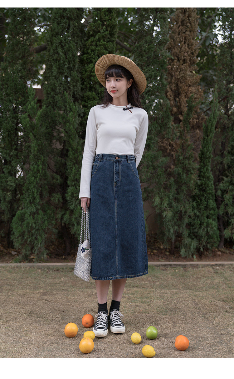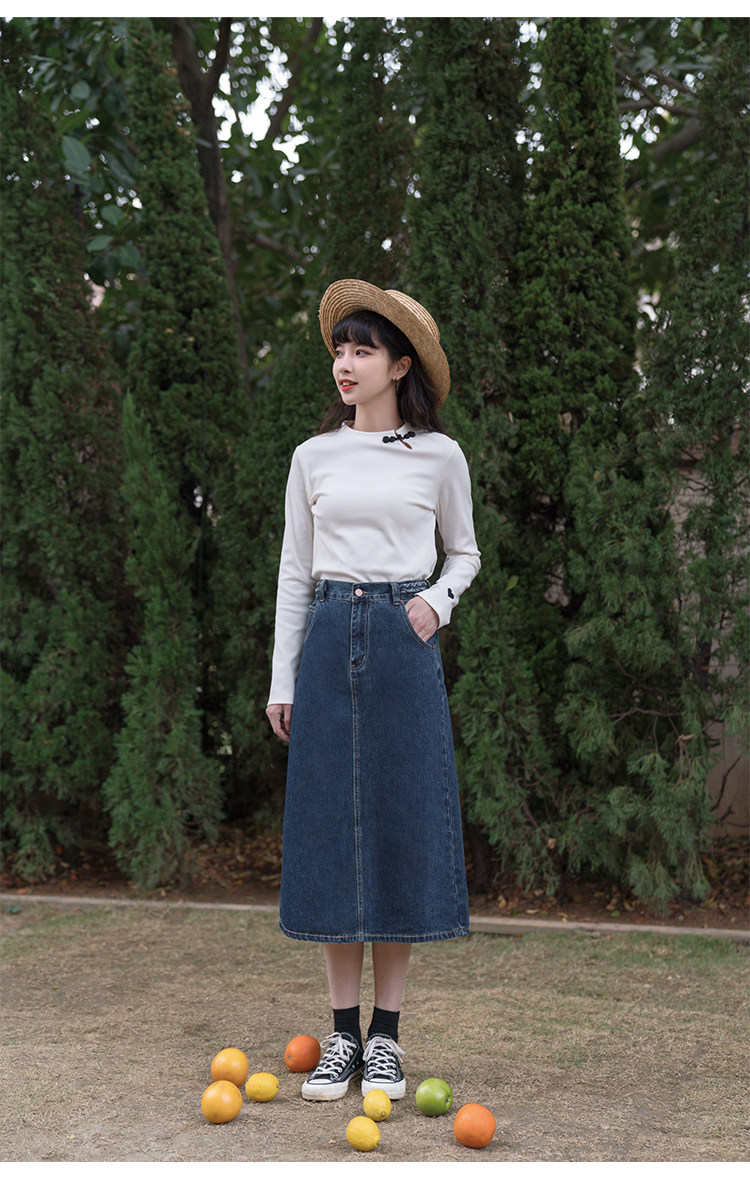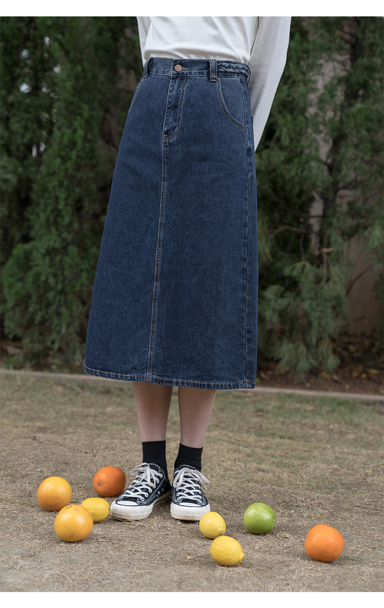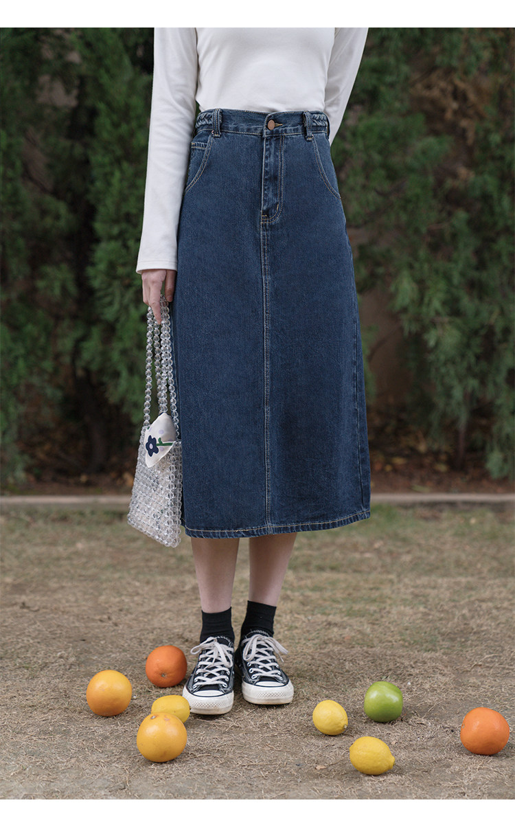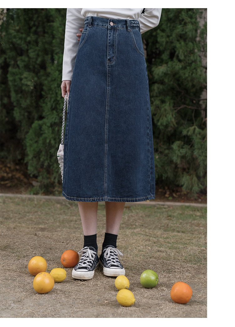 Синяя осенняя длинная приталенная джинсовая юбка, средней длины, А-силуэт