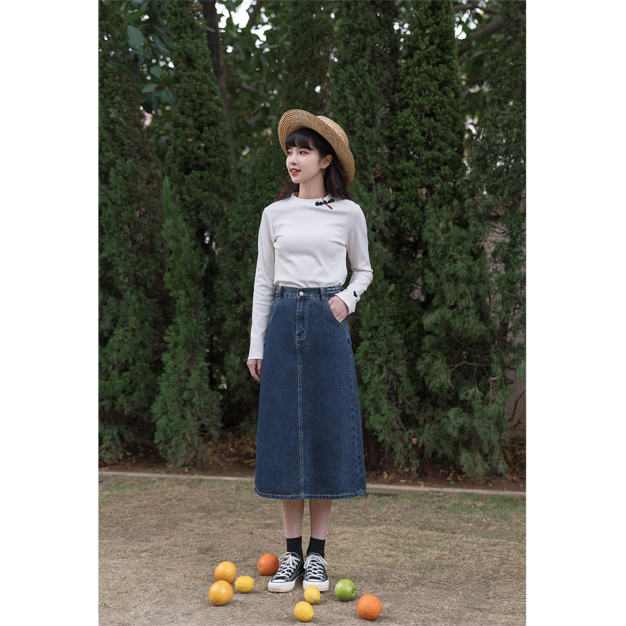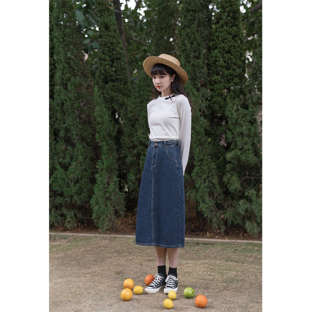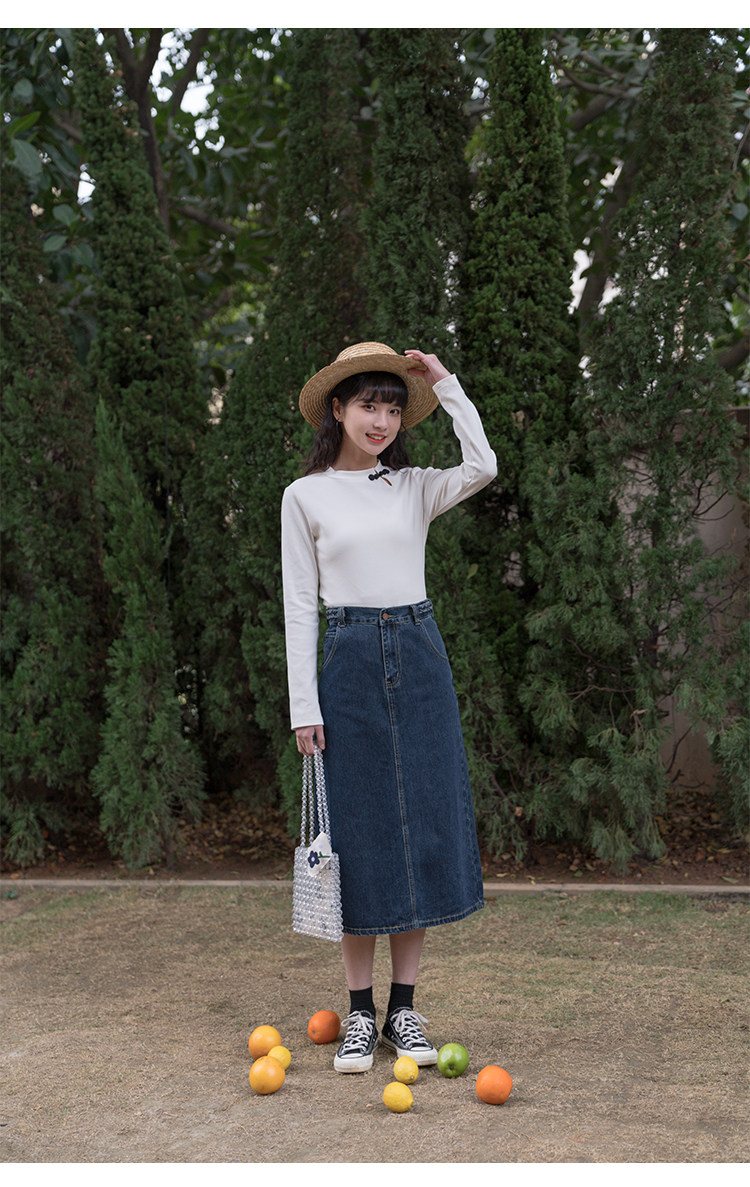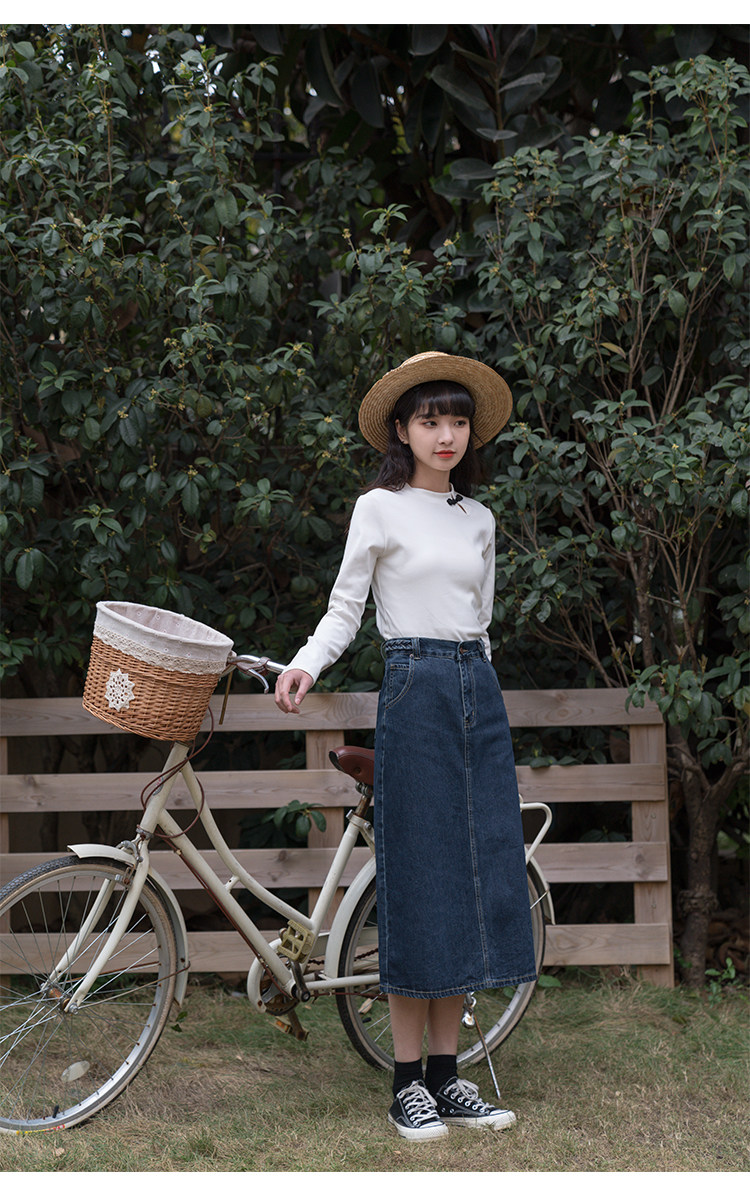 Синяя осенняя длинная приталенная джинсовая юбка, средней длины, А-силуэт