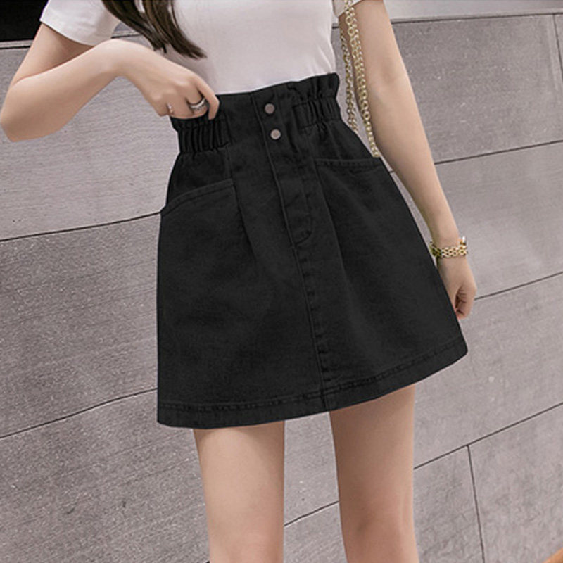 Летняя джинсовая юбка, приталенная мини-юбка, эластичная талия, с акцентом на бедрах, высокая талия