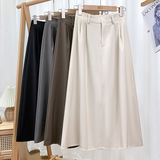 Приталенный костюм, осенняя длинная юбка, высокая талия, средней длины, А-силуэт