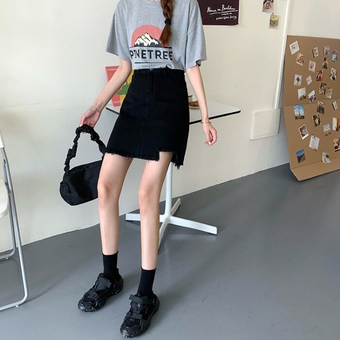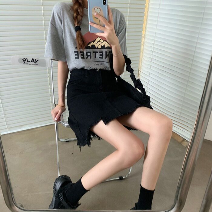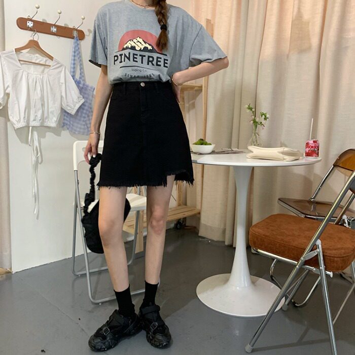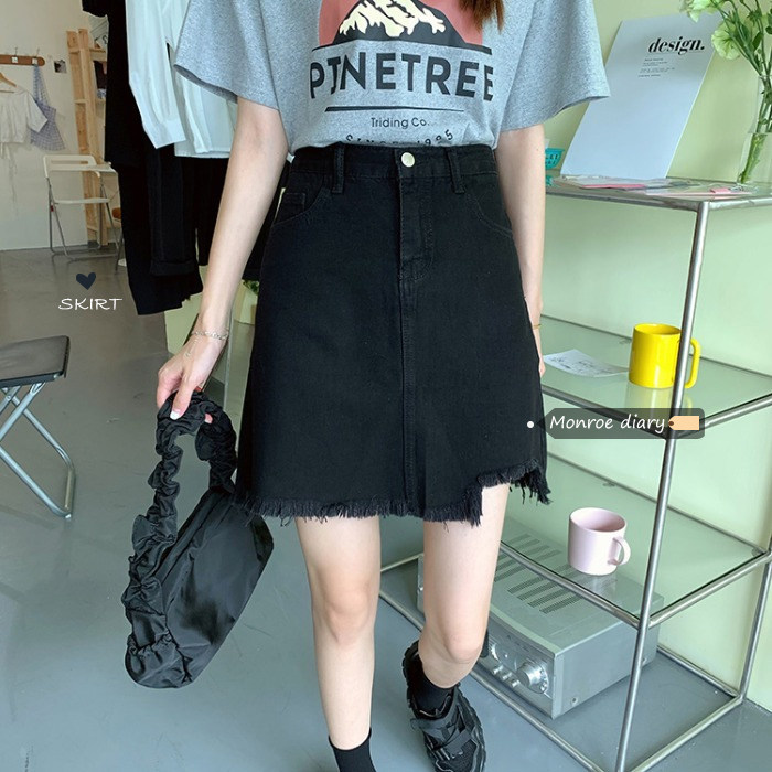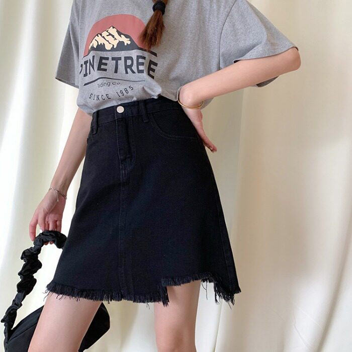 Дизайнерская осенняя джинсовая юбка, черная мини-юбка, тренд сезона, с акцентом на бедрах, высокая талия, А-силуэт