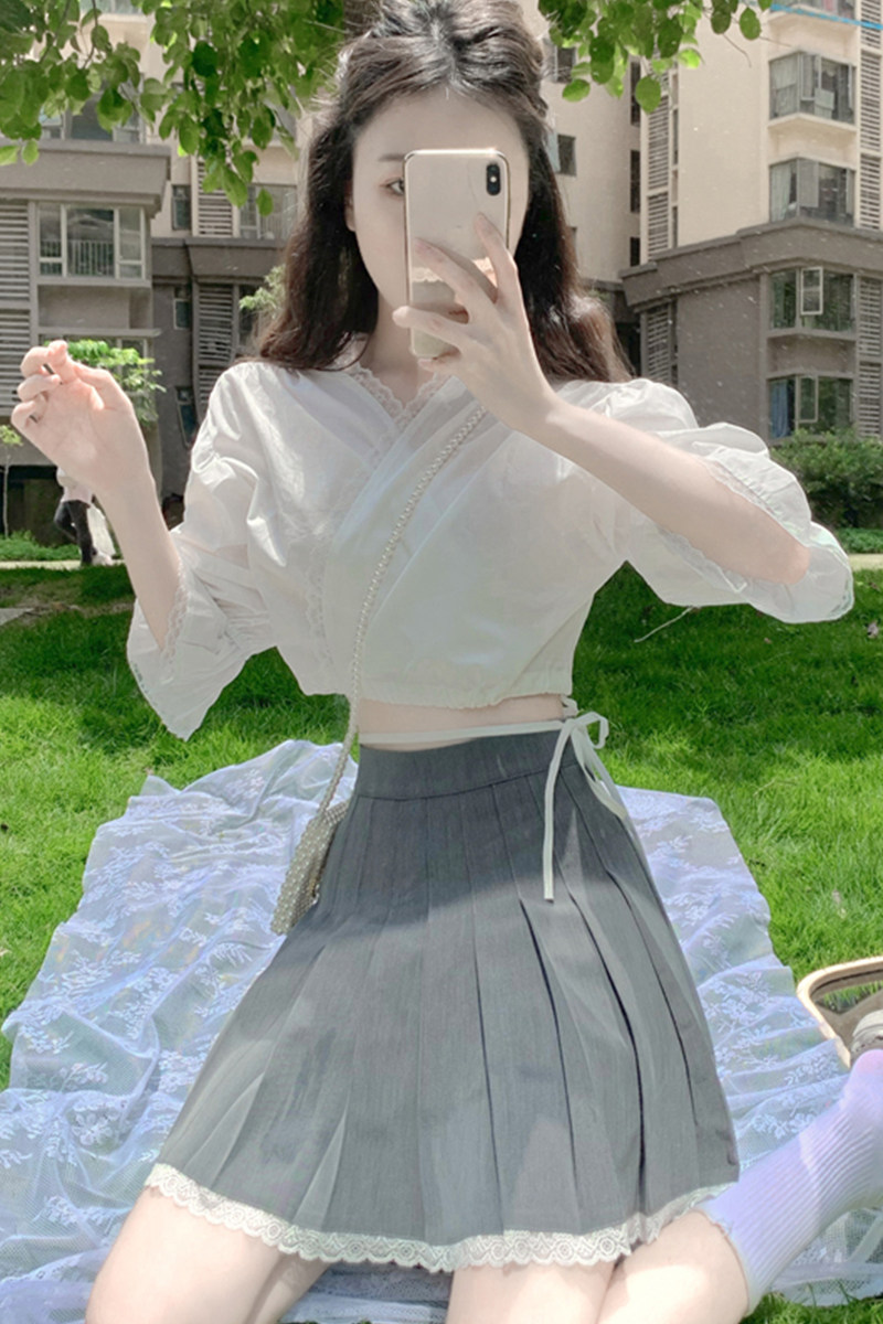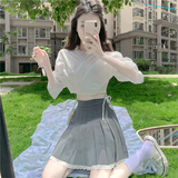 Кружевная приталенная юбка в складку, летняя мини-юбка, плиссированная юбка, высокая талия, А-силуэт, 2021 года