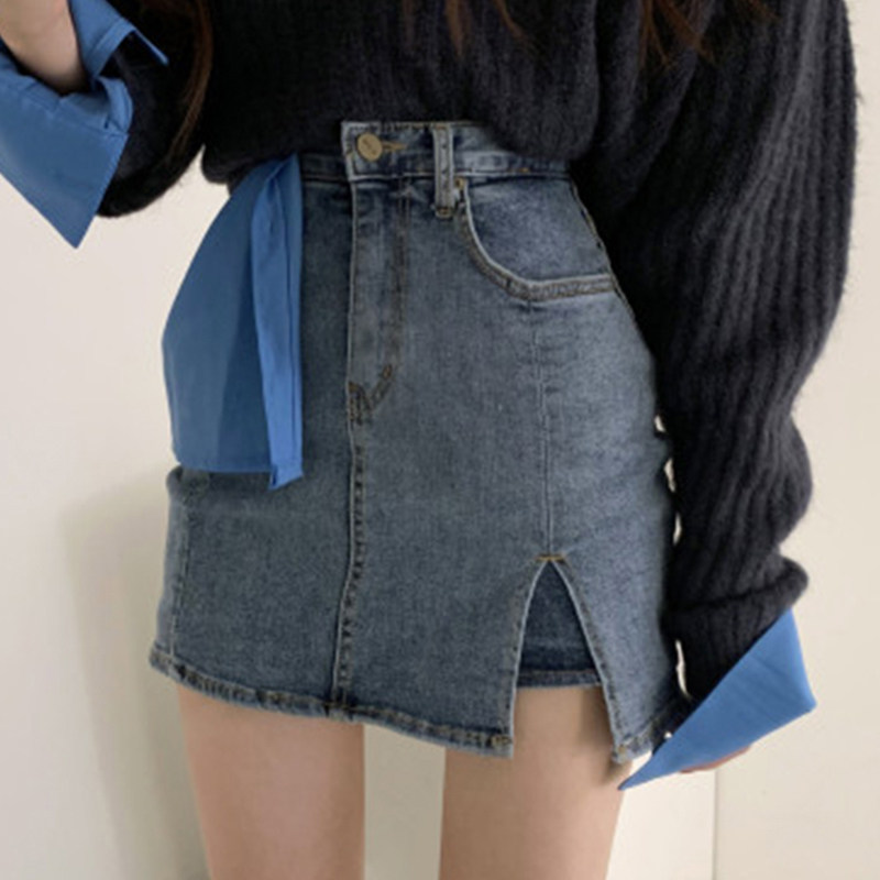 Модная летняя приталенная эластичная джинсовая юбка, высокая талия, в обтяжку