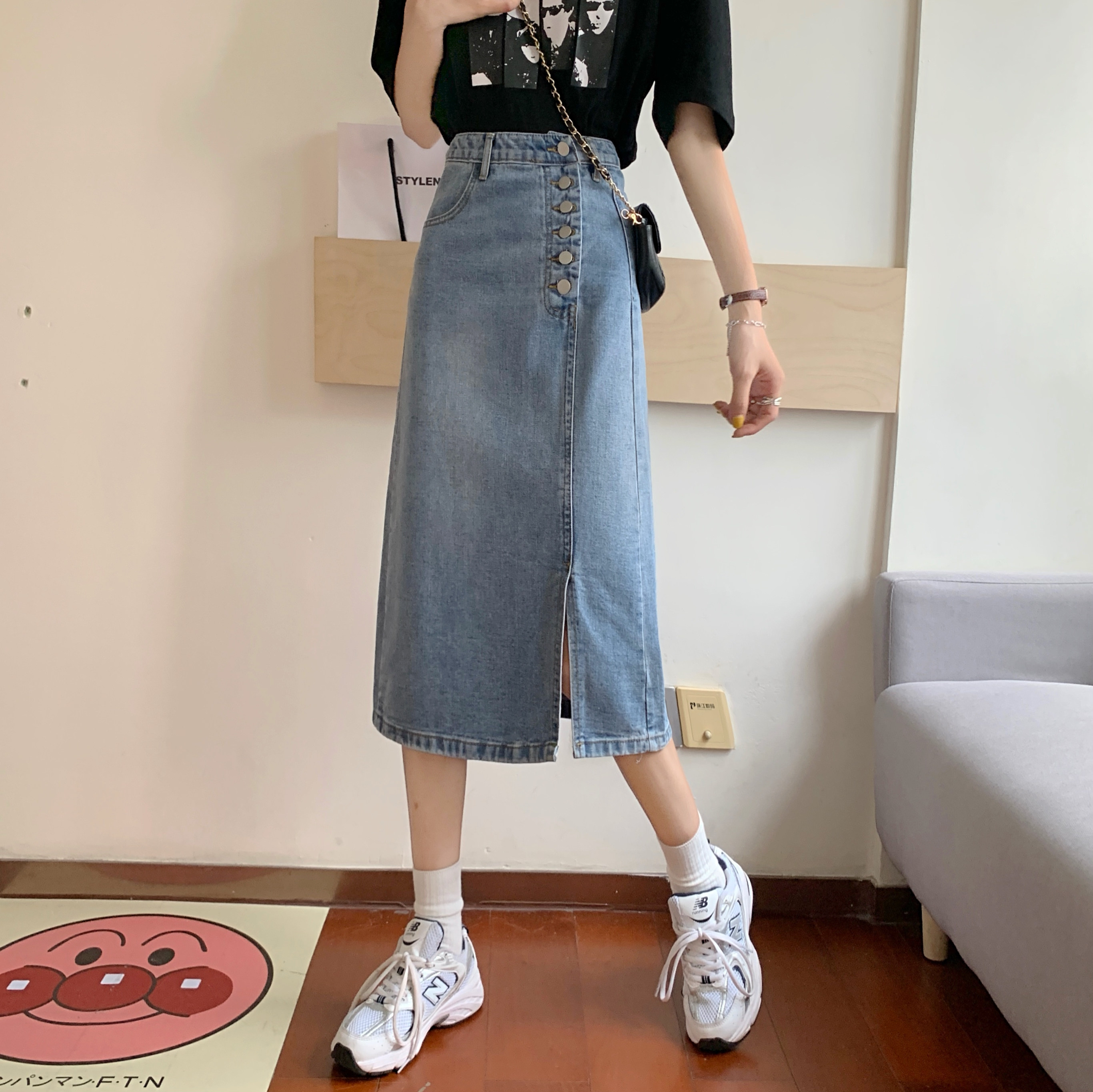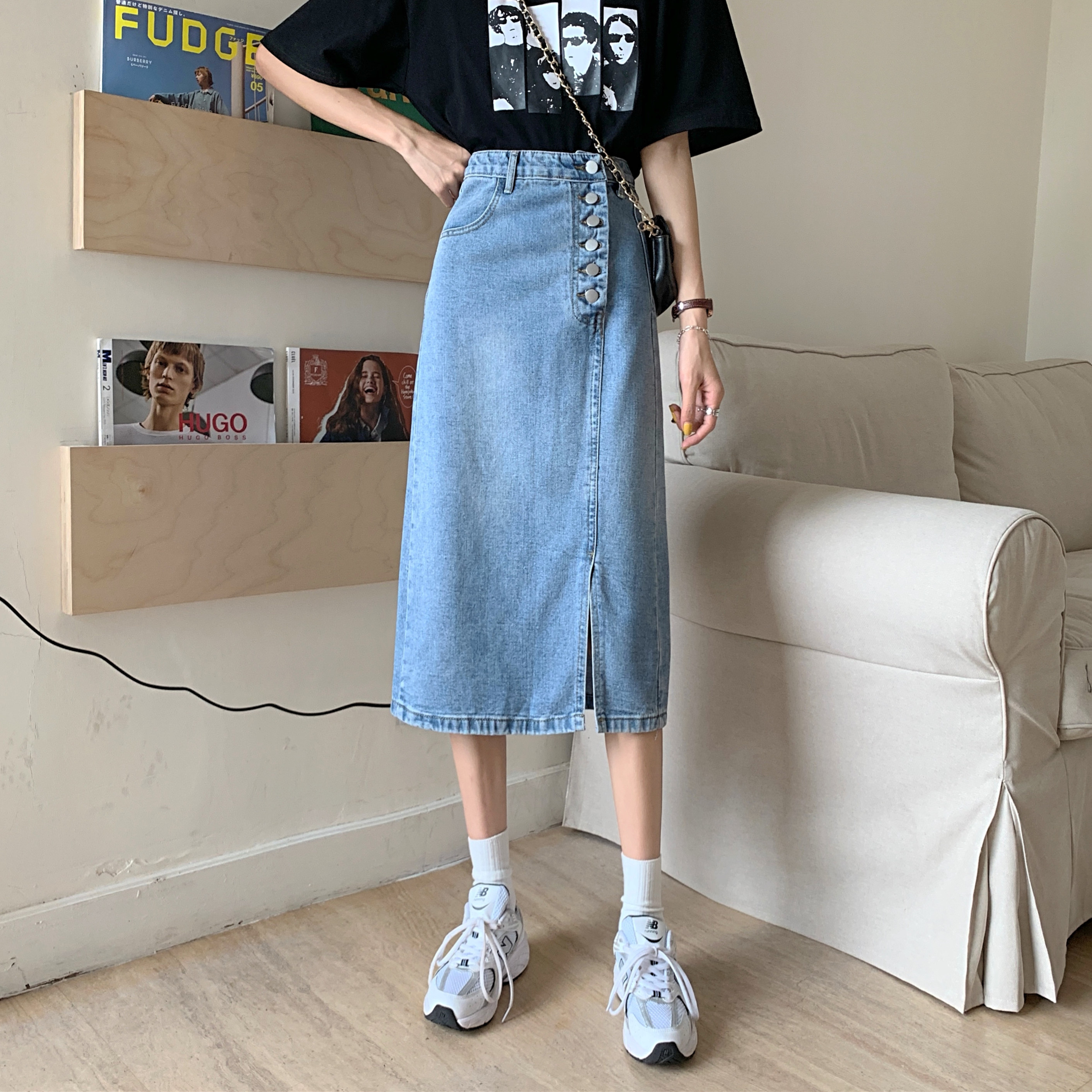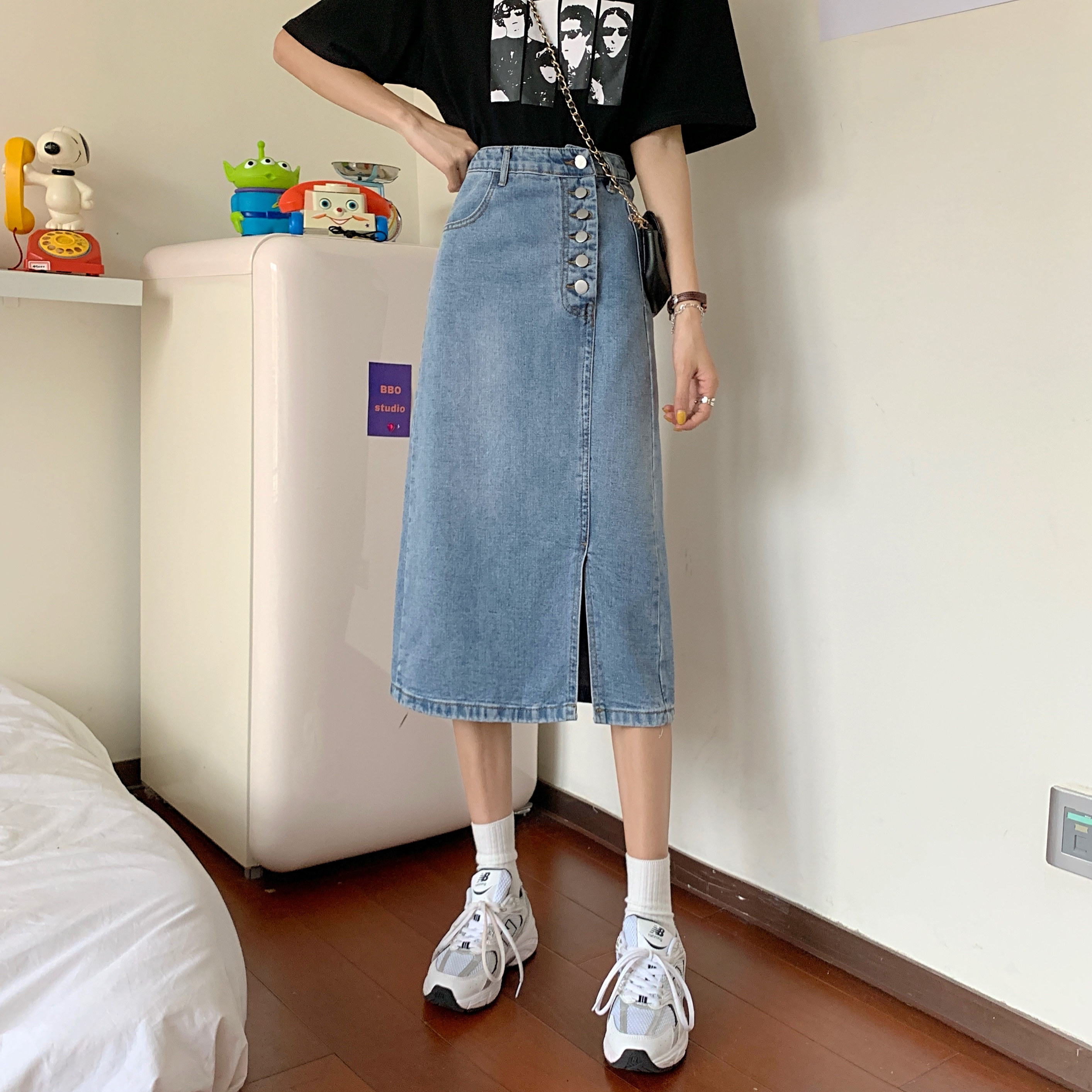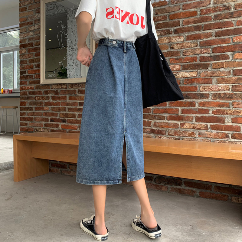 Юбка в складку, летняя ретро длинная приталенная джинсовая юбка, средней длины, с акцентом на бедрах, высокая талия, А-силуэт