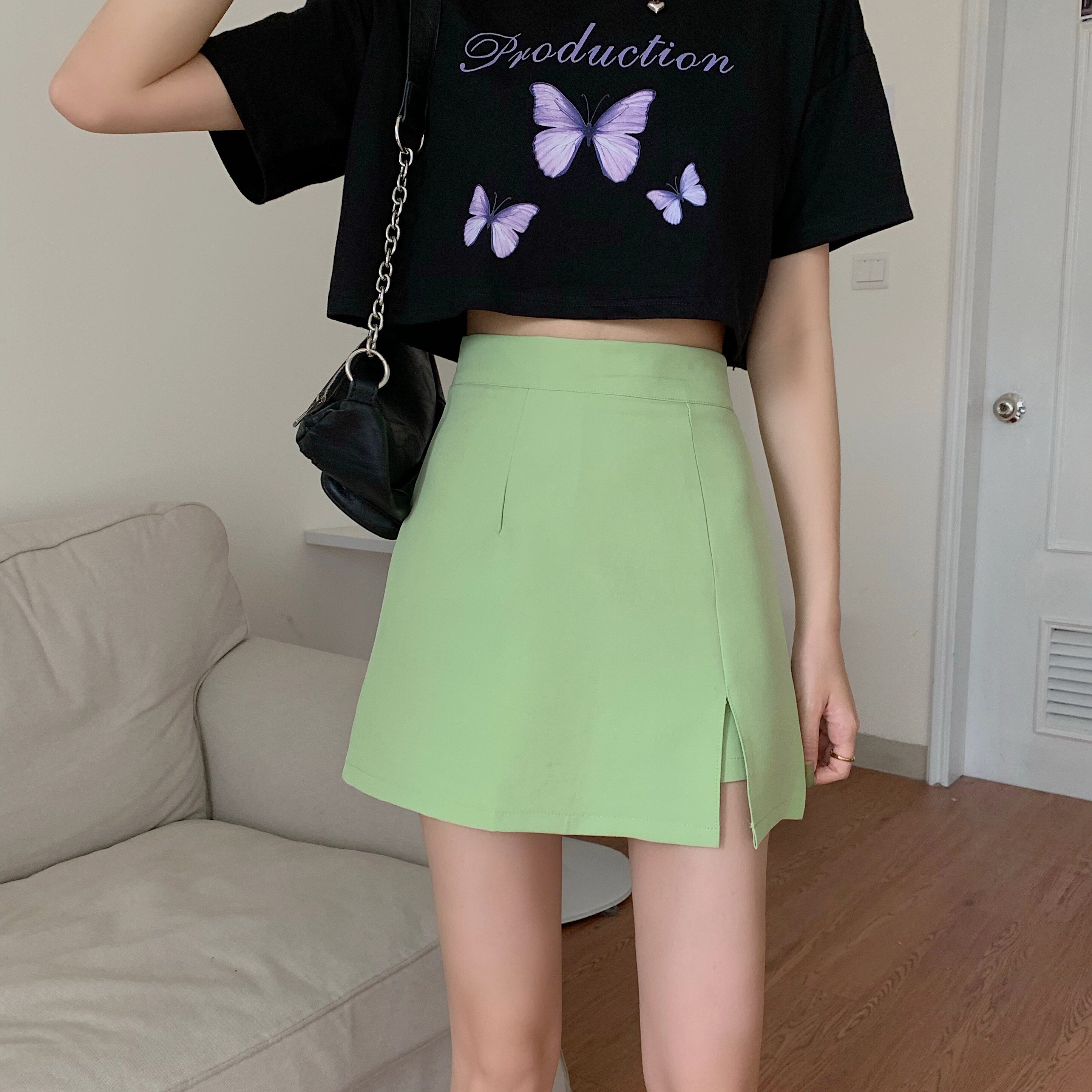 Юбка, мини-юбка, прикрывает попу, по фигуре, коллекция 2023, в западном стиле, А-силуэт, с акцентом на бедрах