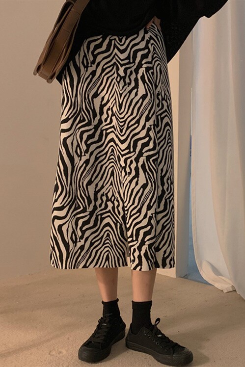 Осенняя зебра, длинная юбка, большой размер, длина макси, А-силуэт