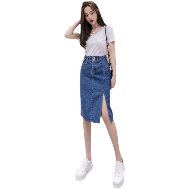 Весенняя летняя длинная джинсовая юбка, высокая талия, 2023, длина миди, А-силуэт