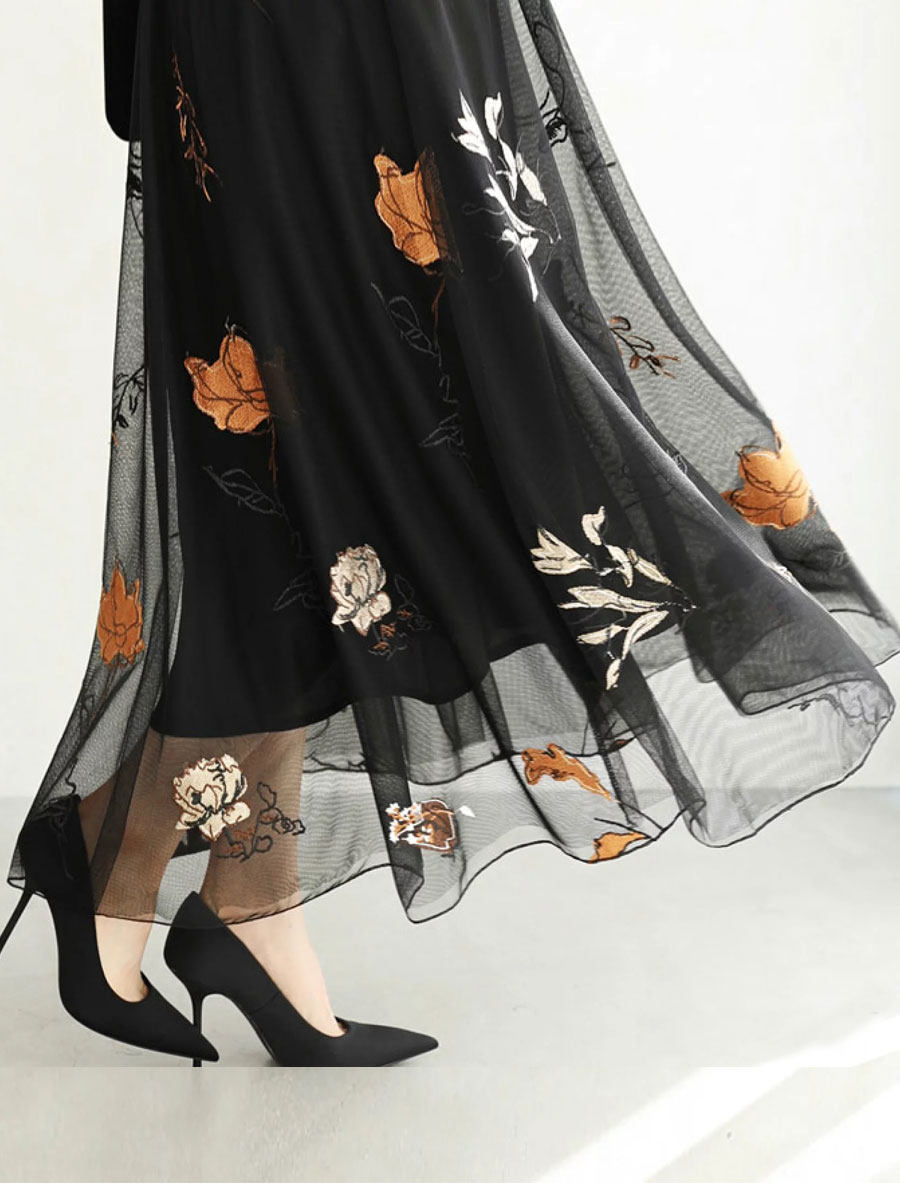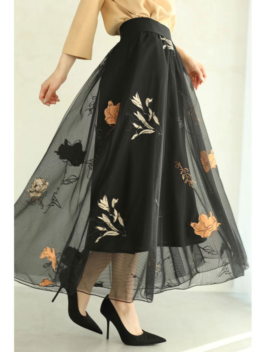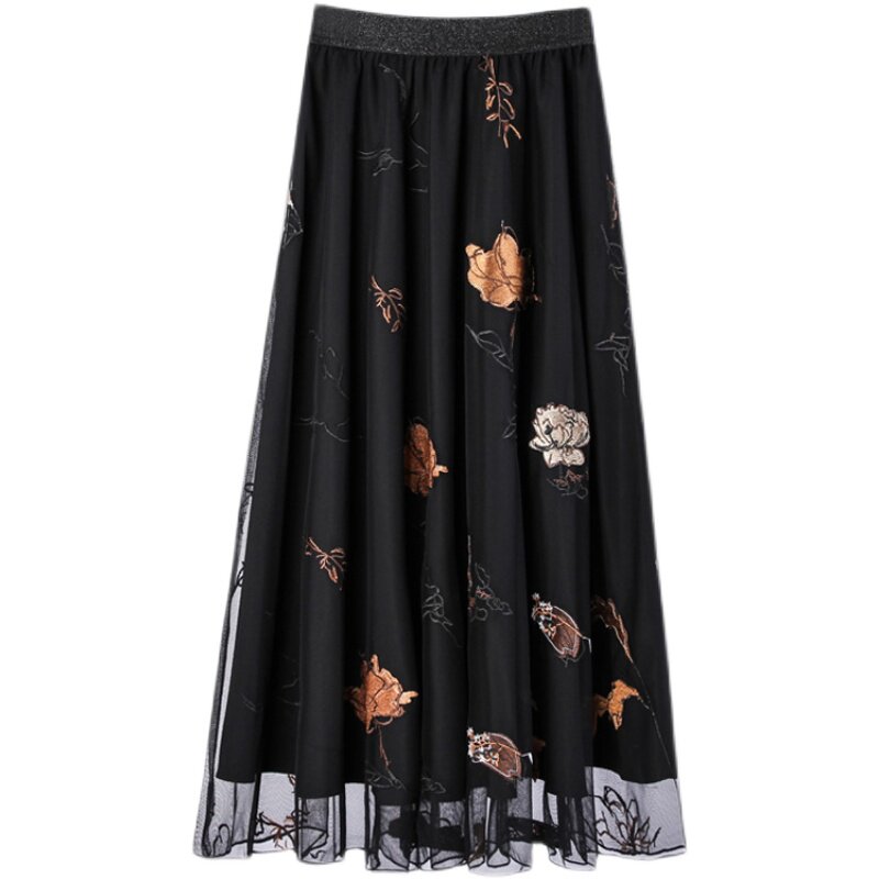 Элегантная осенняя юбка, с вышивкой, городской стиль, в западном стиле, высокая талия