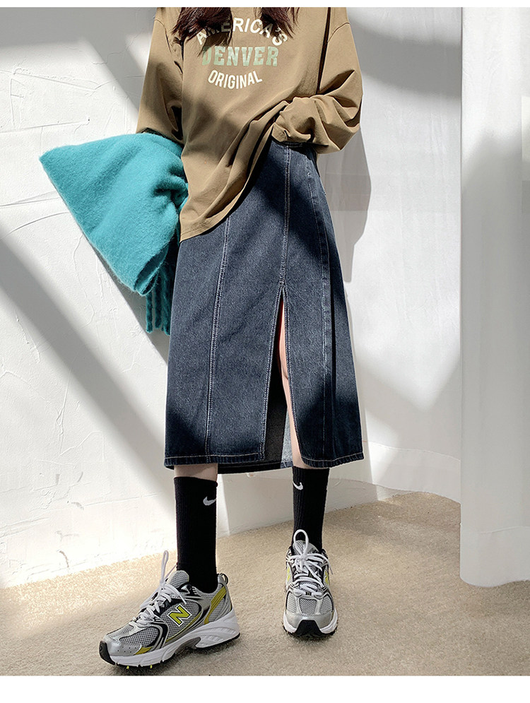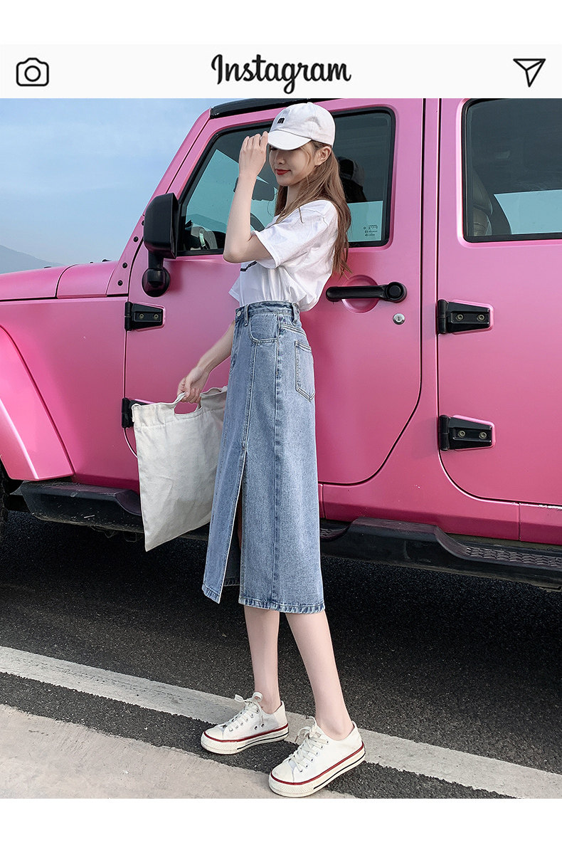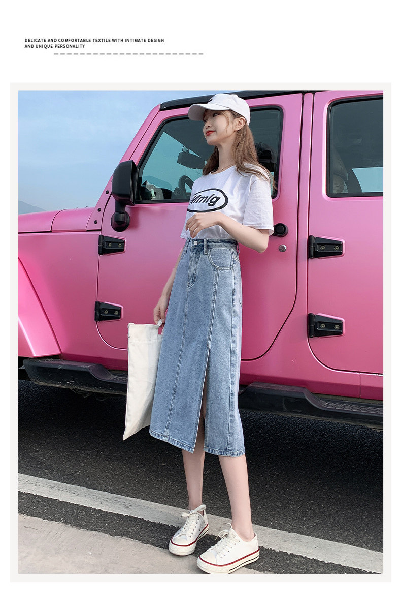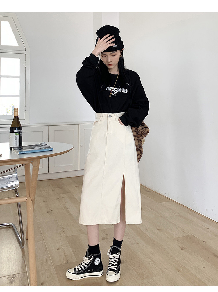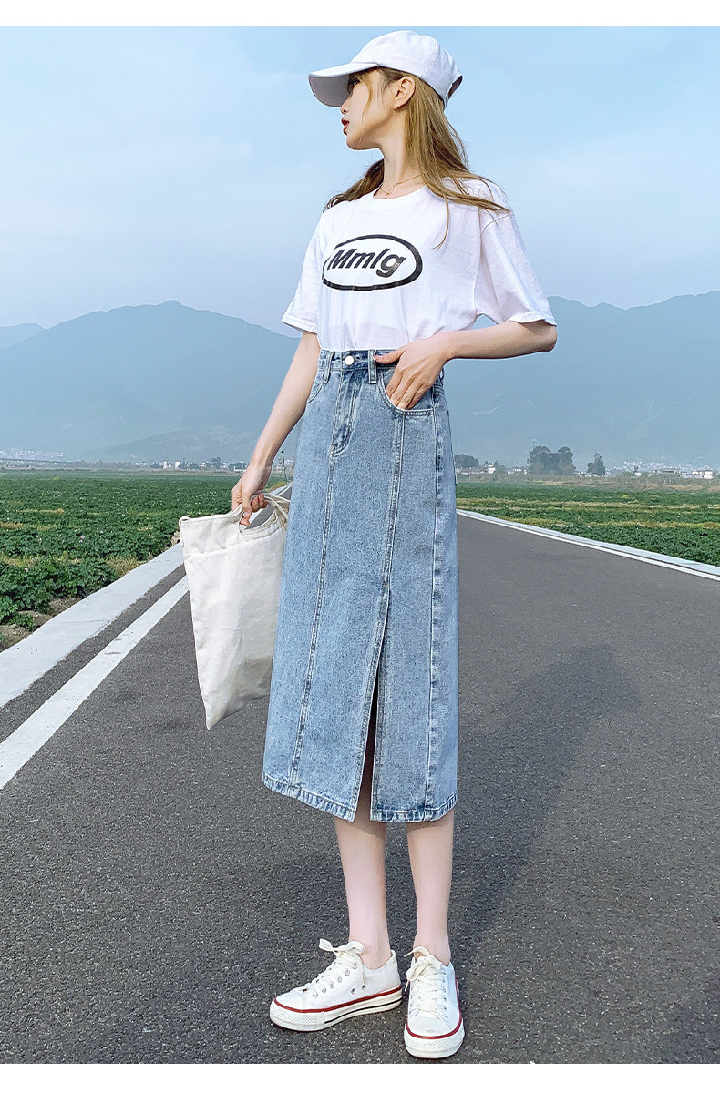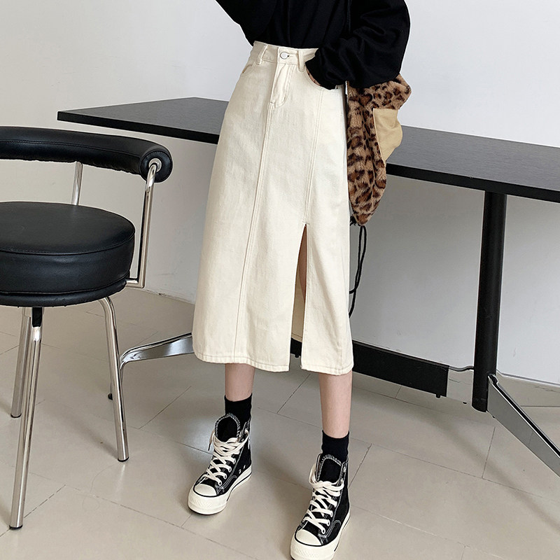 Весенняя абрикосовая длинная светлая джинсовая юбка, коллекция 2023, высокая талия, средней длины, А-силуэт