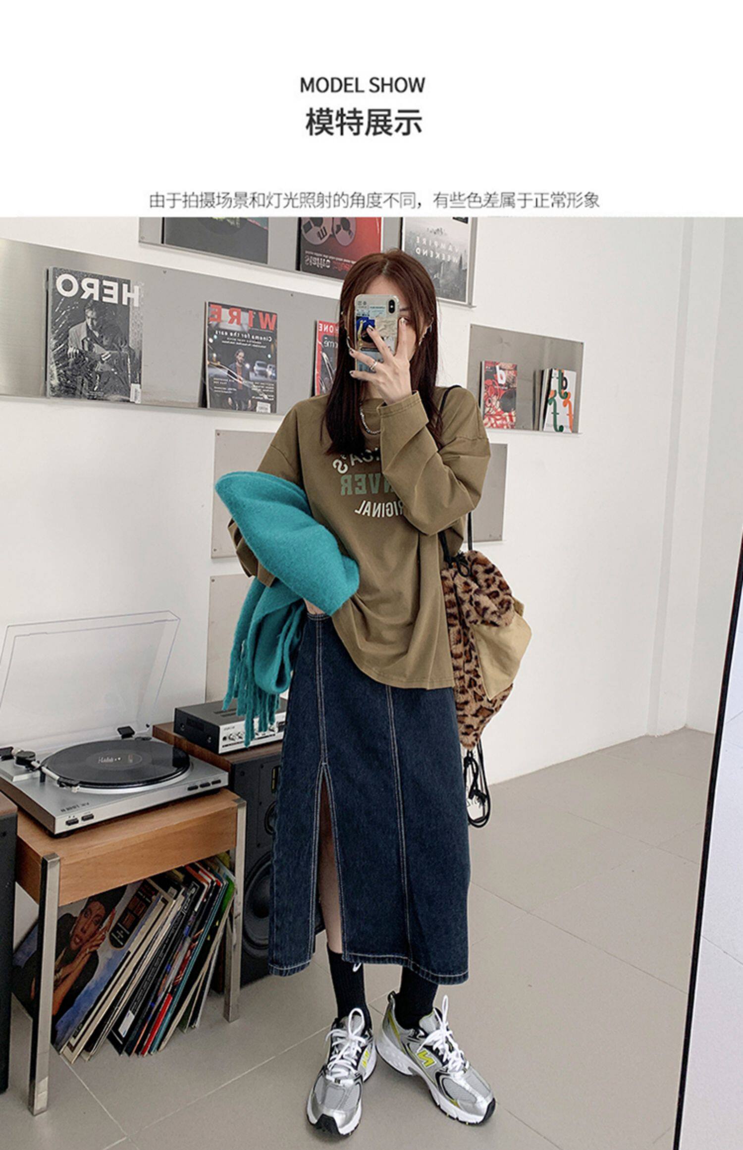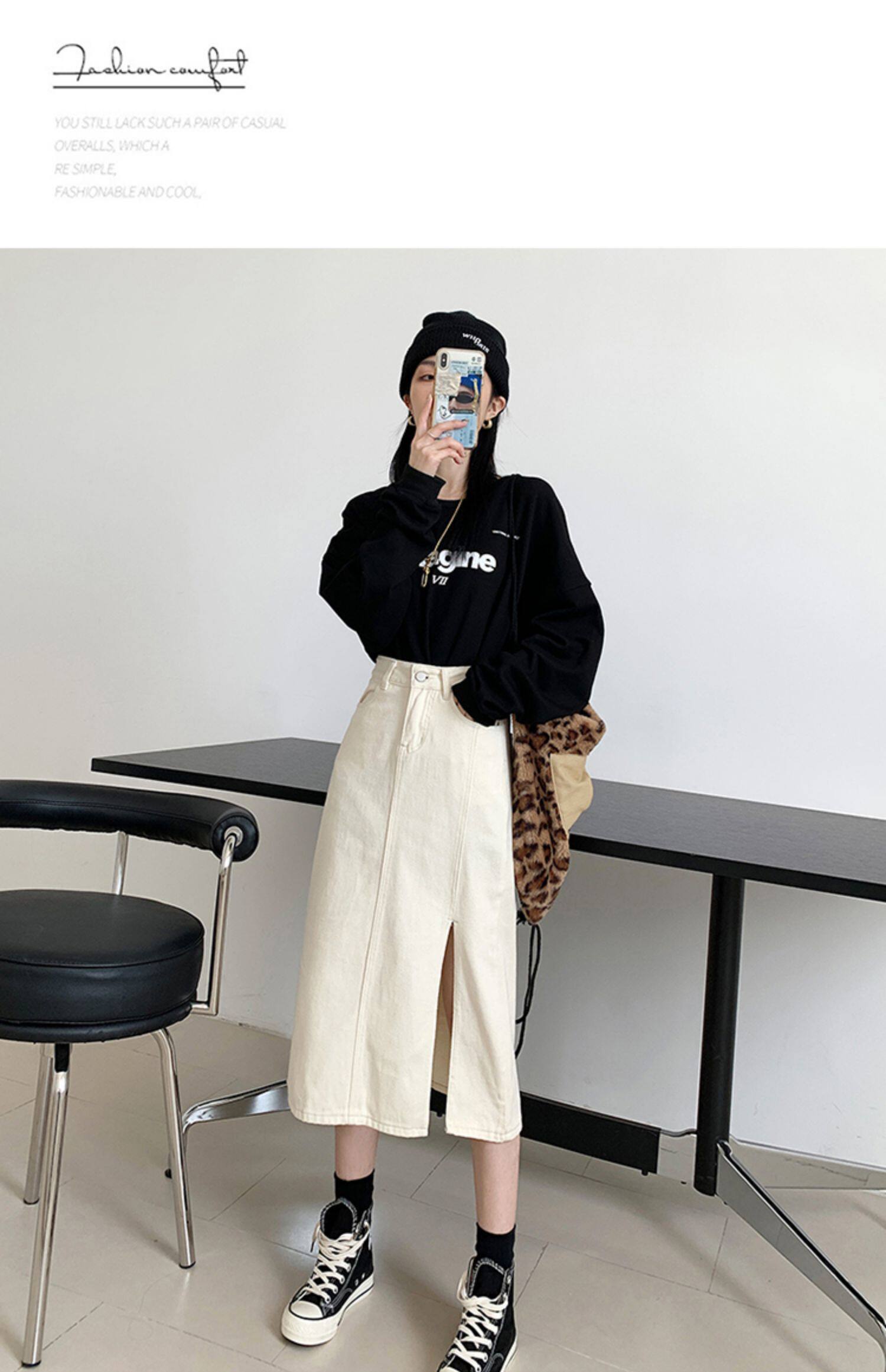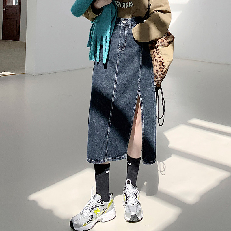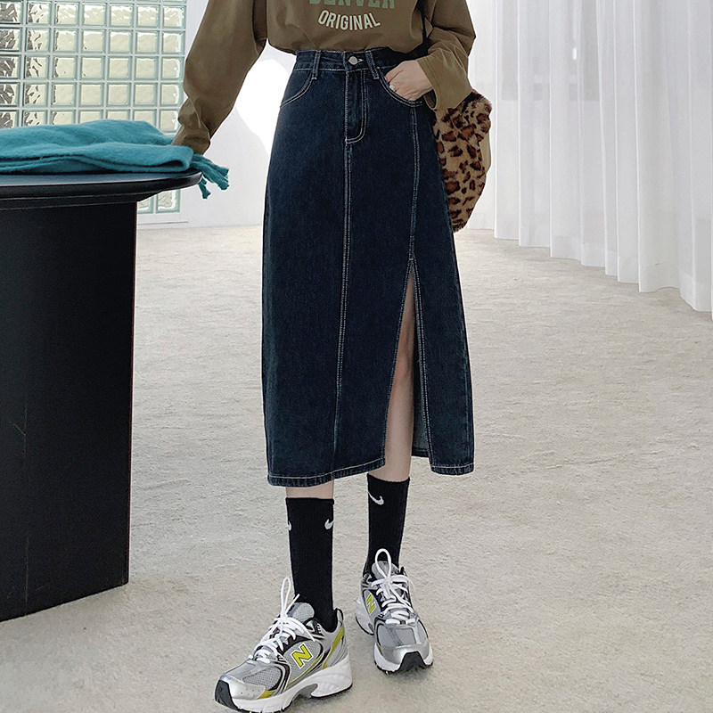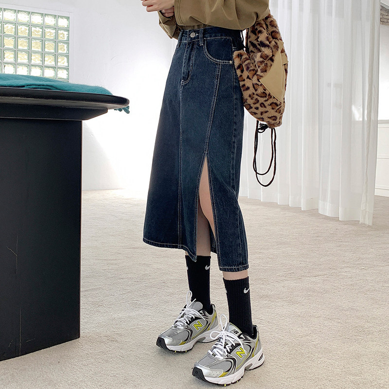 Весенняя абрикосовая длинная светлая джинсовая юбка, коллекция 2023, высокая талия, средней длины, А-силуэт