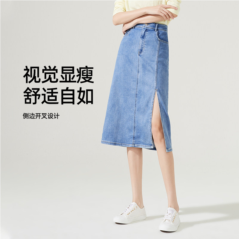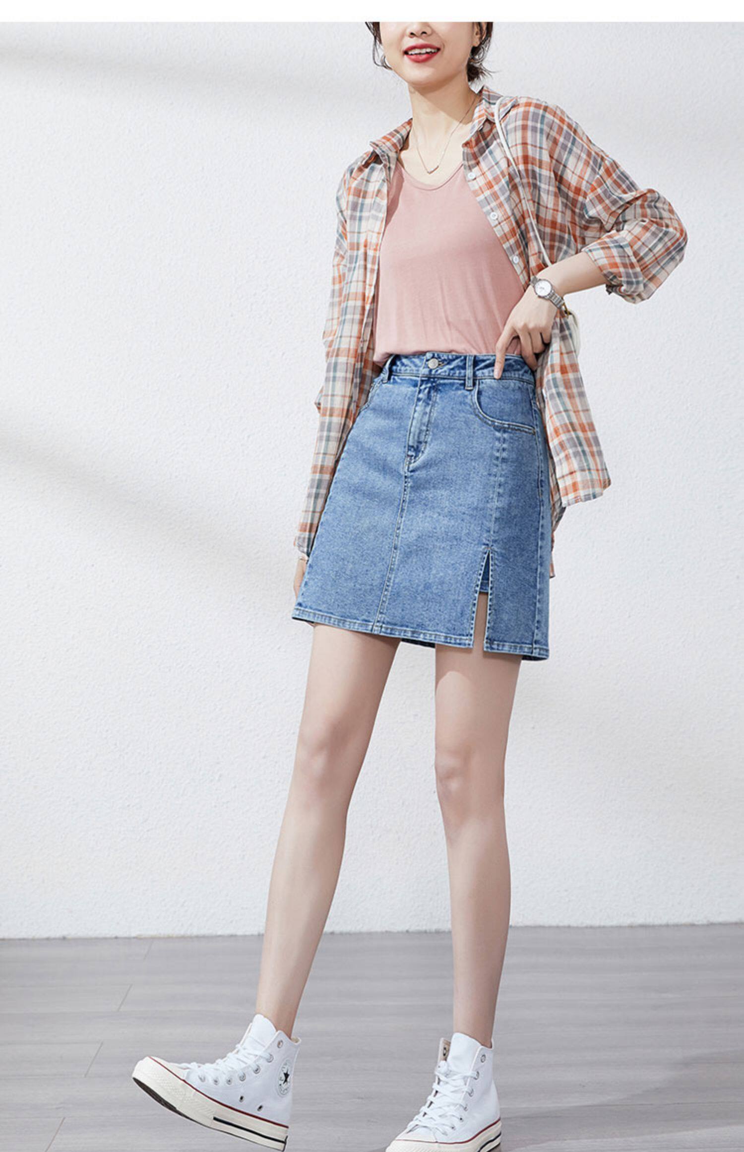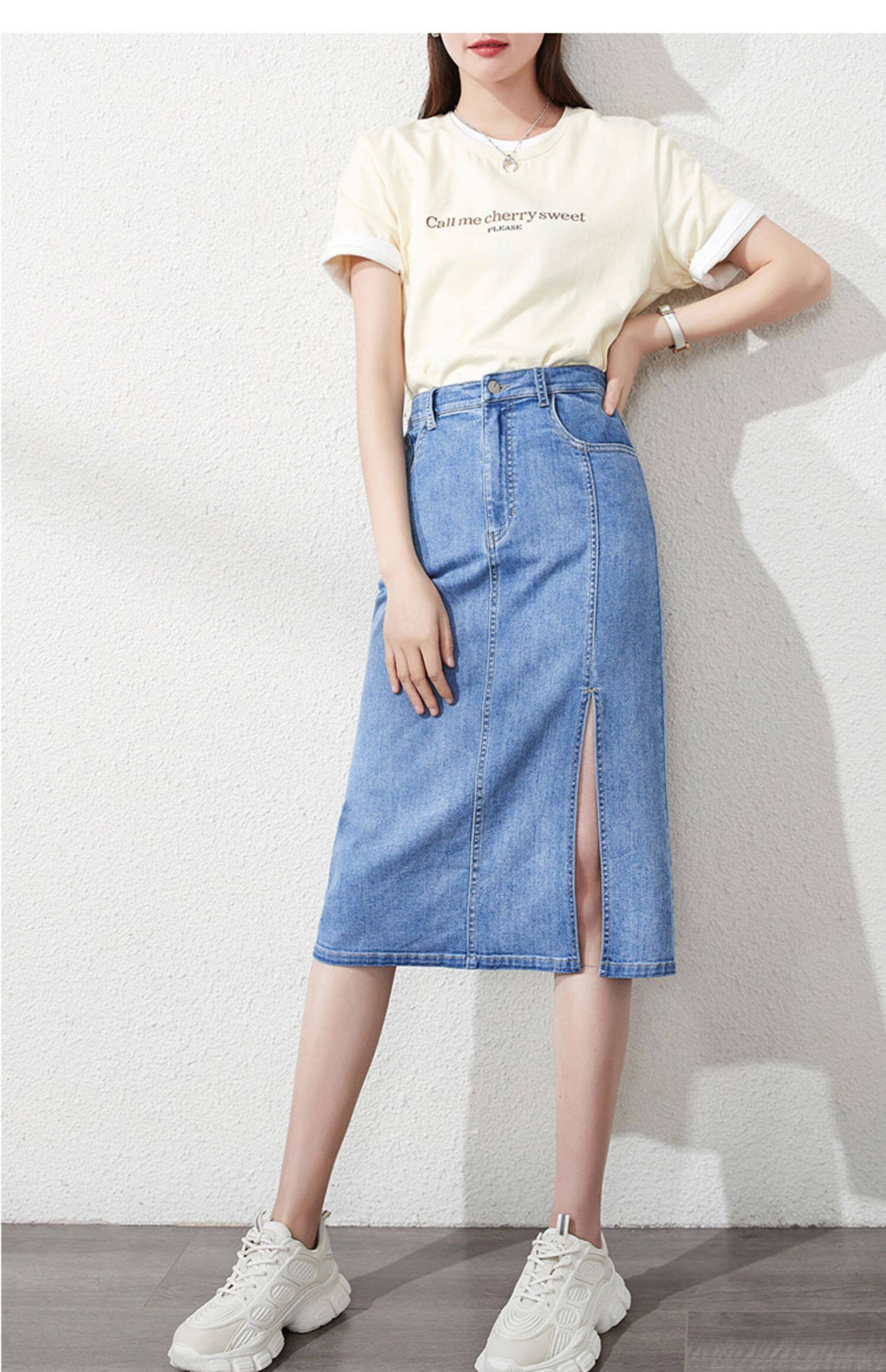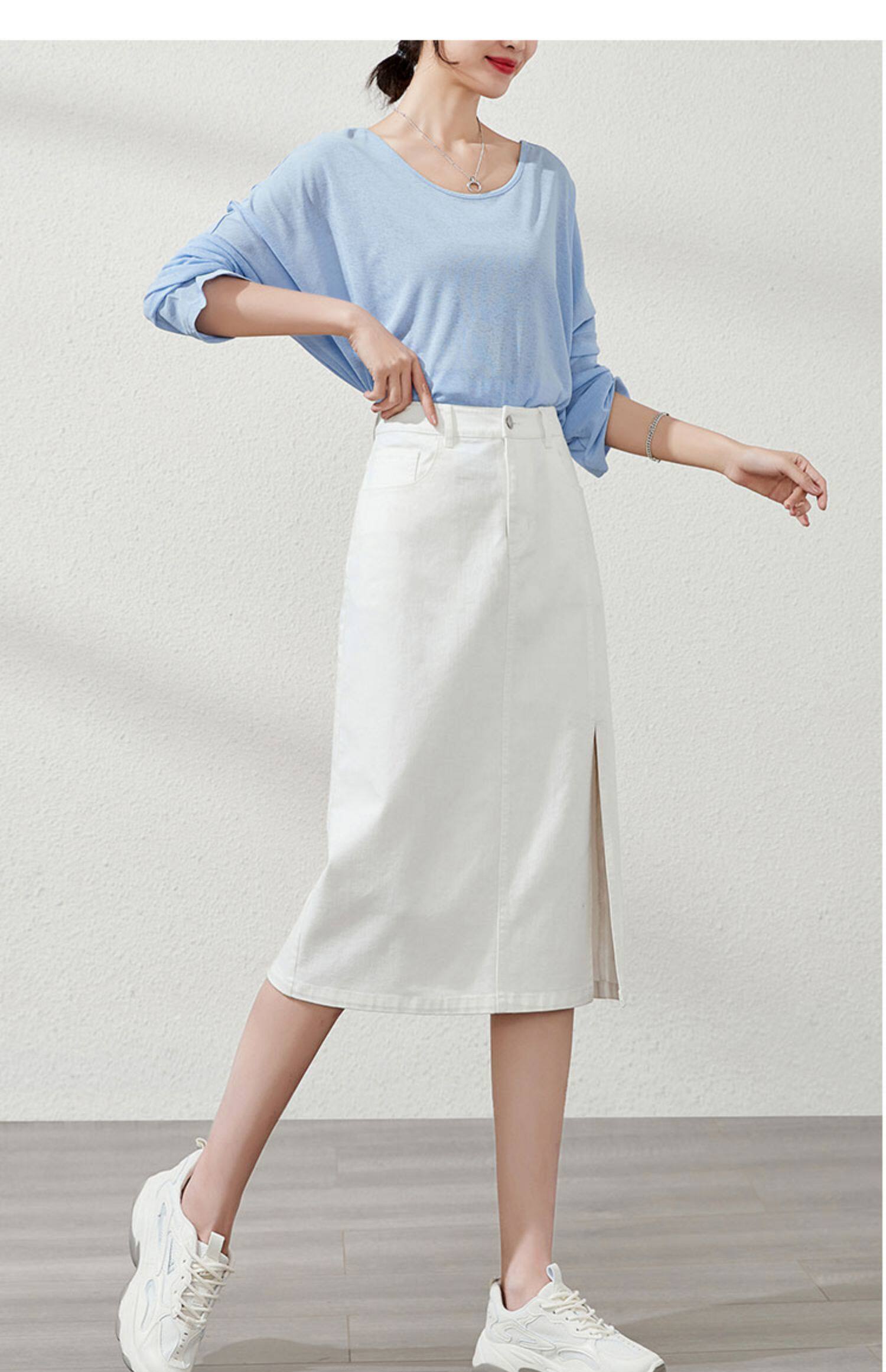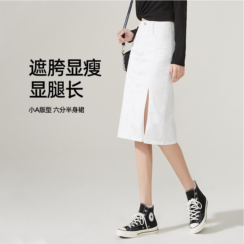Белая летняя приталенная джинсовая юбка, высокая талия, А-силуэт