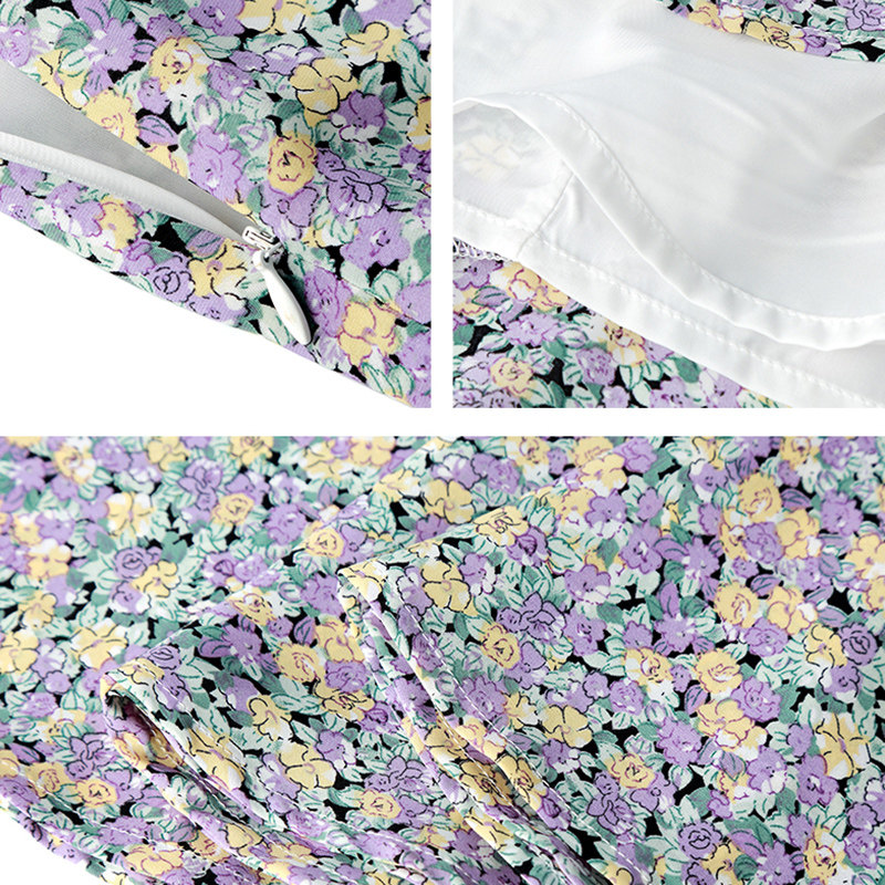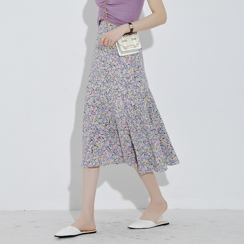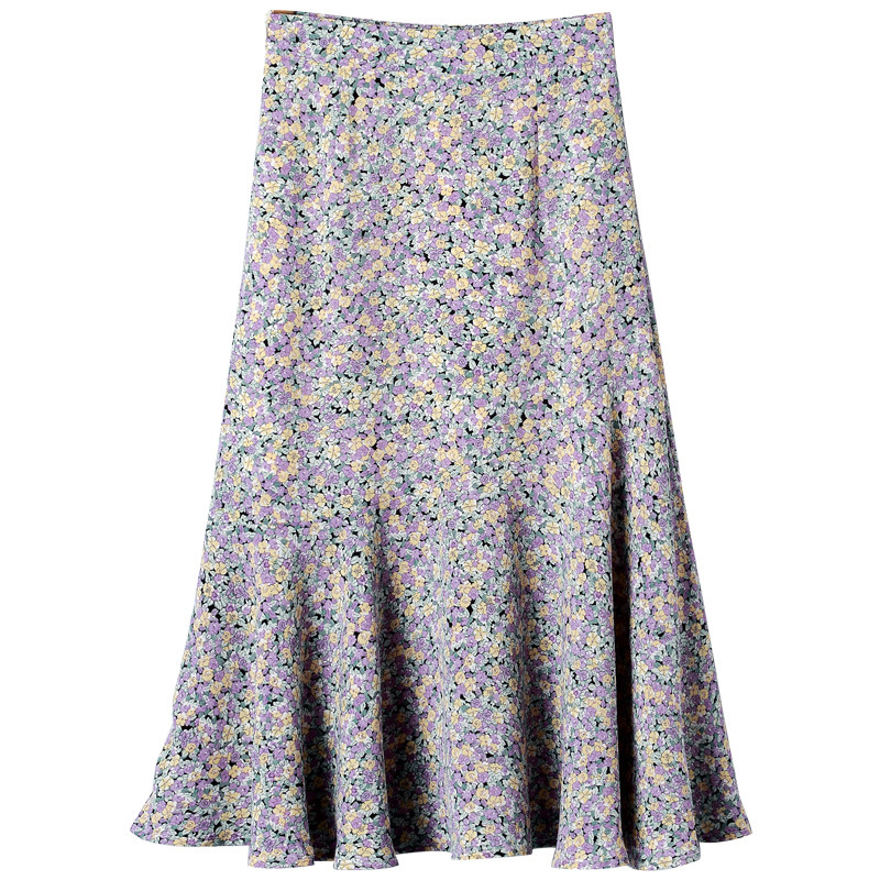 Летняя ретро шифоновая юбка, цветочный принт, рыбий хвост, высокая талия, А-силуэт, с акцентом на бедрах