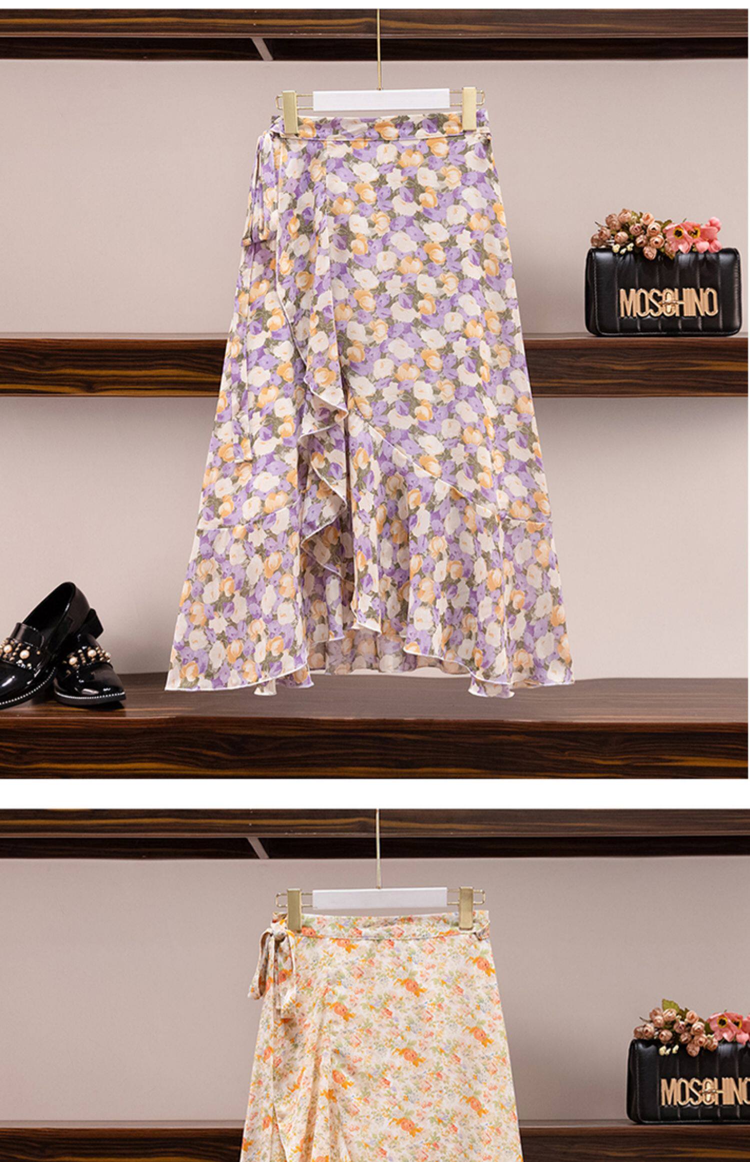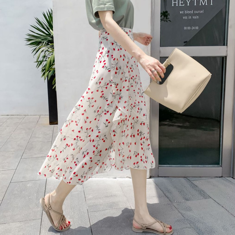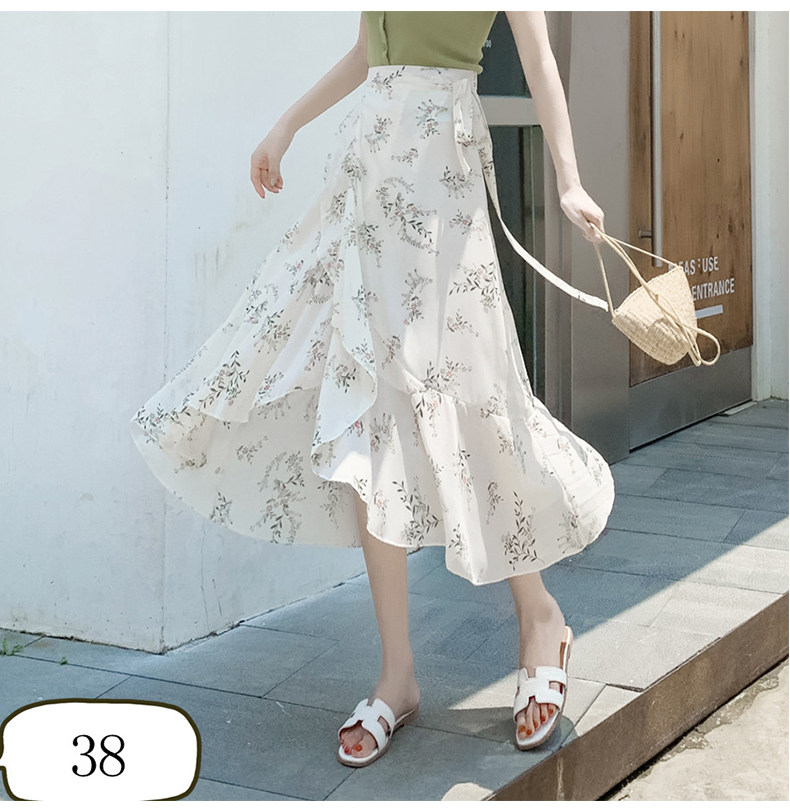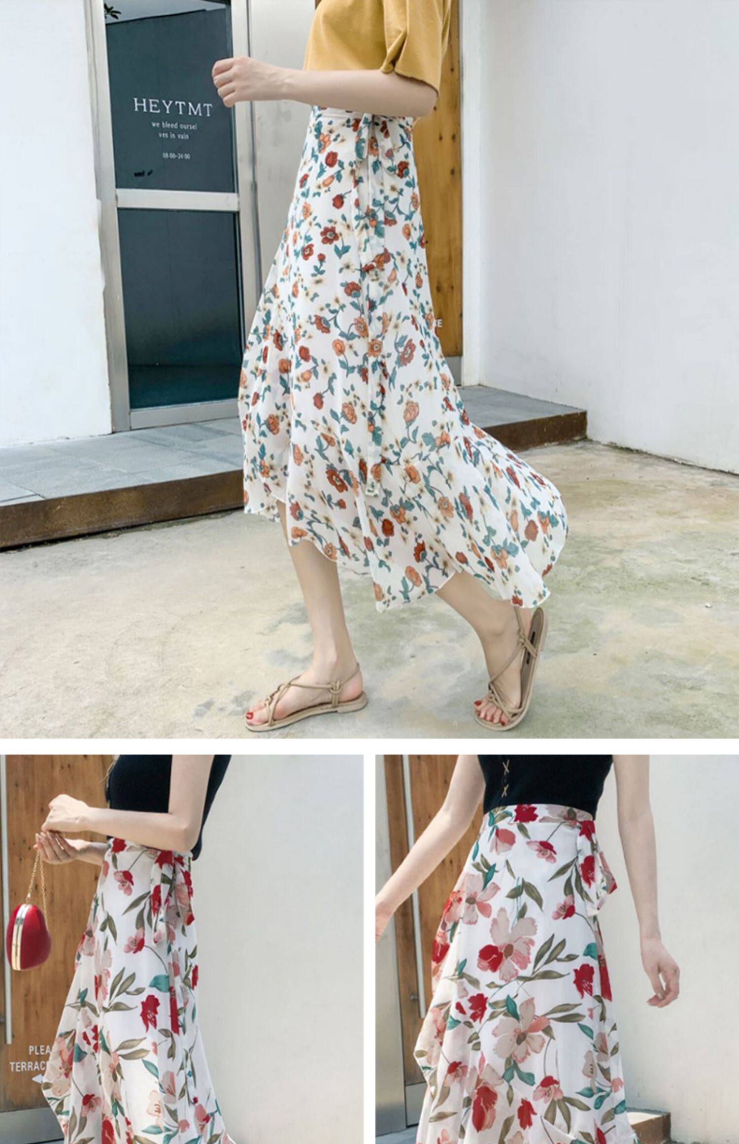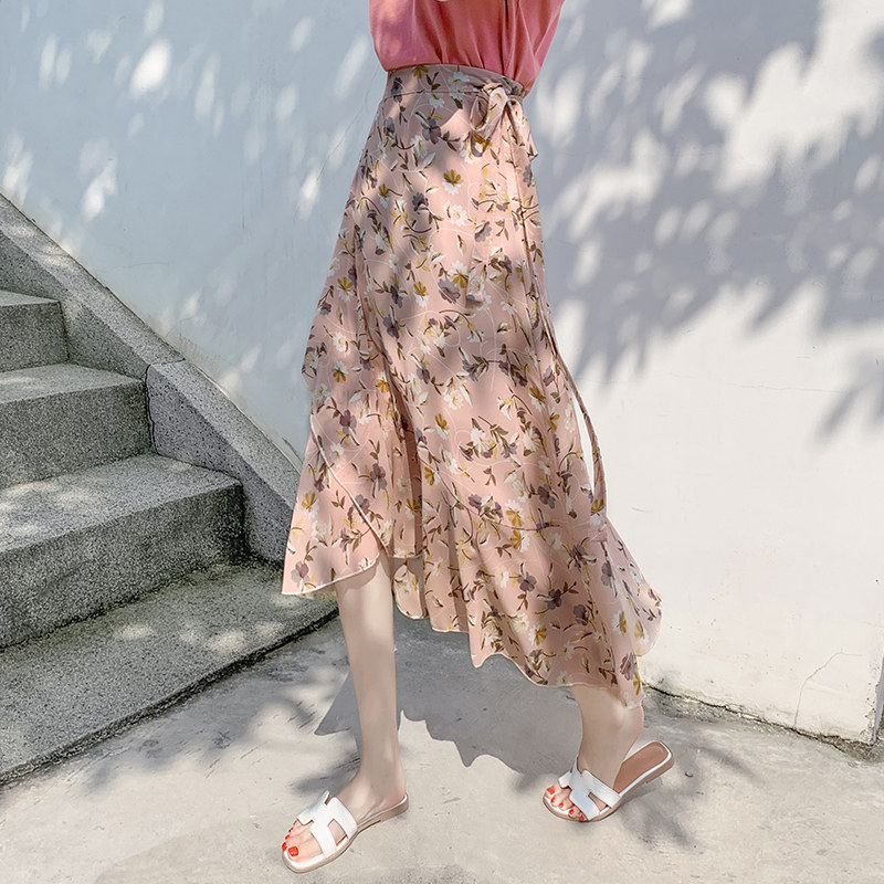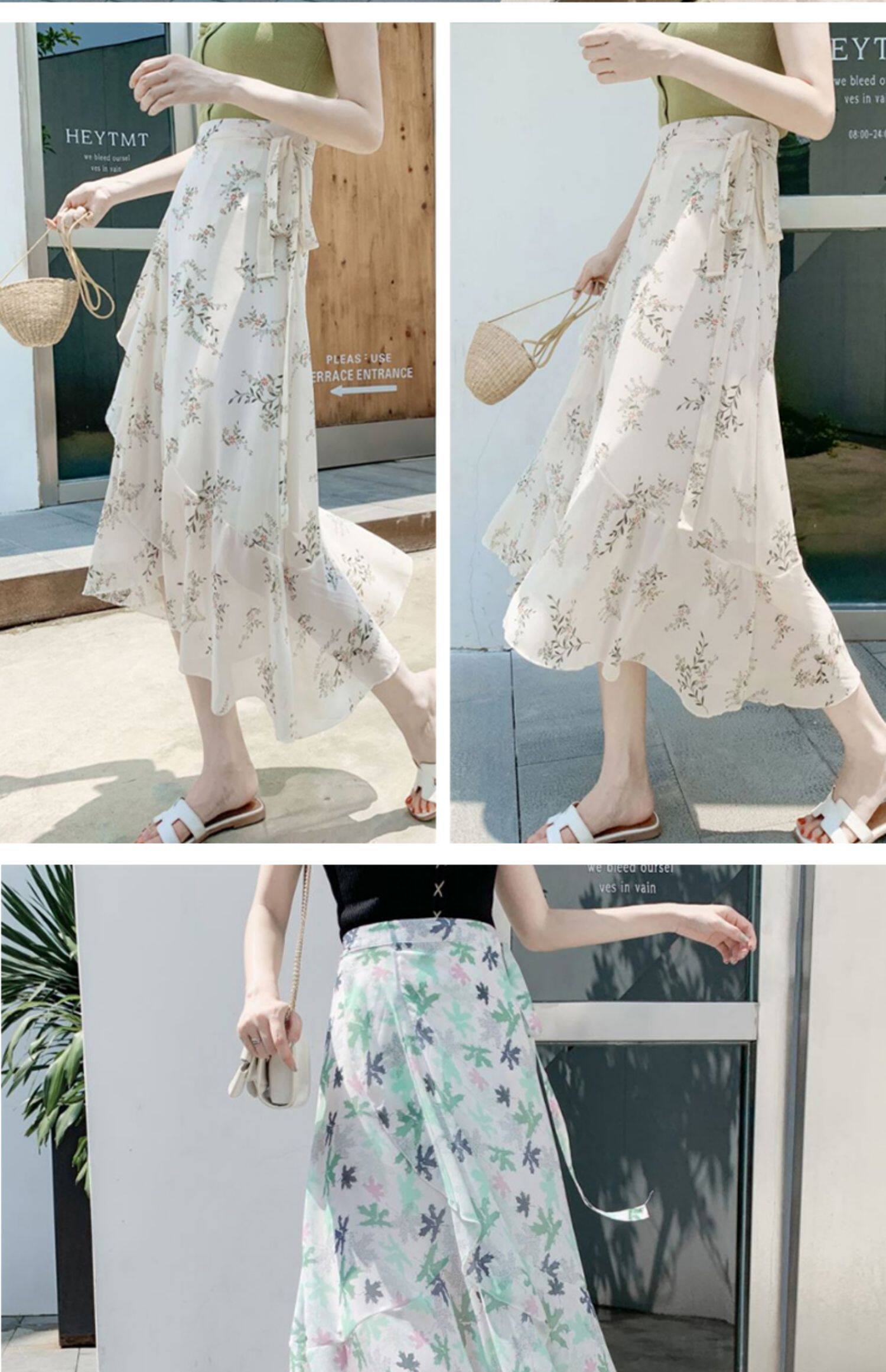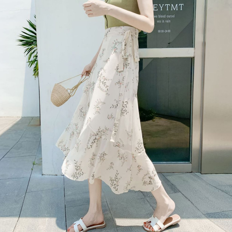 Тонкая шифоновая летняя длинная юбка, цветочный принт, рыбий хвост