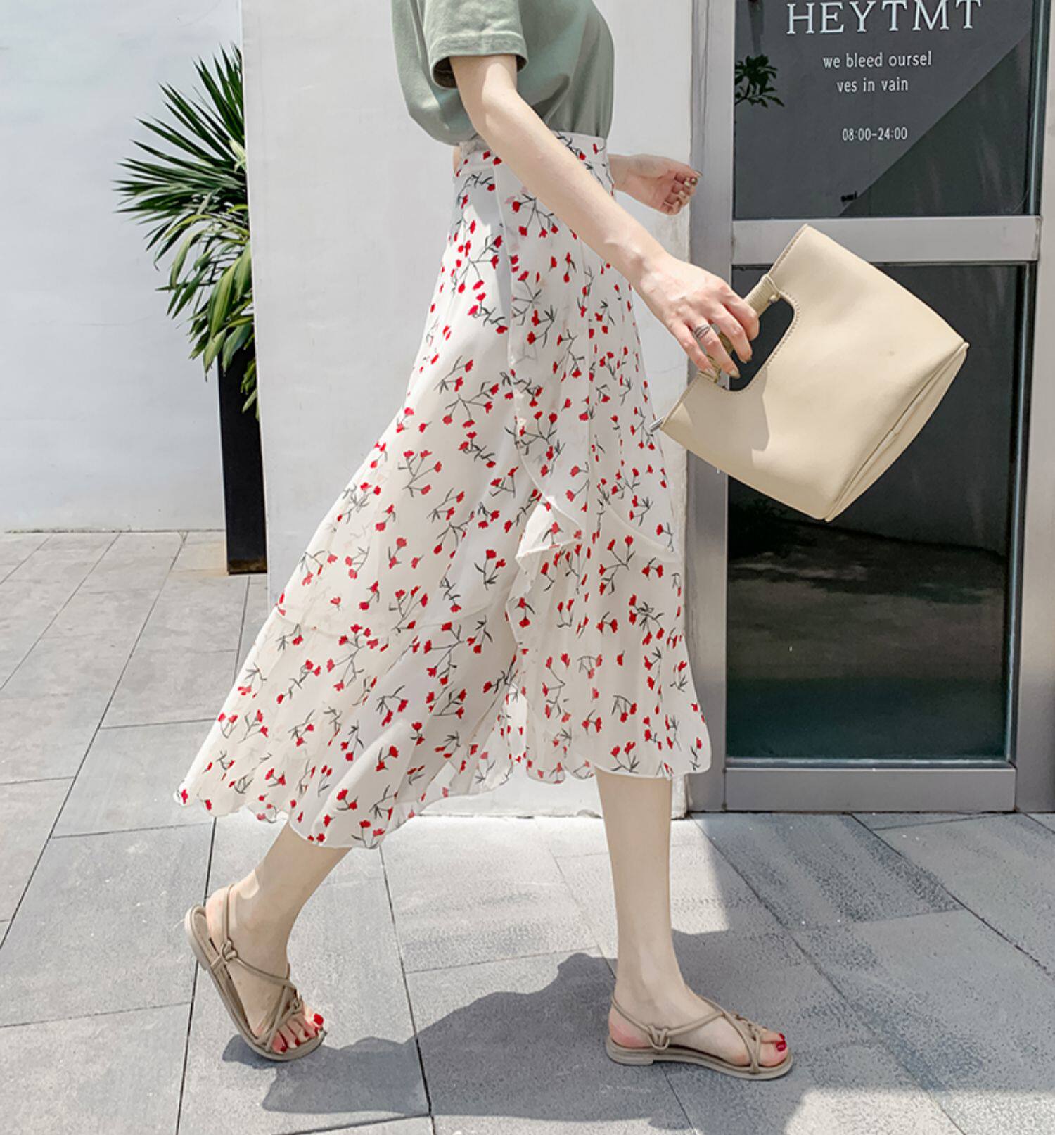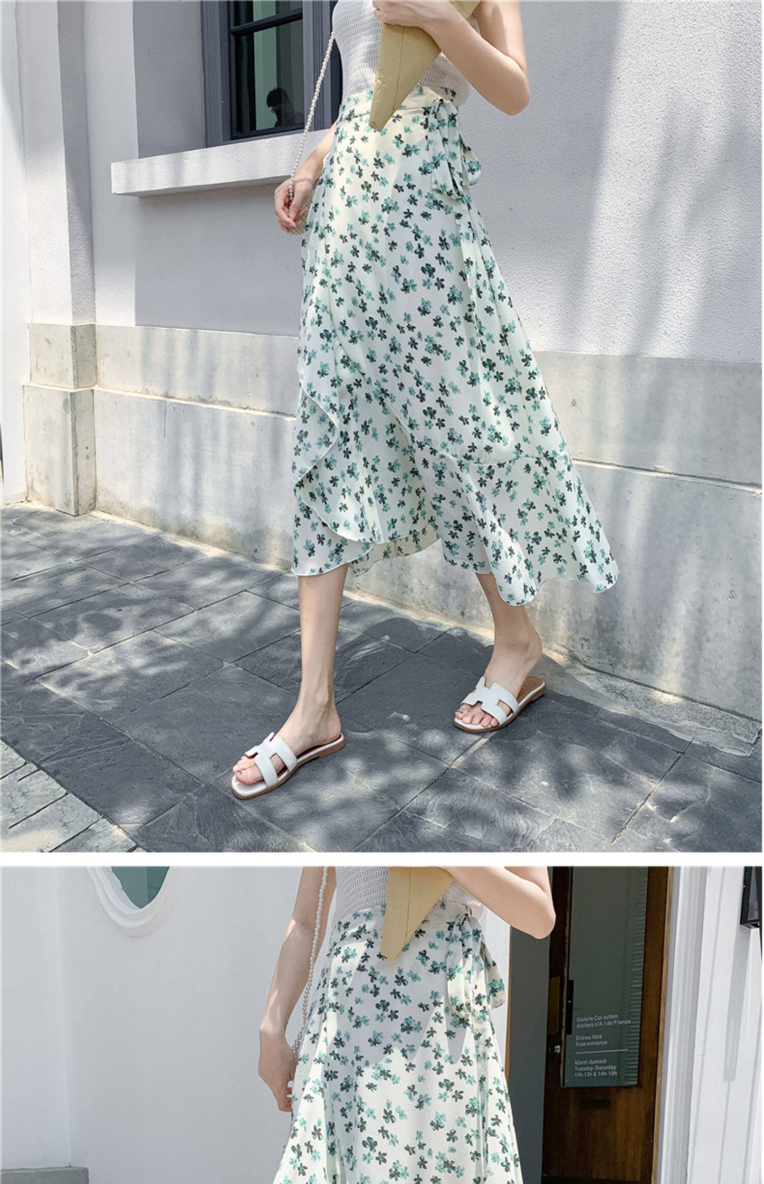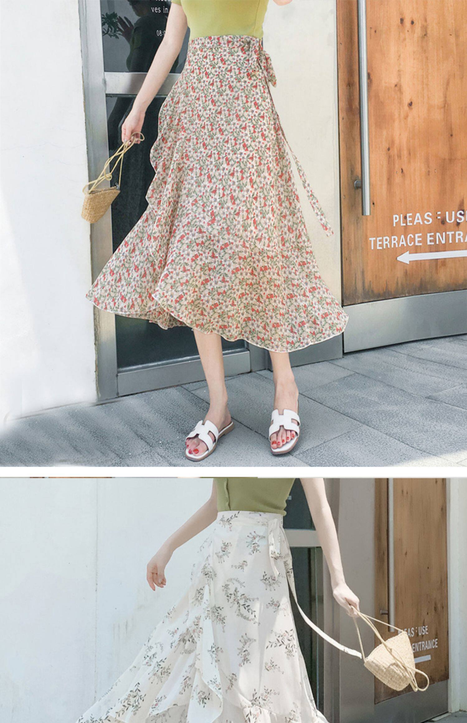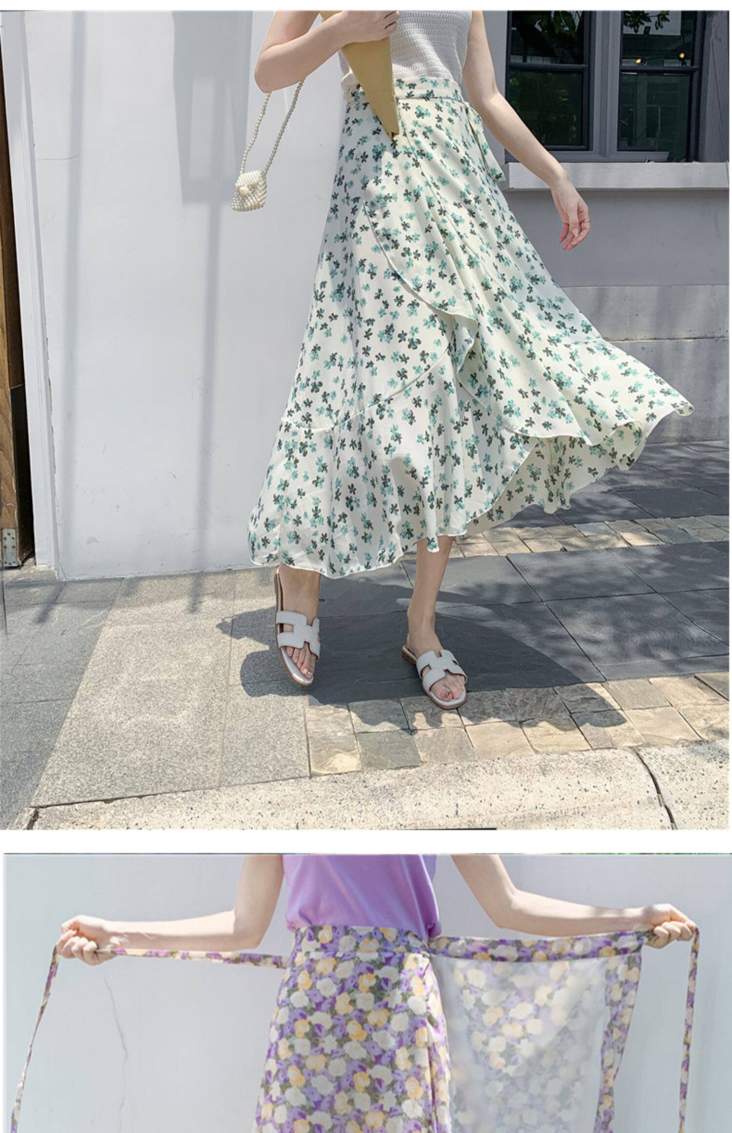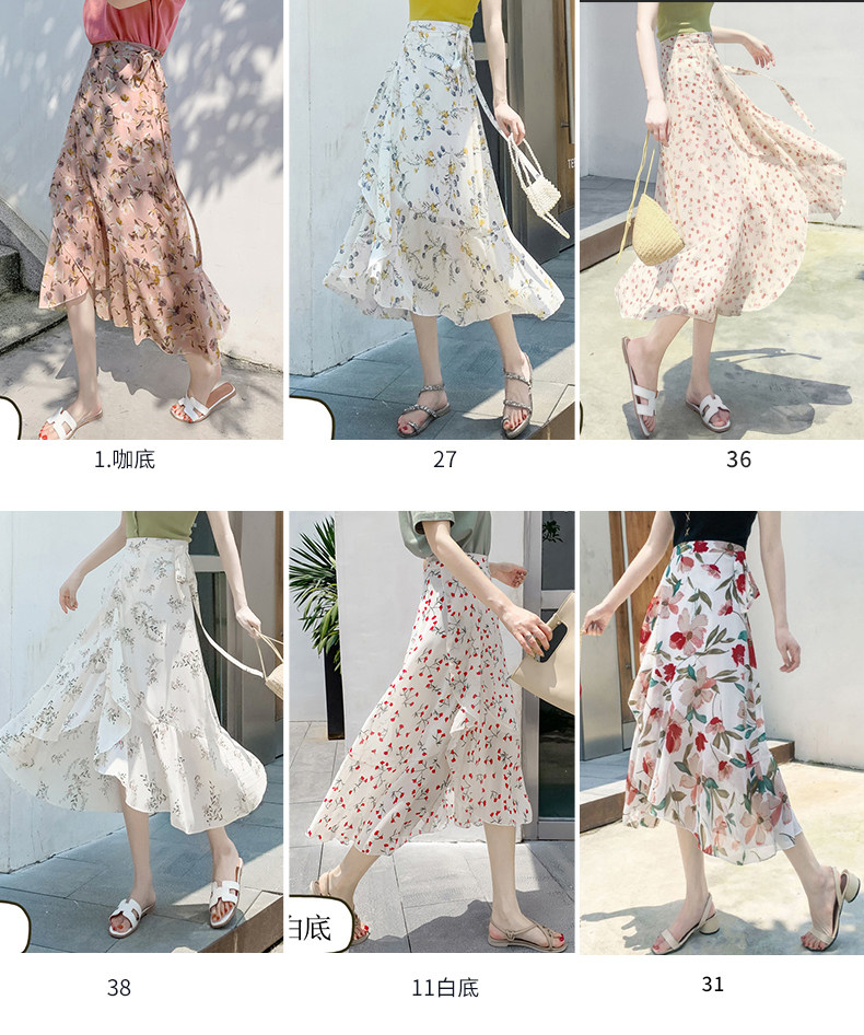 Тонкая шифоновая летняя длинная юбка, цветочный принт, рыбий хвост