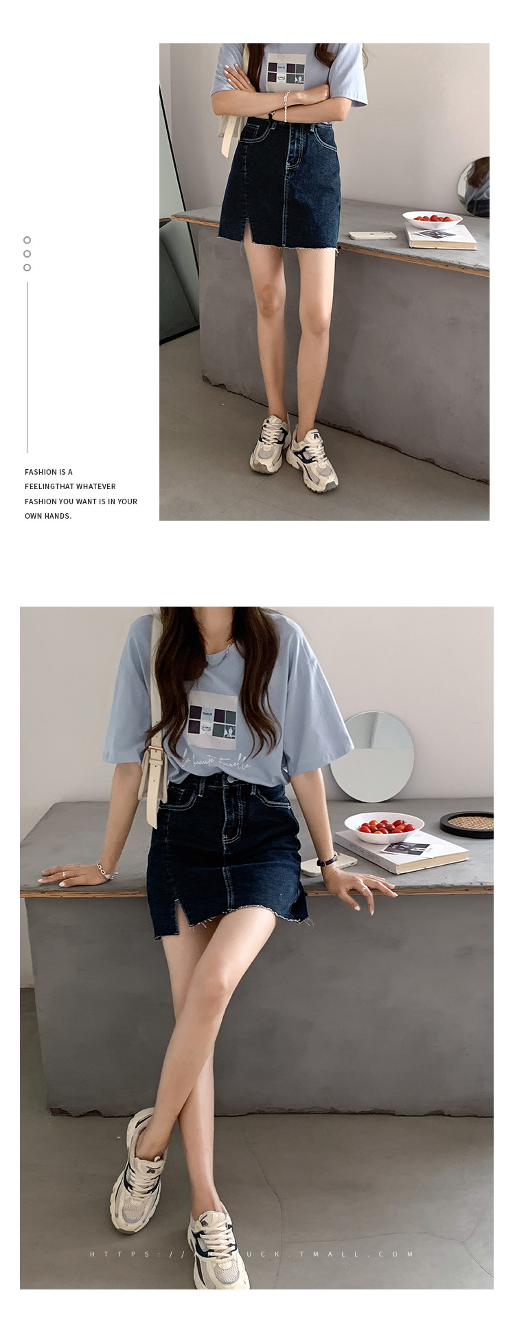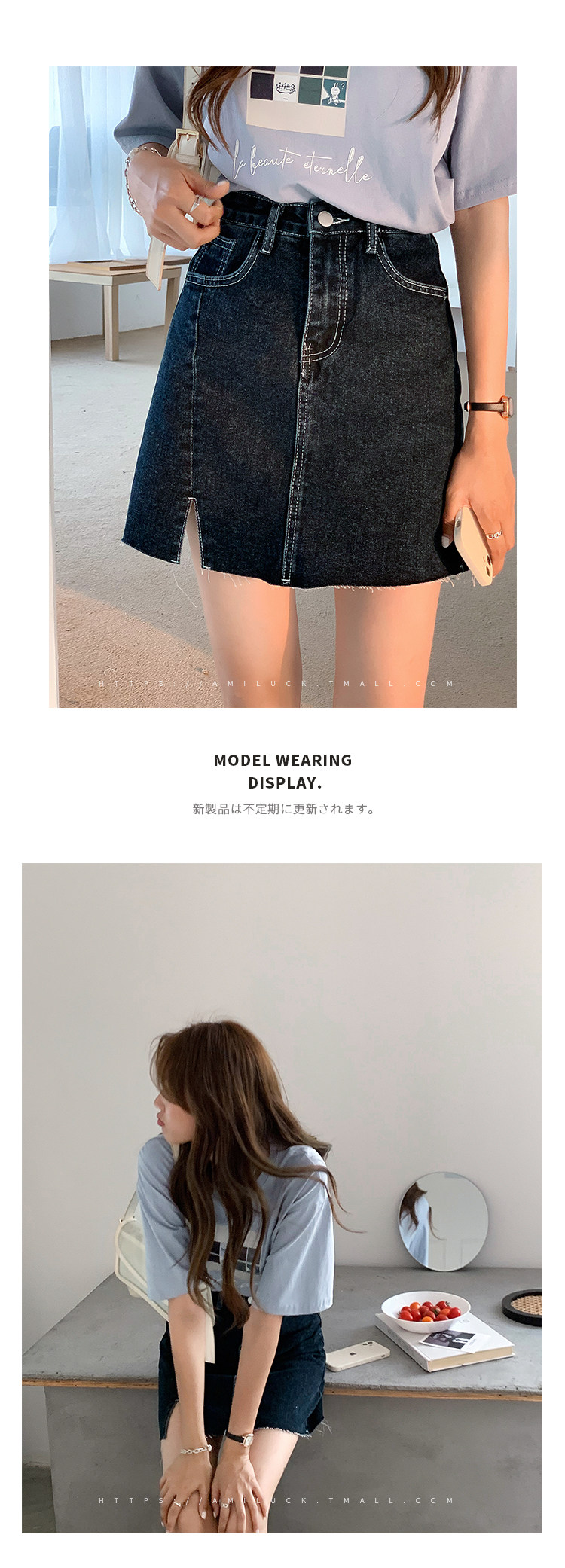 Летняя джинсовая юбка, приталенная мини-юбка, сезон 2021, в корейском стиле, А-силуэт, с акцентом на бедрах
