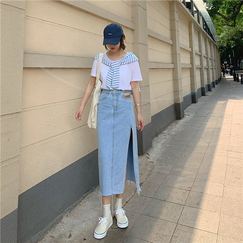Летняя длинная джинсовая юбка, 2021 года, высокая талия, длина макси, свободный крой, А-силуэт