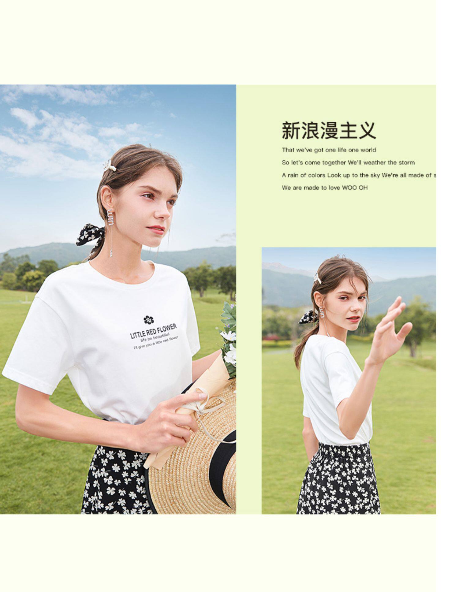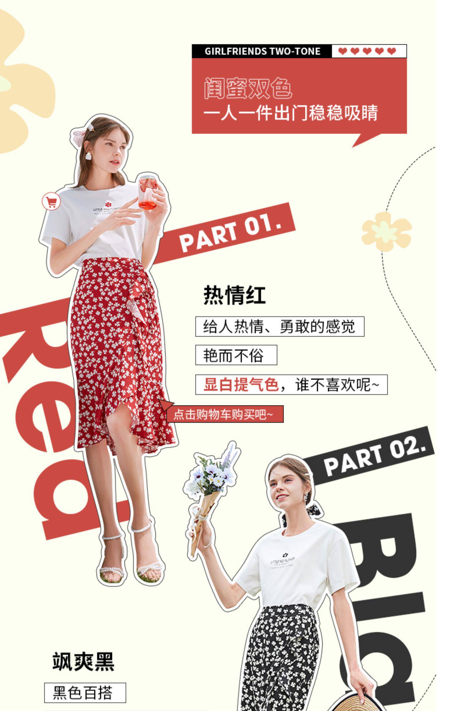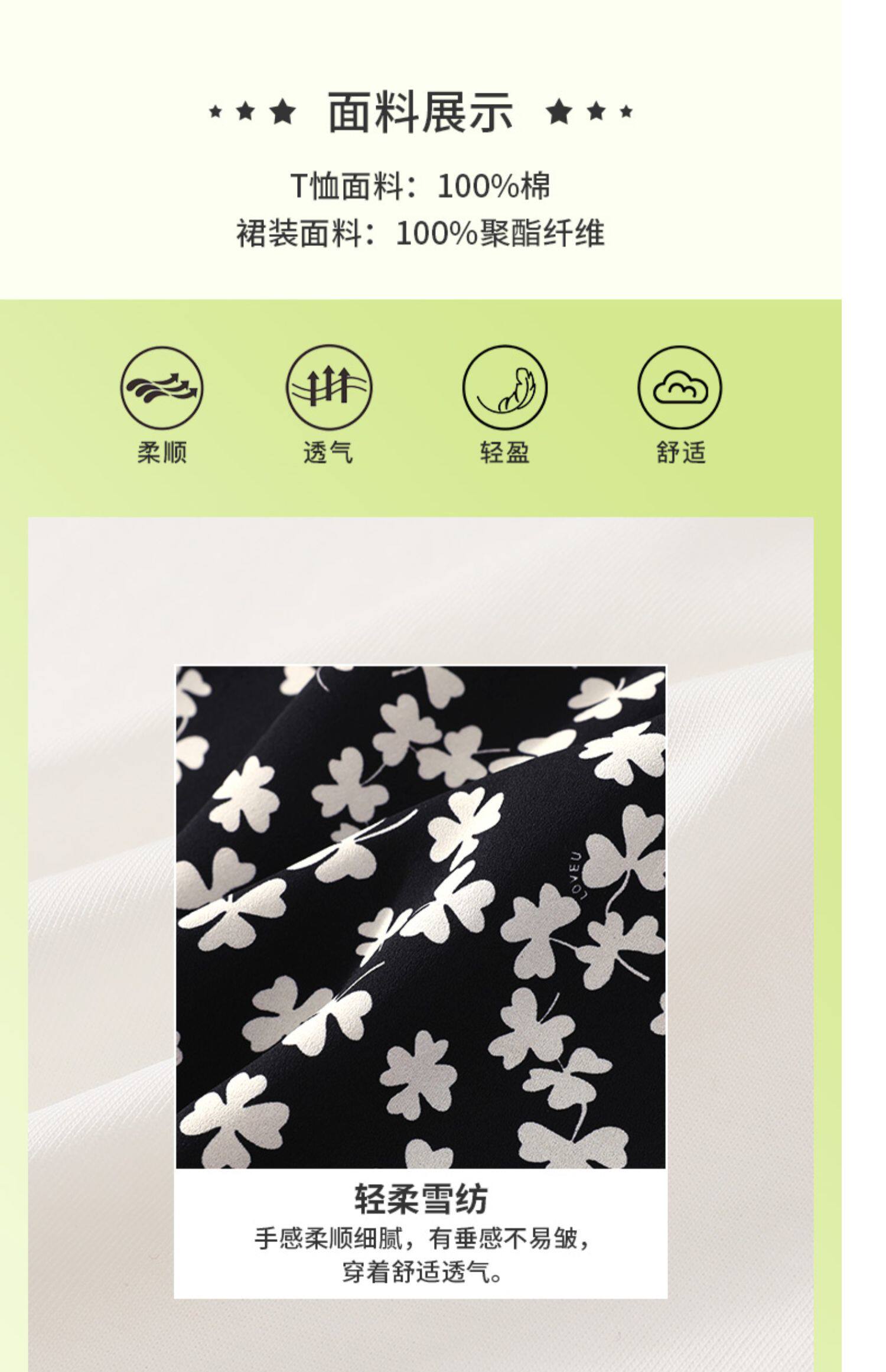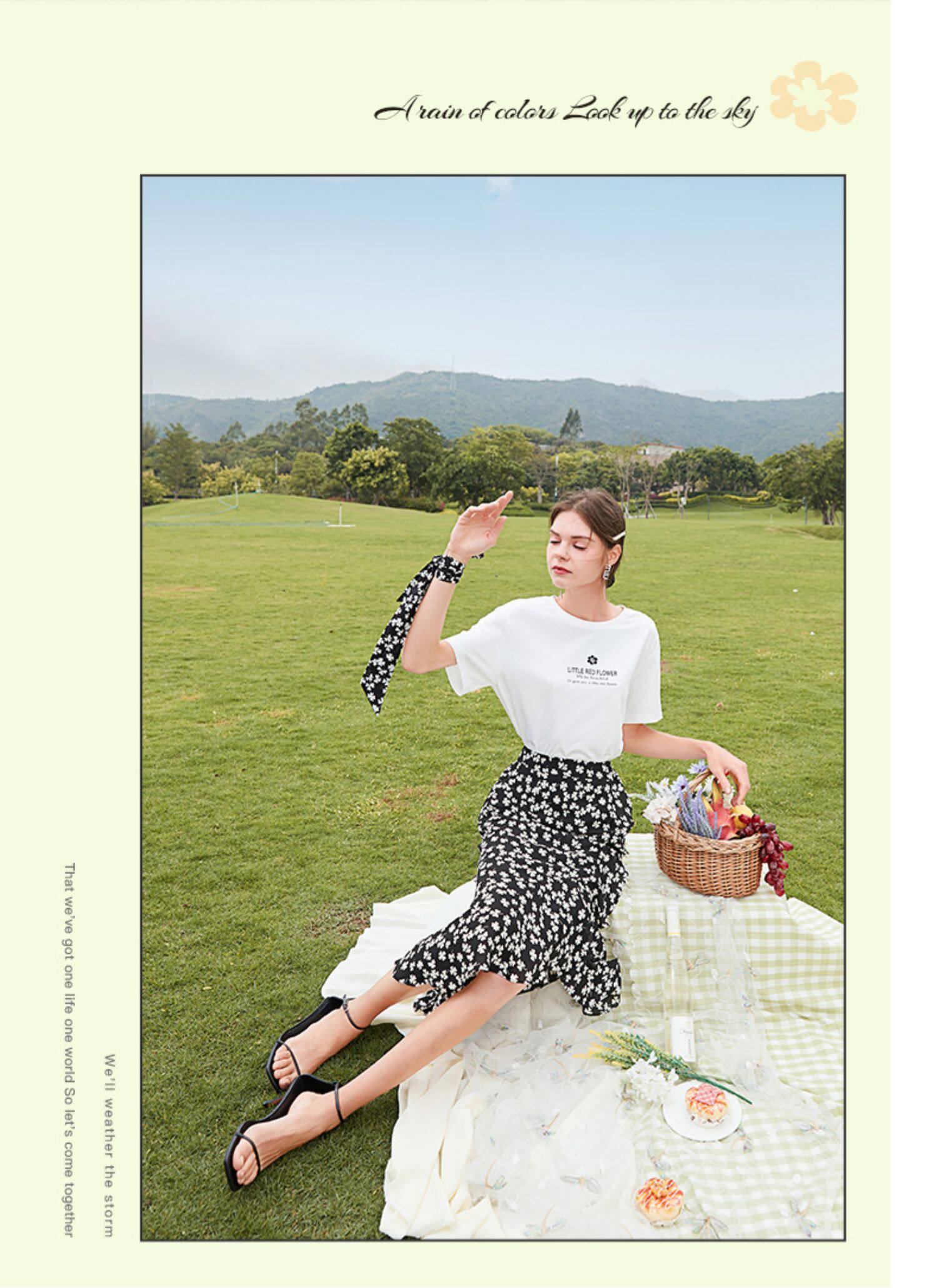Белая хлопковая футболка с коротким рукавом, черная шифоновая летняя юбка, коллекция 2021, короткий рукав, высокая талия, цветочный принт