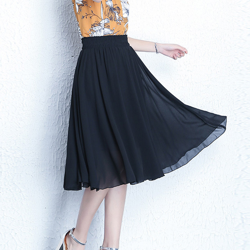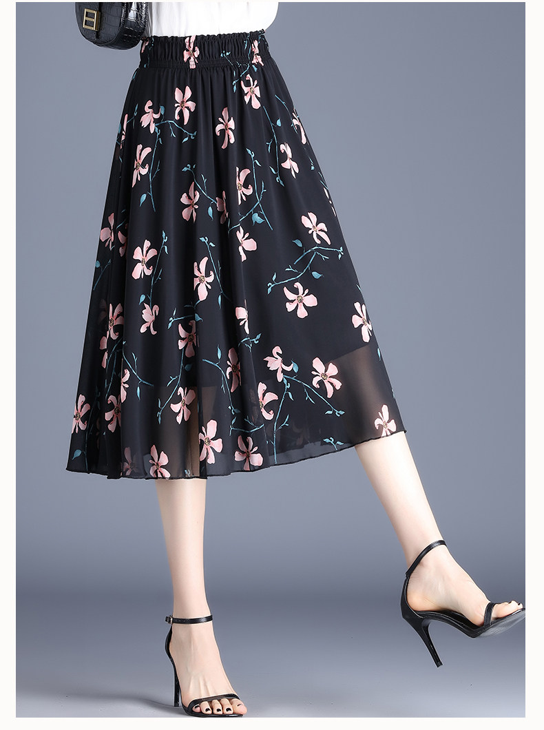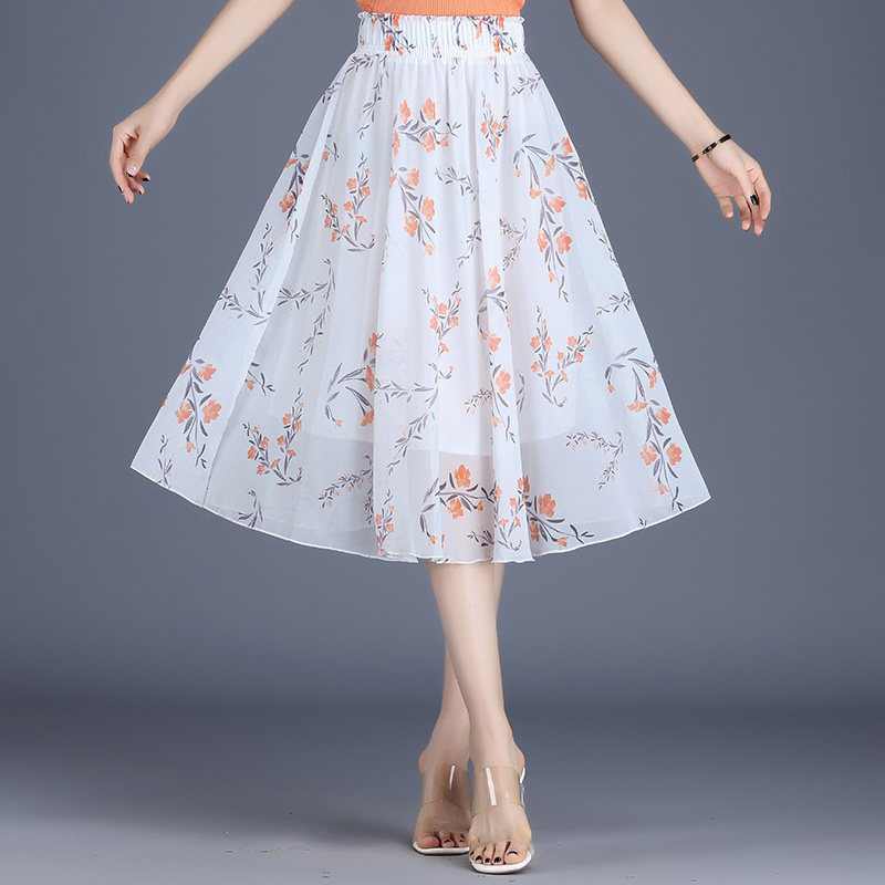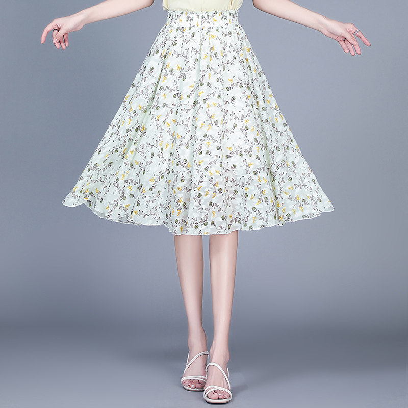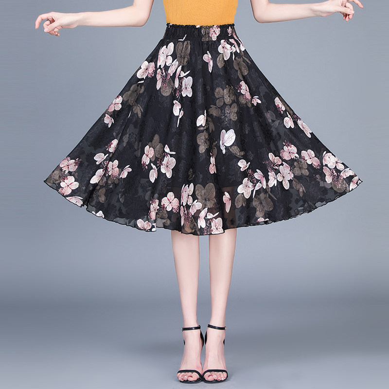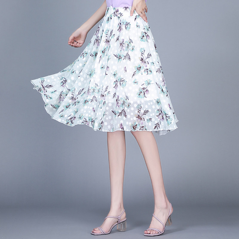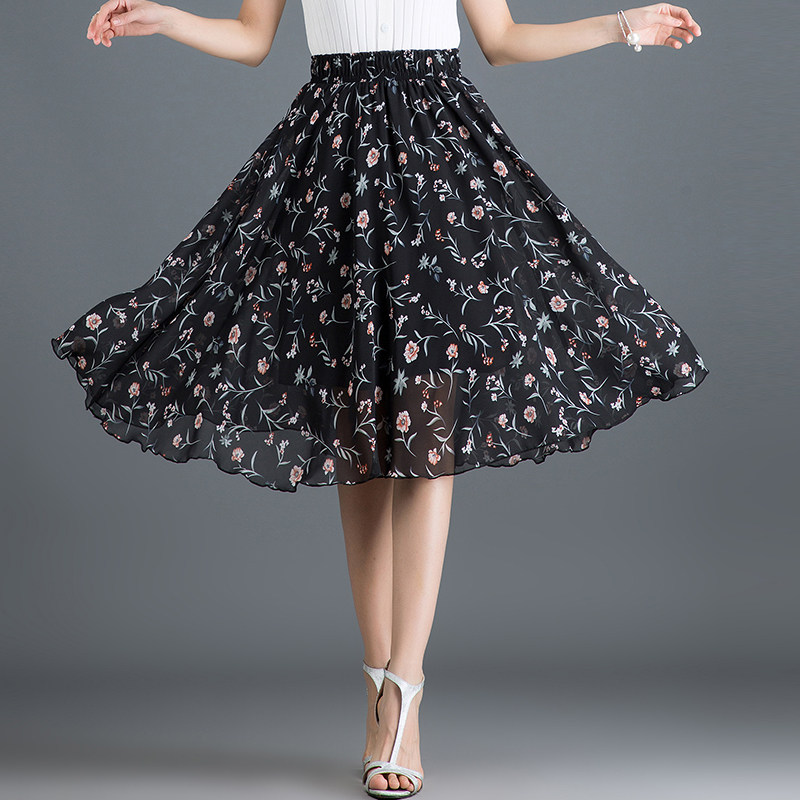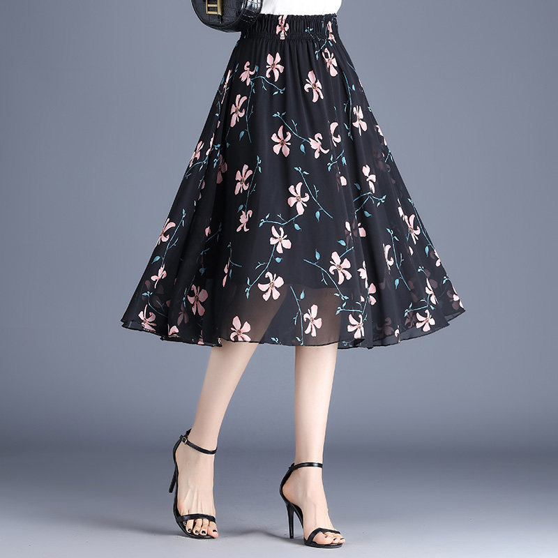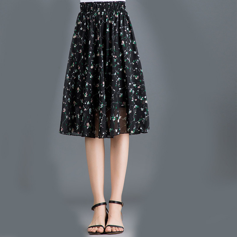 Длинная летняя шифоновая юбка в складку, цветочный принт, А-силуэт