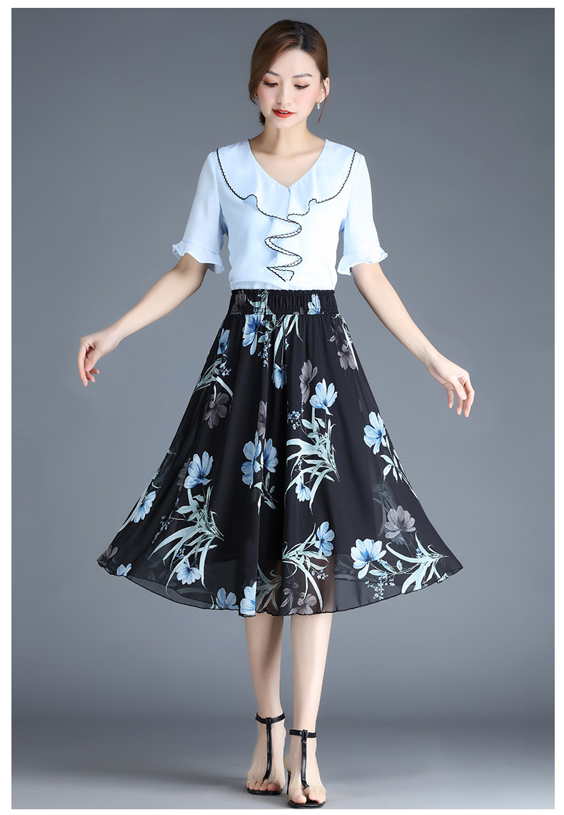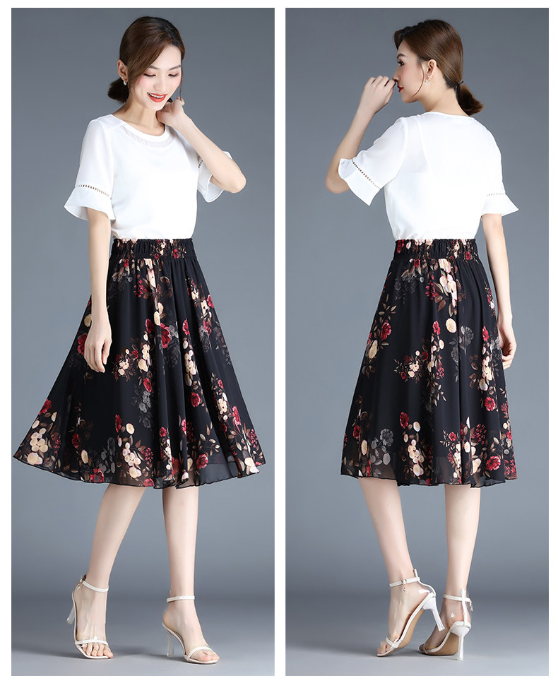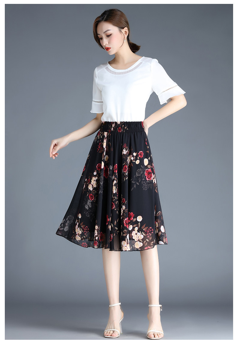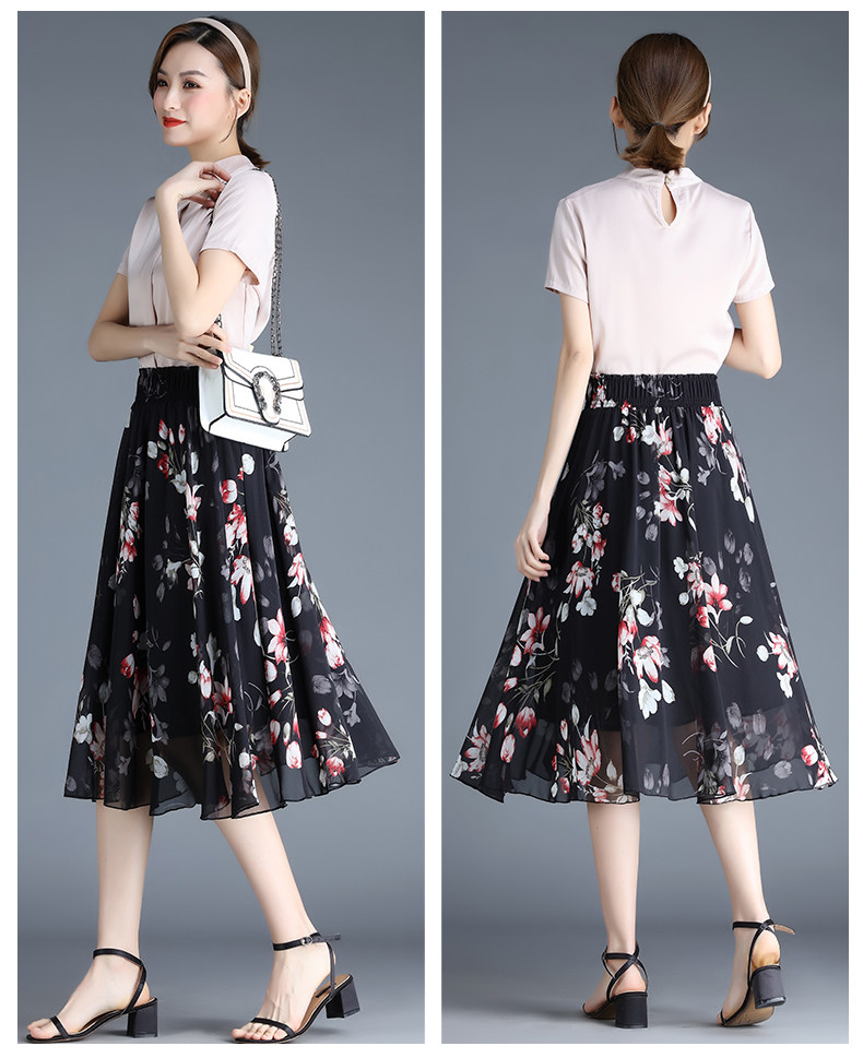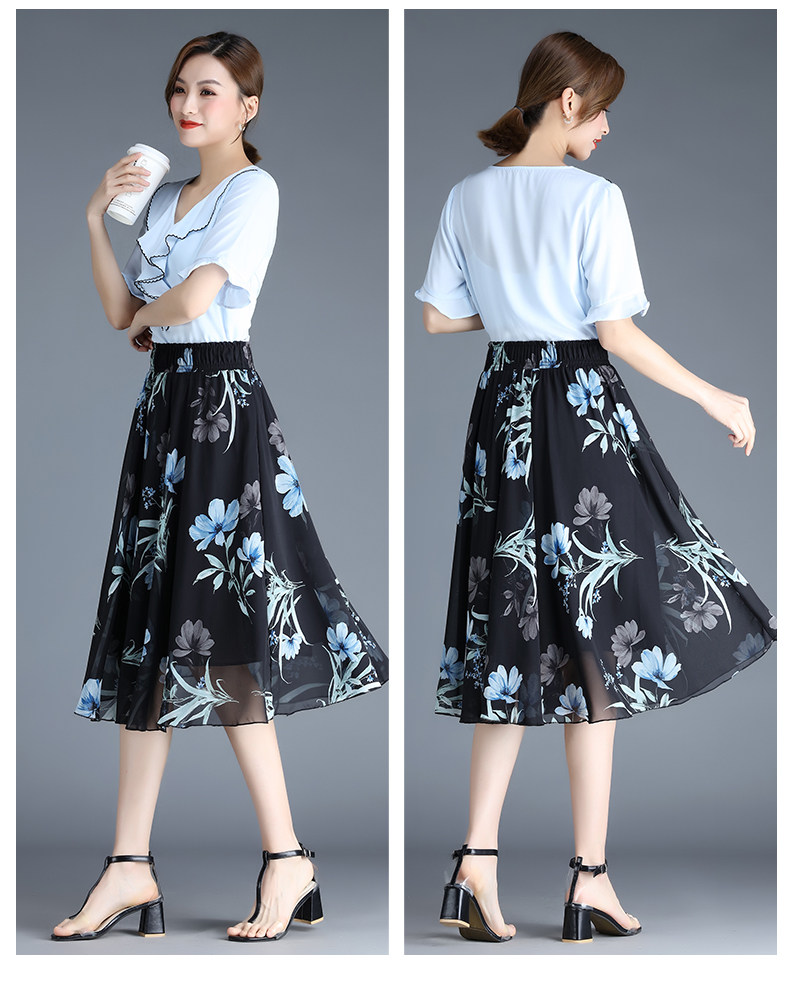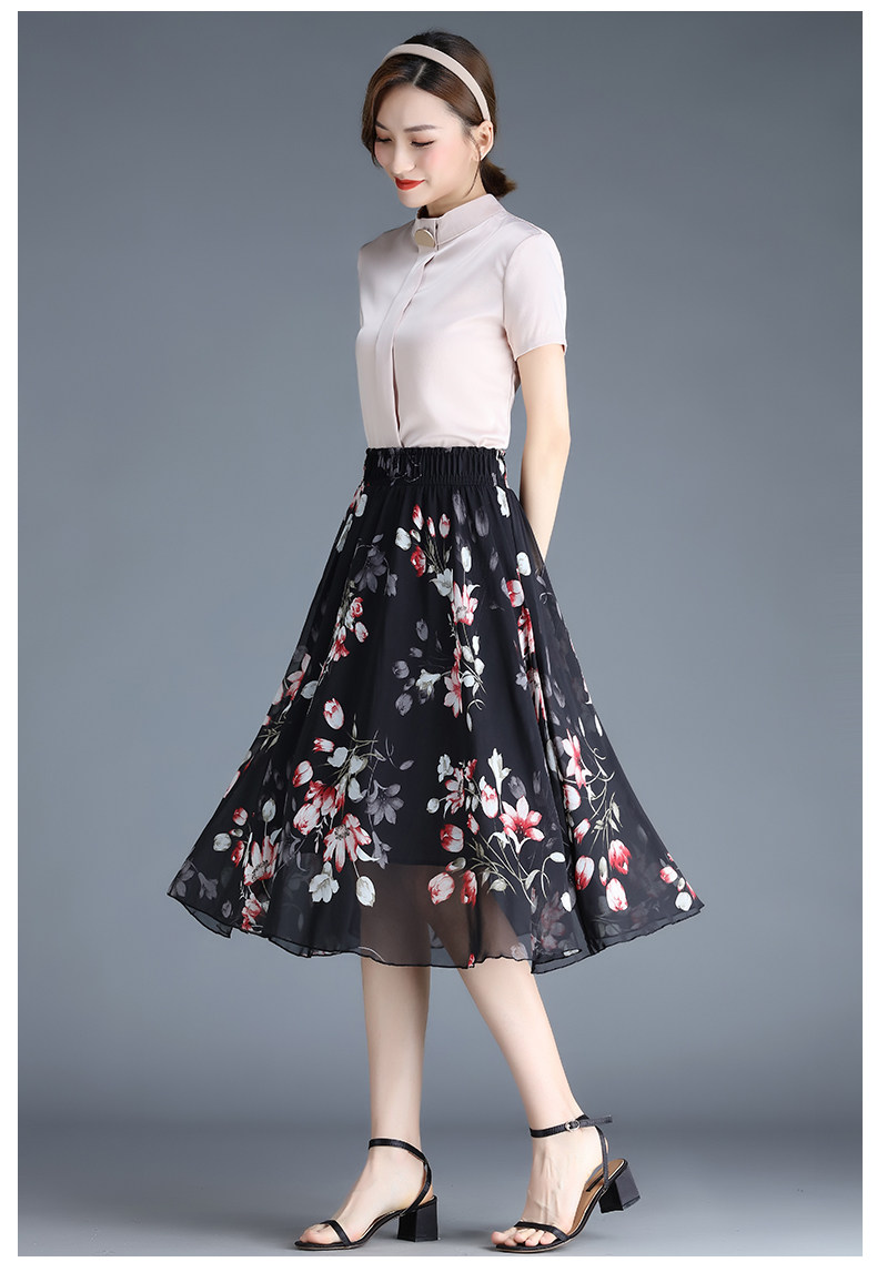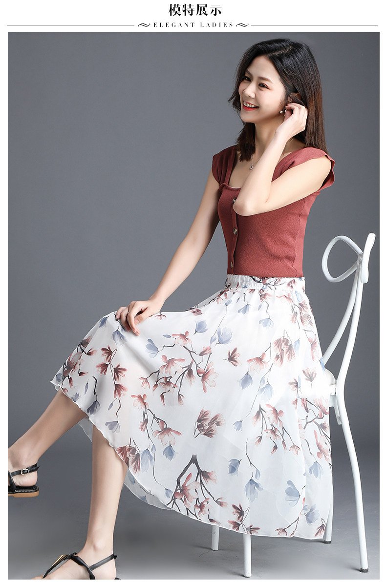 Длинная летняя шифоновая юбка в складку, цветочный принт, А-силуэт