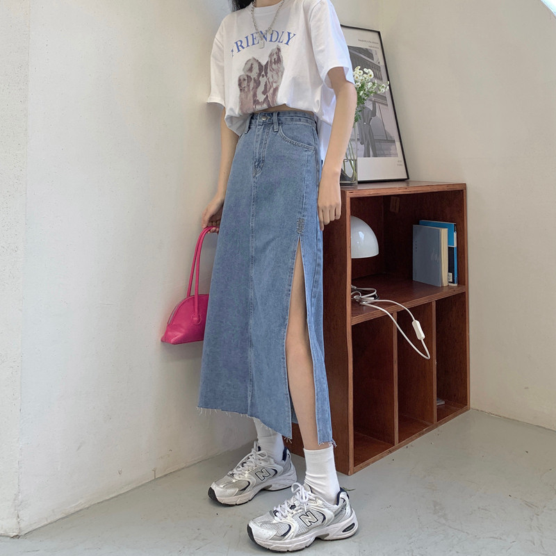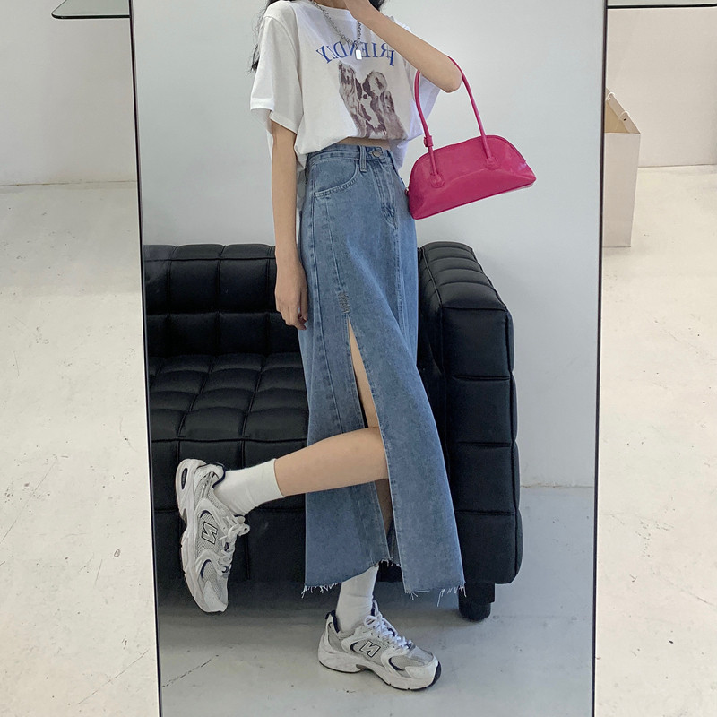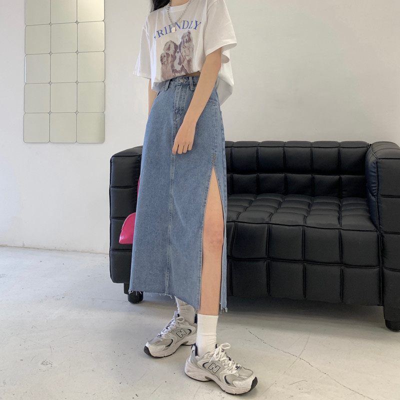 Длинная осенняя ретро джинсовая юбка, высокая талия, А-силуэт