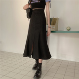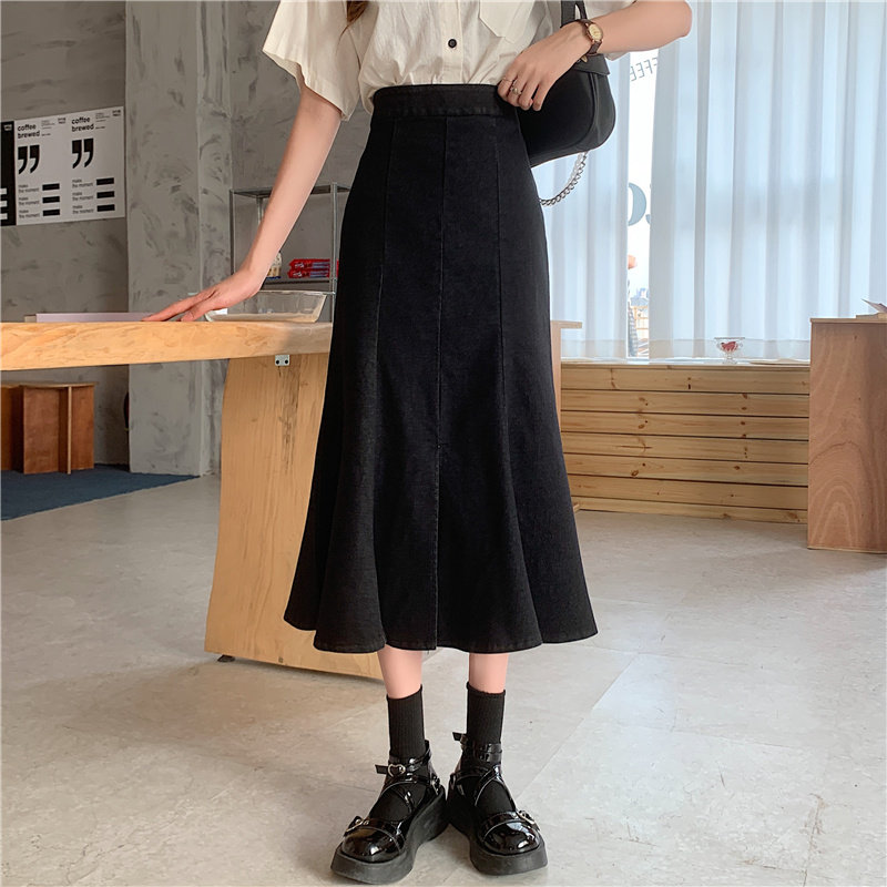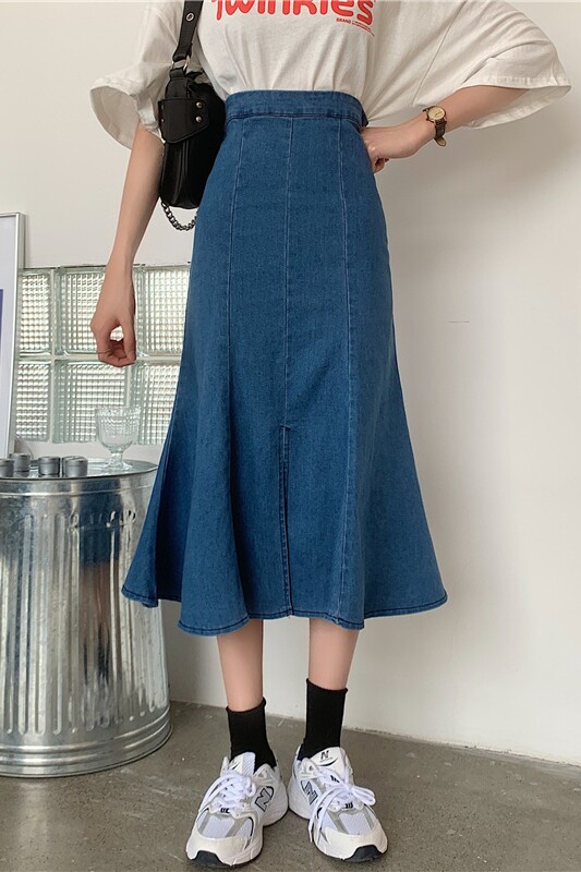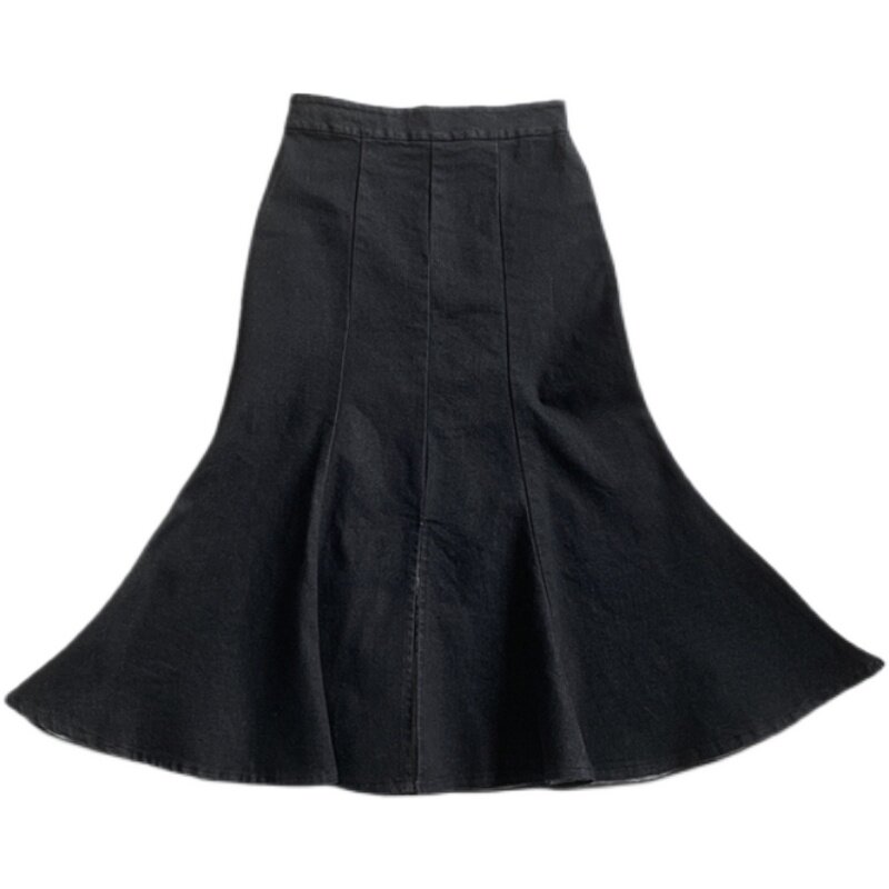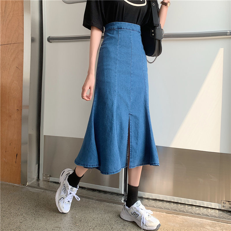 Джинсовая юбка, дизайнерская длинная юбка, большой размер, тренд сезона, высокая талия, рыбий хвост, с акцентом на бедрах