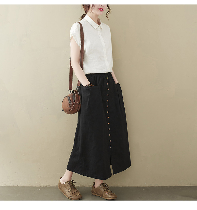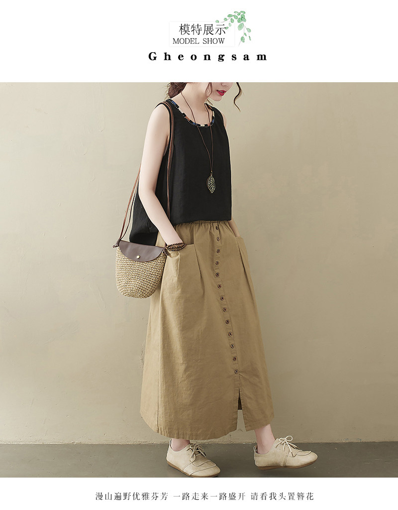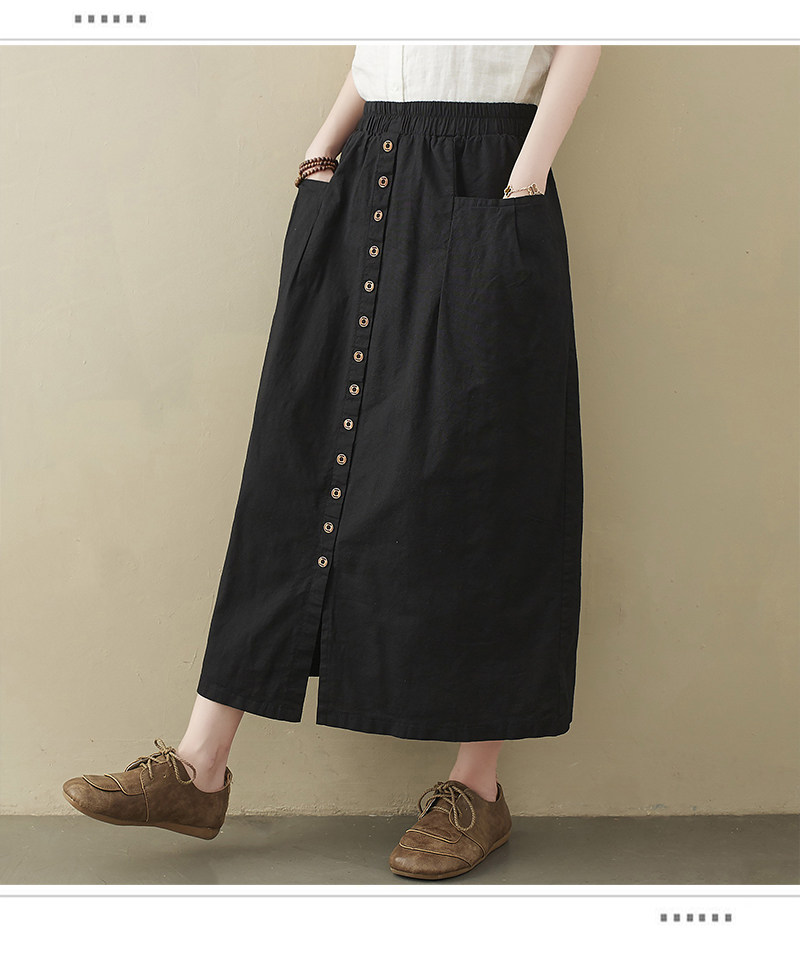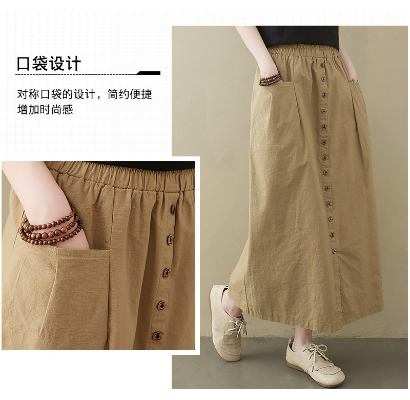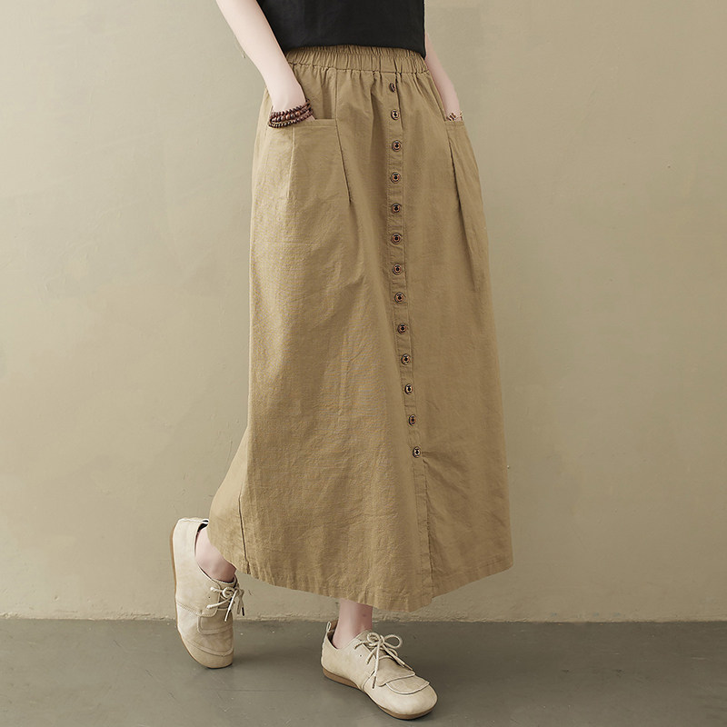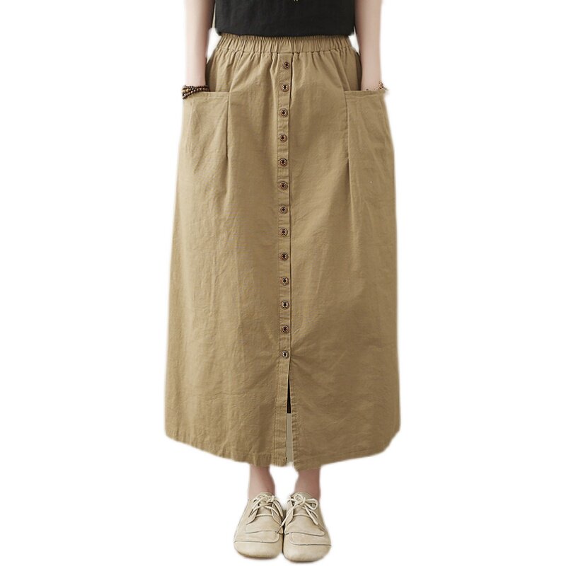 Длинная летняя ретро юбка, из хлопка и льна, средней длины, большой размер, А-силуэт