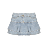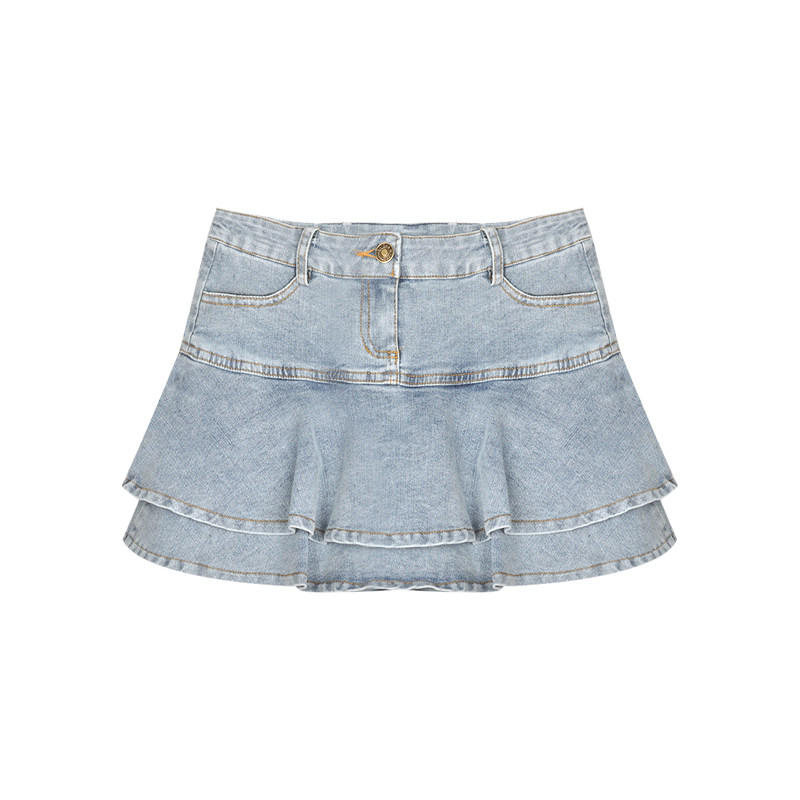 Джинсовая юбка, летняя мини-юбка, юбка в складку, высокая талия, крой «рыбий хвост»