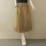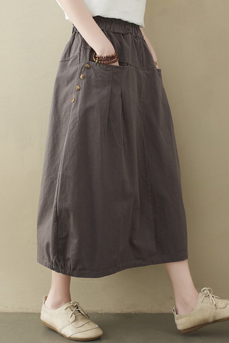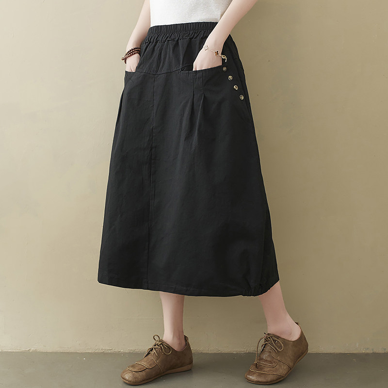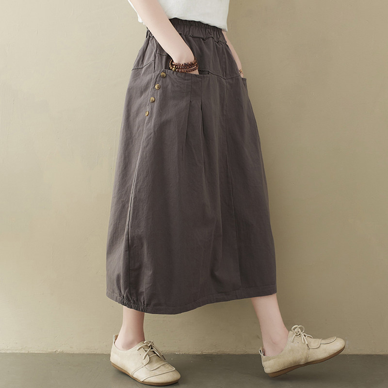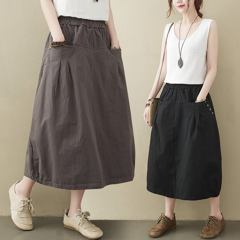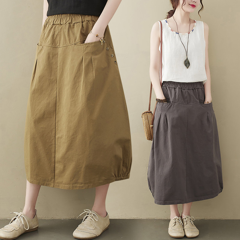 Летняя длинная вместительная и большая юбка, из хлопка и льна, яркий броский стиль, средней длины, большой размер, А-силуэт, высокая талия