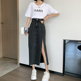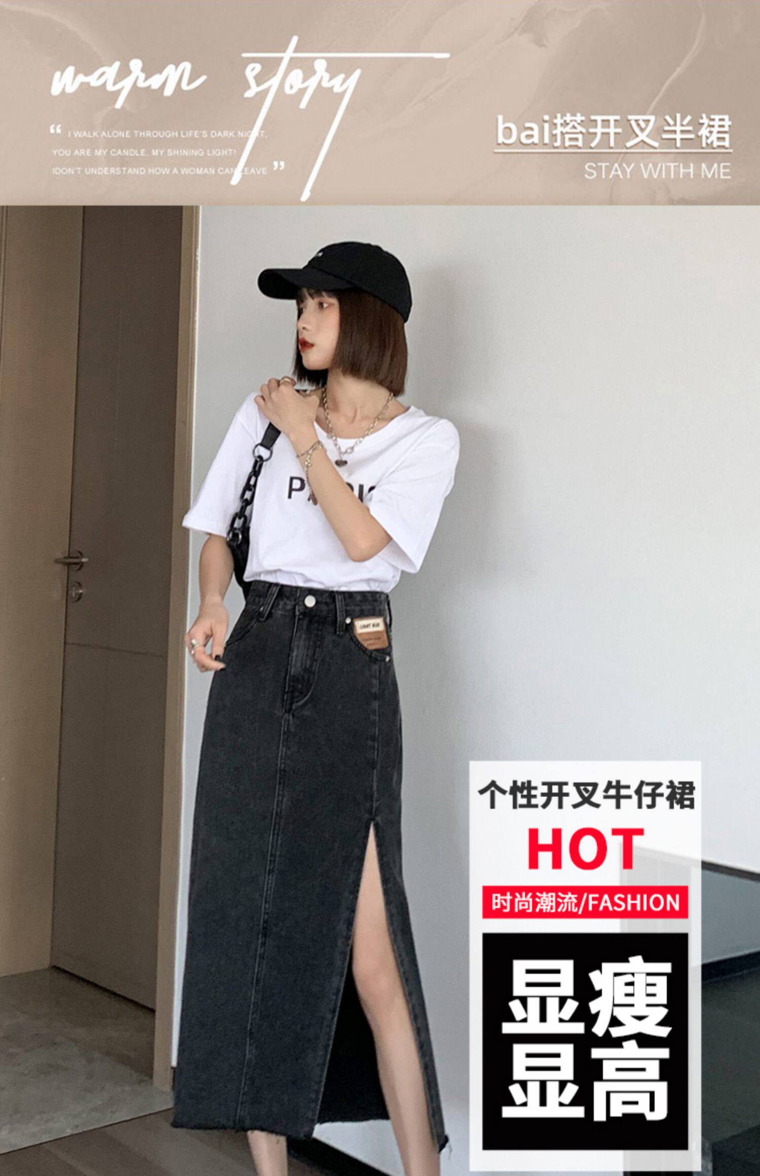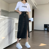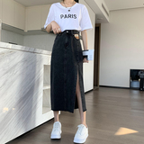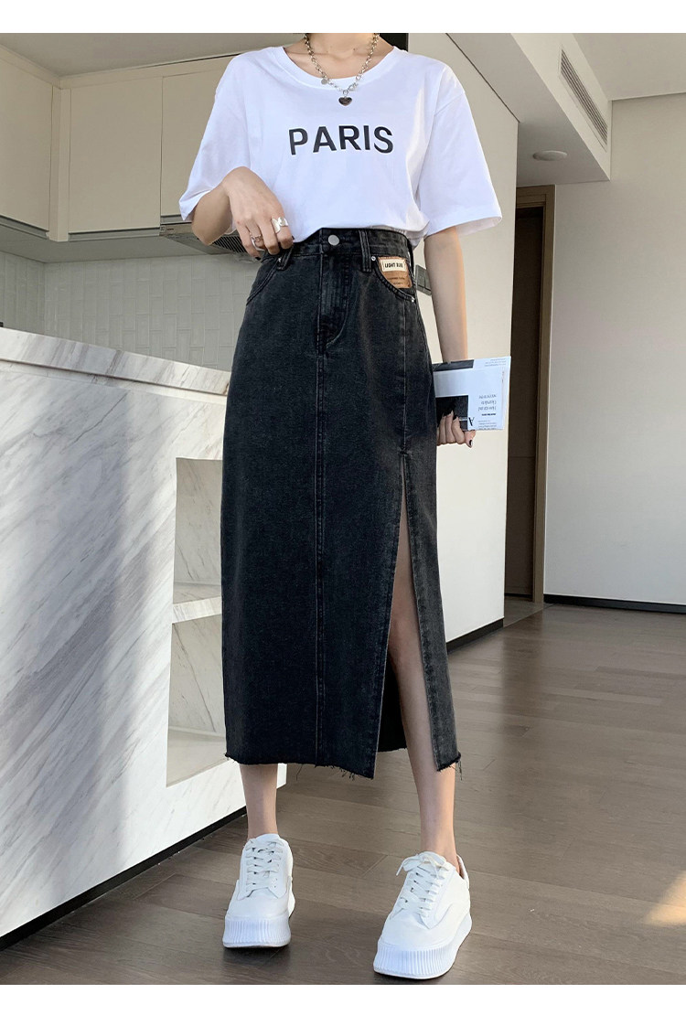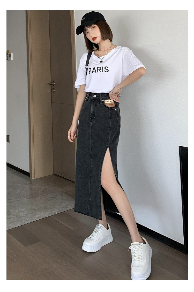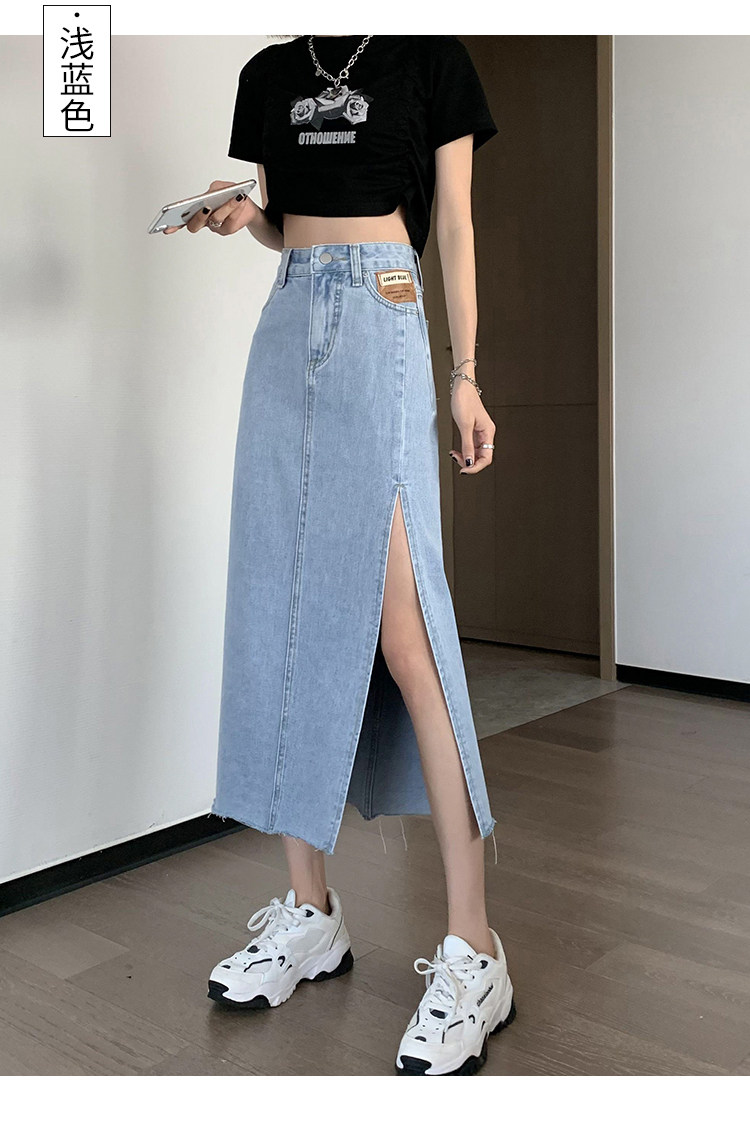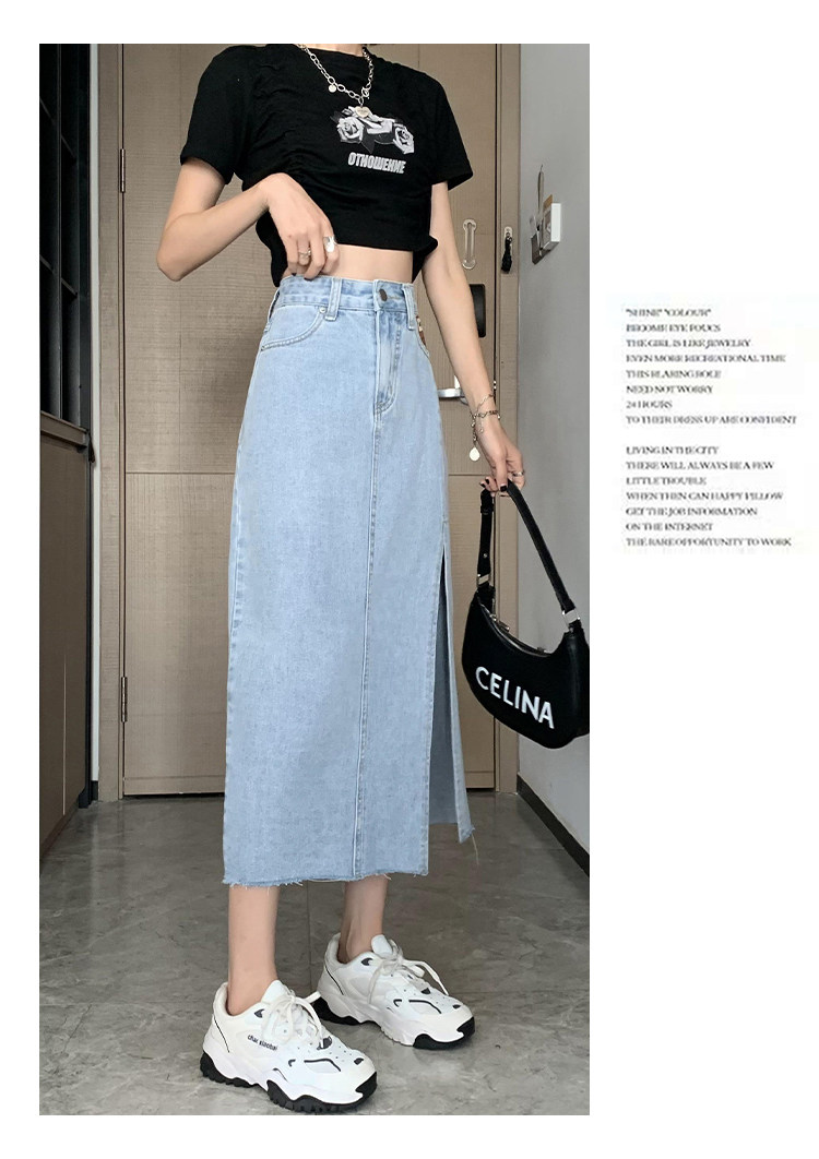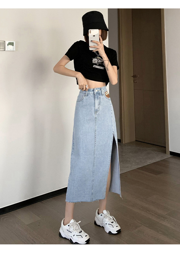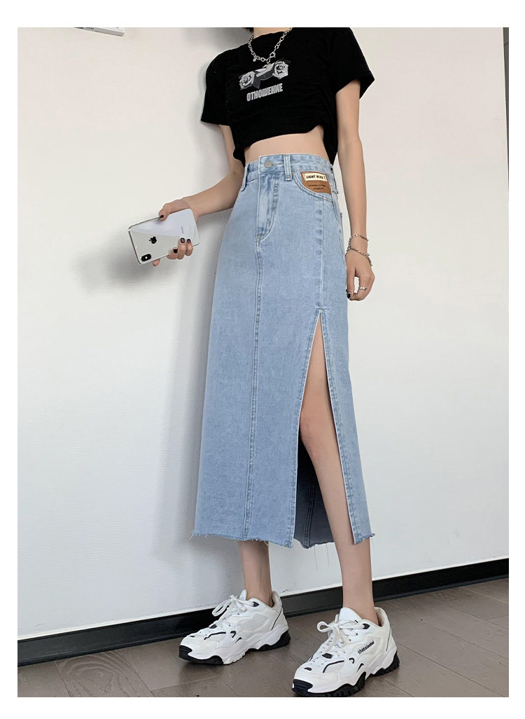 Летняя длинная джинсовая юбка, высокая талия, средней длины, с акцентом на бедрах, А-силуэт