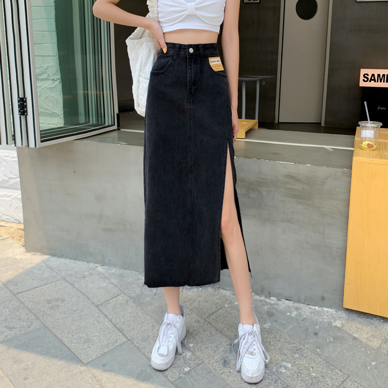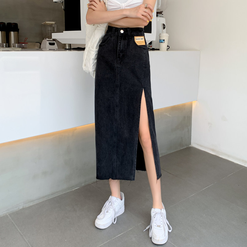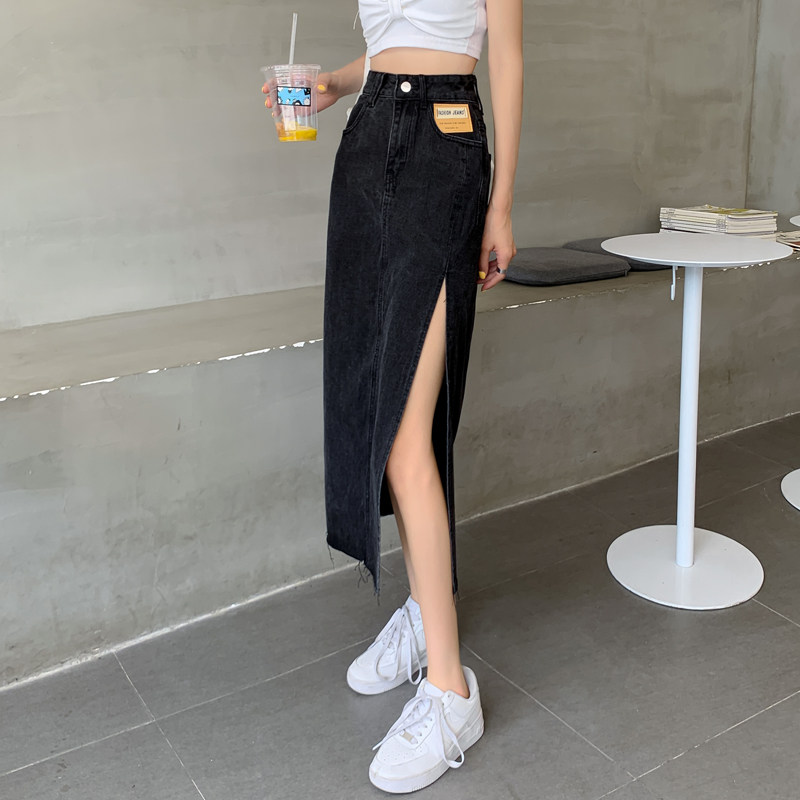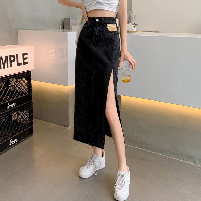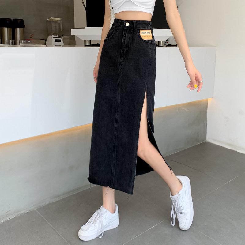 Tide, осенняя джинсовая юбка, длинная юбка, высокая талия, А-силуэт, большой размер, с акцентом на бедрах, длина макси