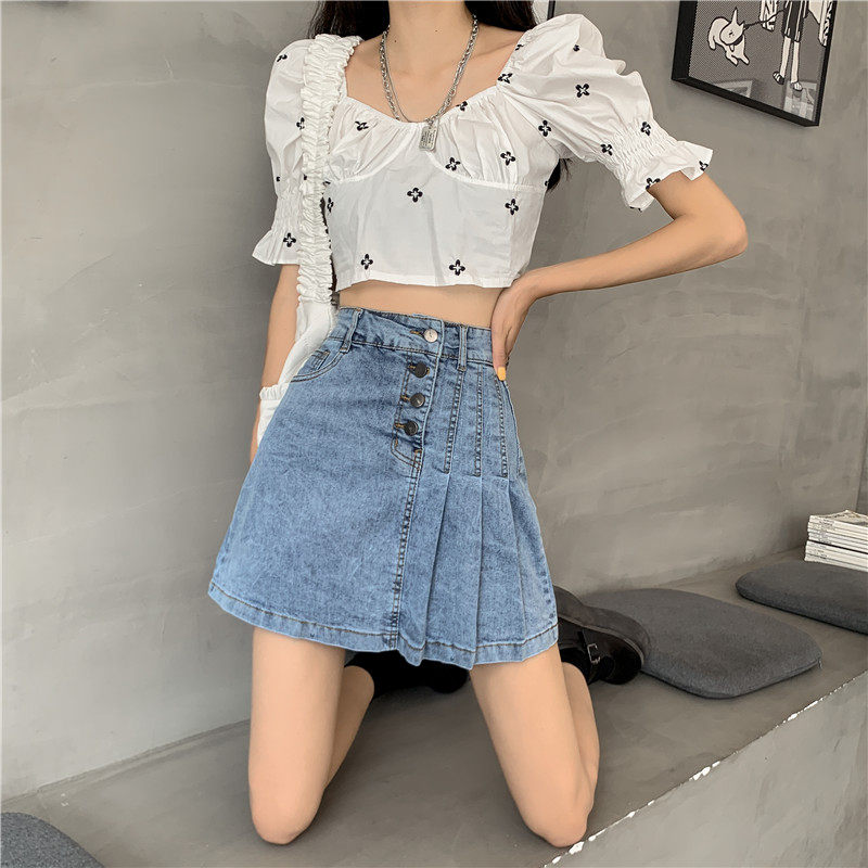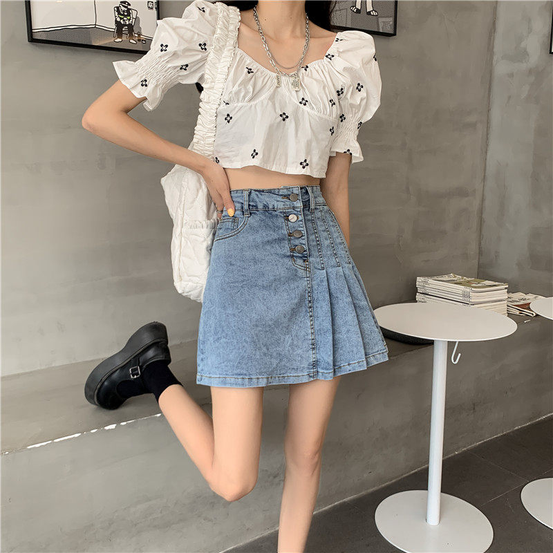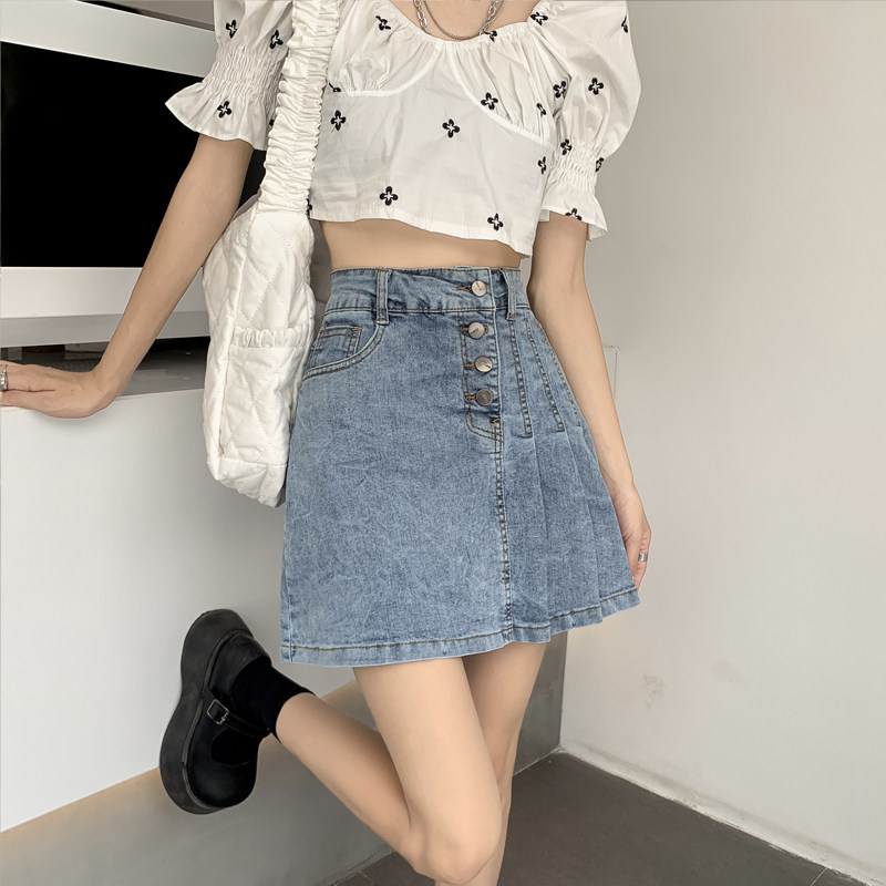 Летняя дизайнерская джинсовая юбка, высокая талия, большой размер, тренд сезона, А-силуэт