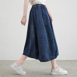 Летняя вместительная и большая длинная джинсовая юбка, высокая талия, большой размер, средней длины, городской стиль, А-силуэт