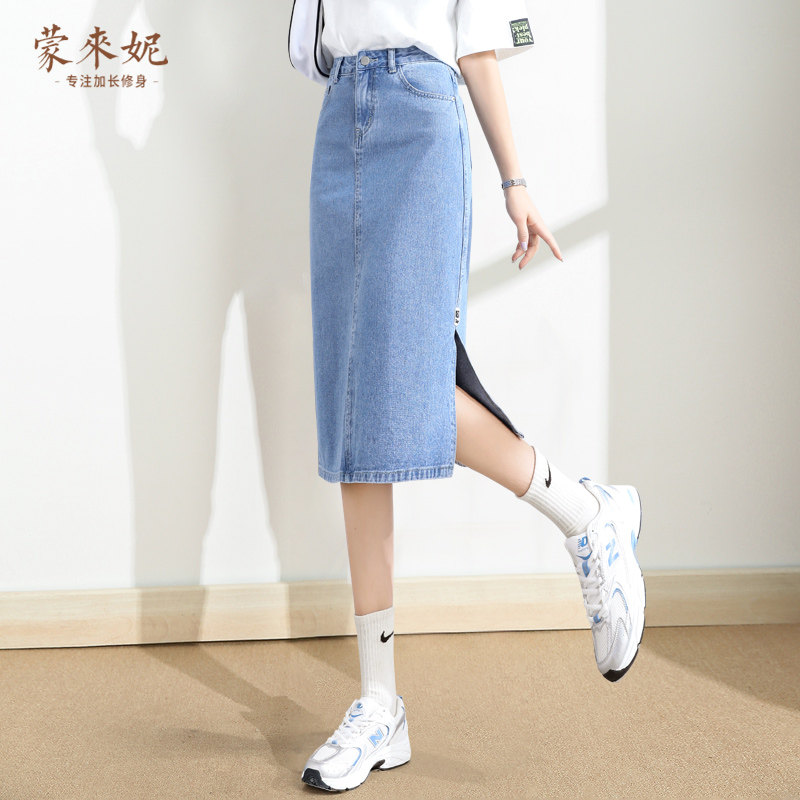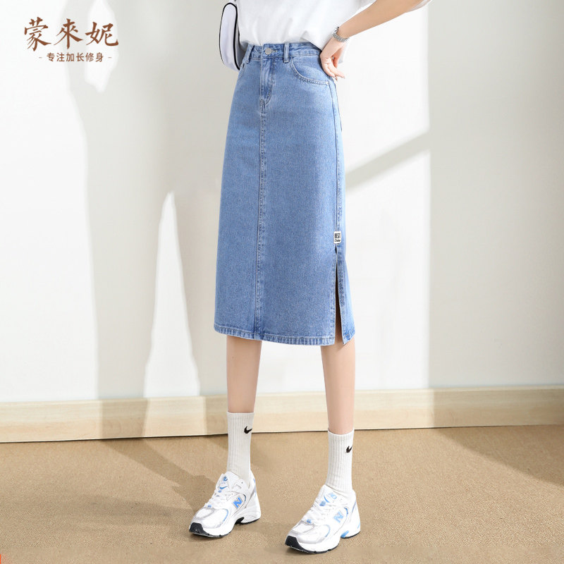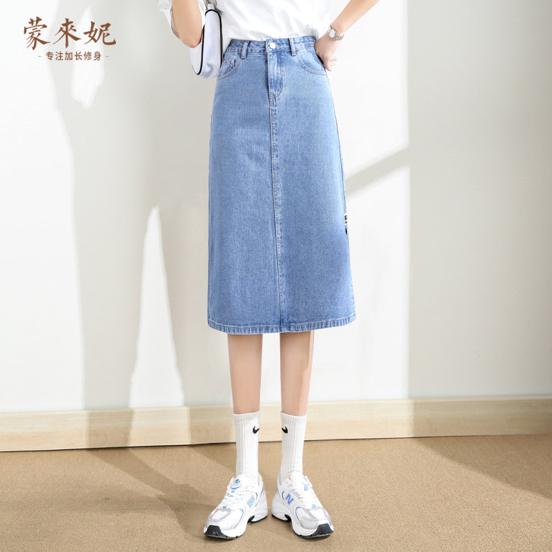 Тонкая длинная джинсовая юбка, высокая талия, коллекция 2023, А-силуэт, средней длины