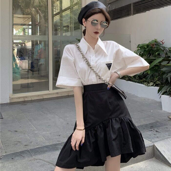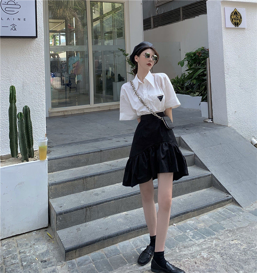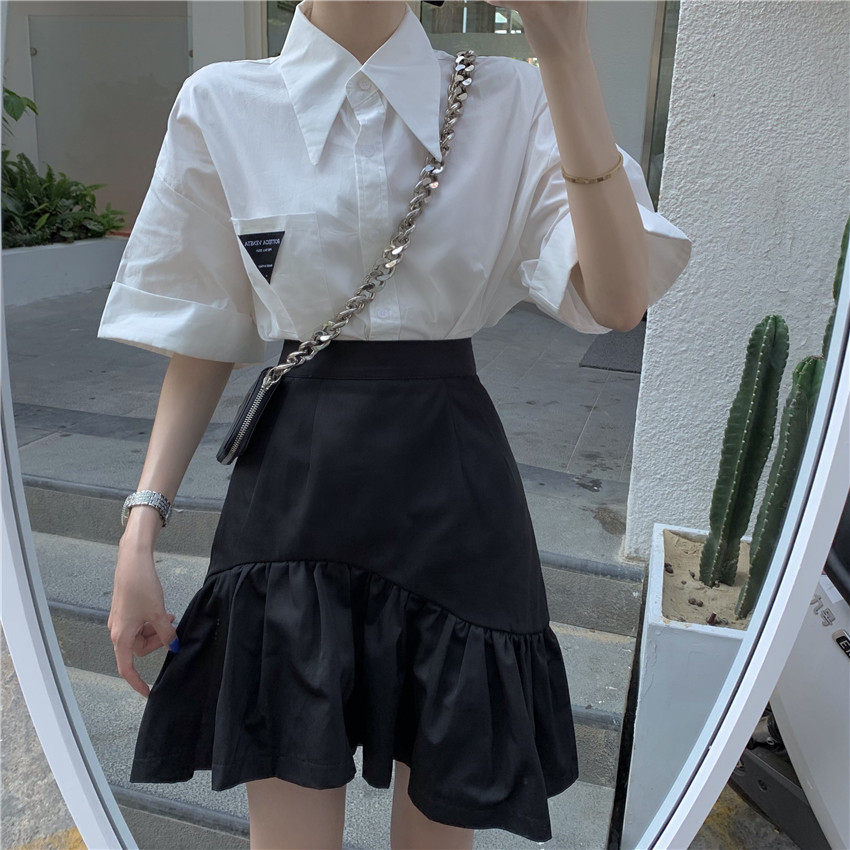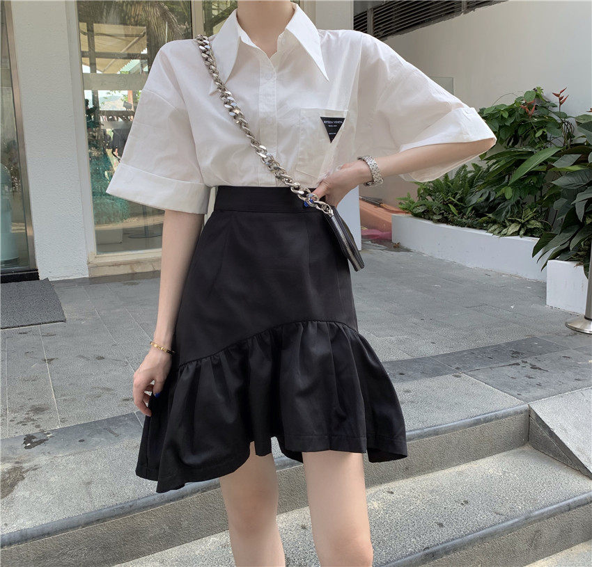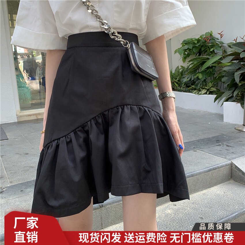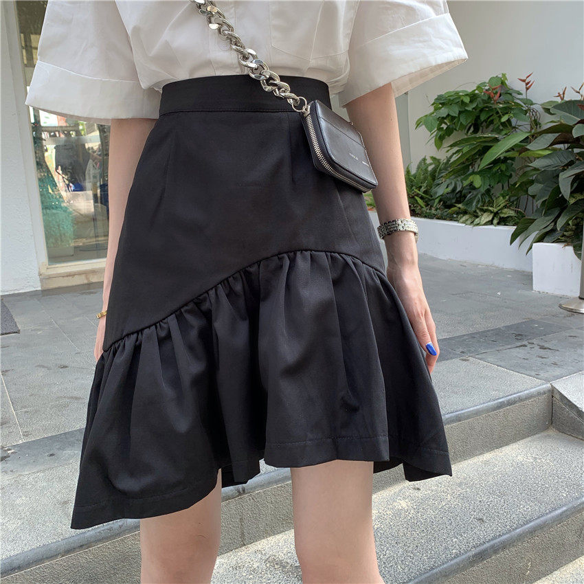 Юбка, летняя приталенная черная мини-юбка, большой размер, высокая талия, А-силуэт, рыбий хвост