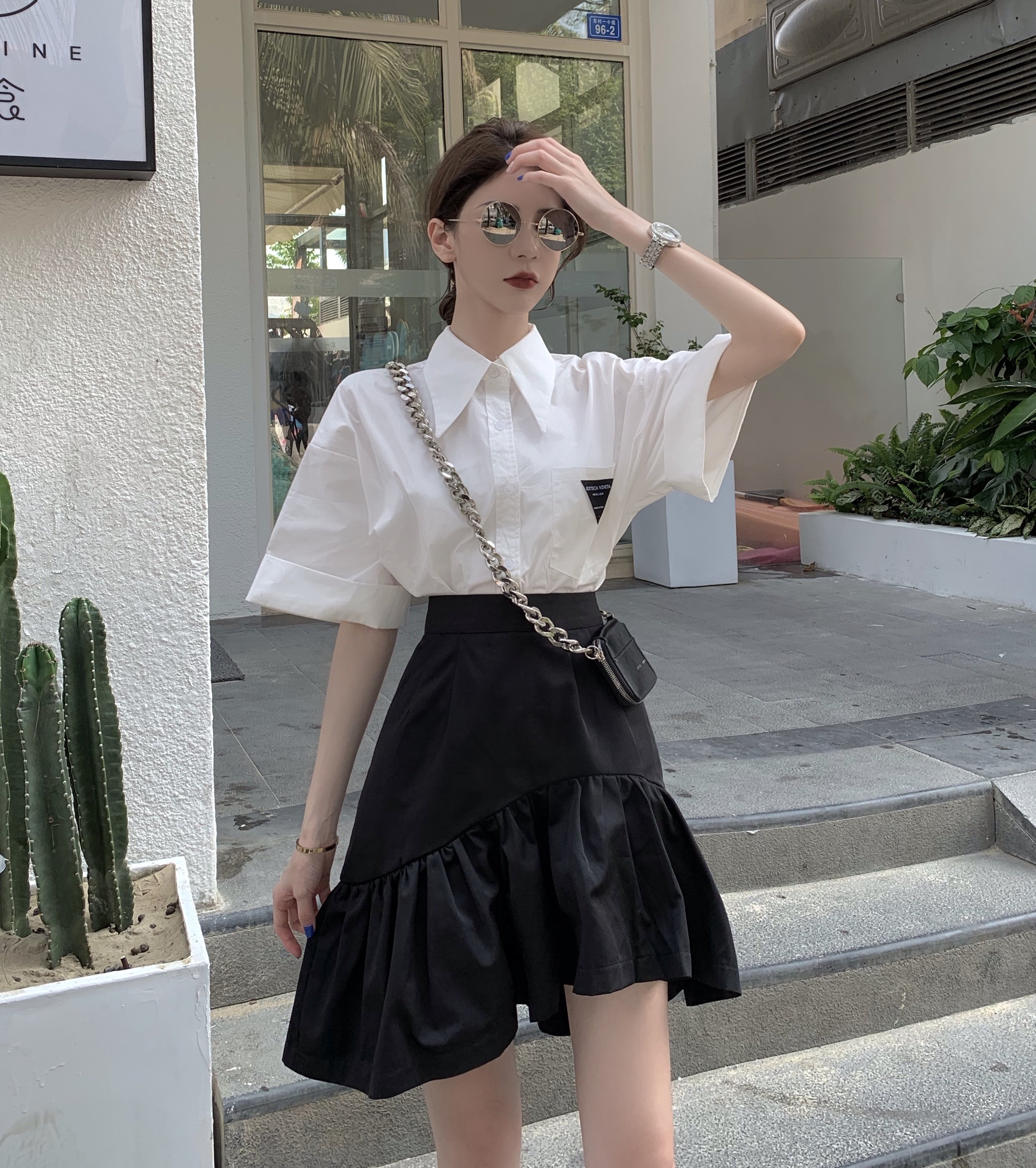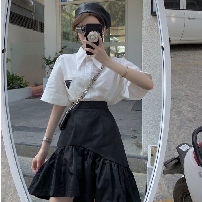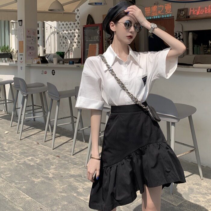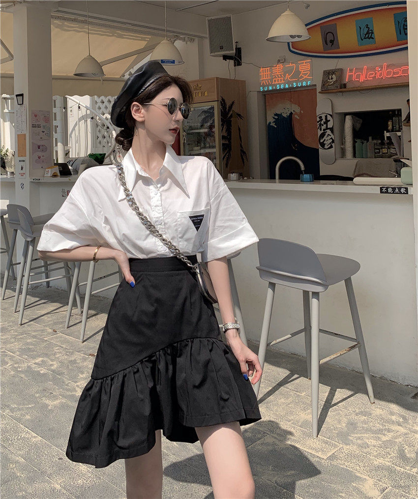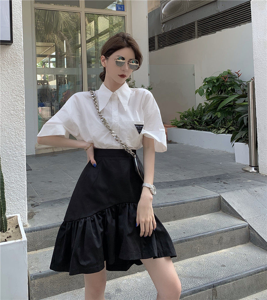Юбка, летняя приталенная черная мини-юбка, большой размер, высокая талия, А-силуэт, рыбий хвост