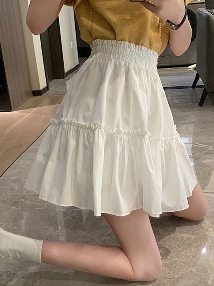 Летняя тонкая мини-юбка, белая юбка в складку, подходит для подростков, высокая талия