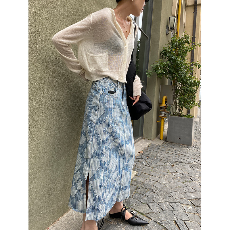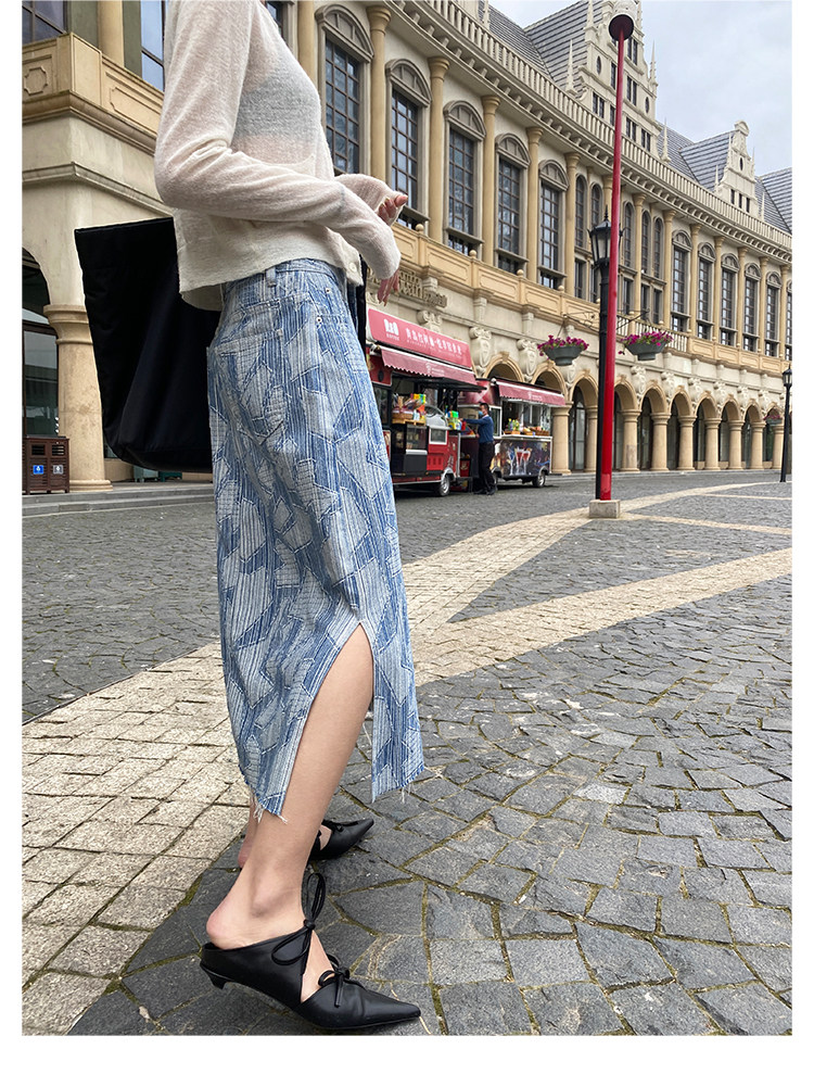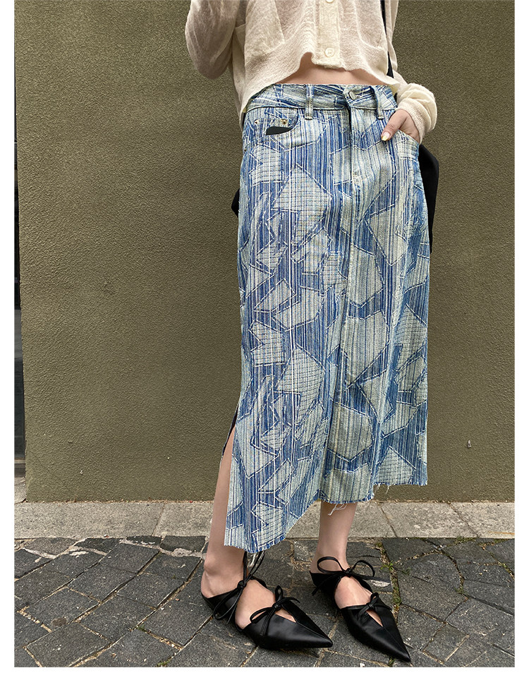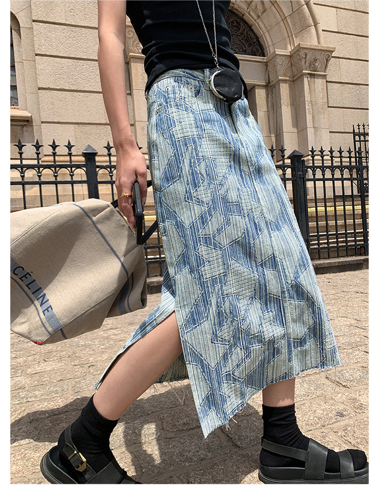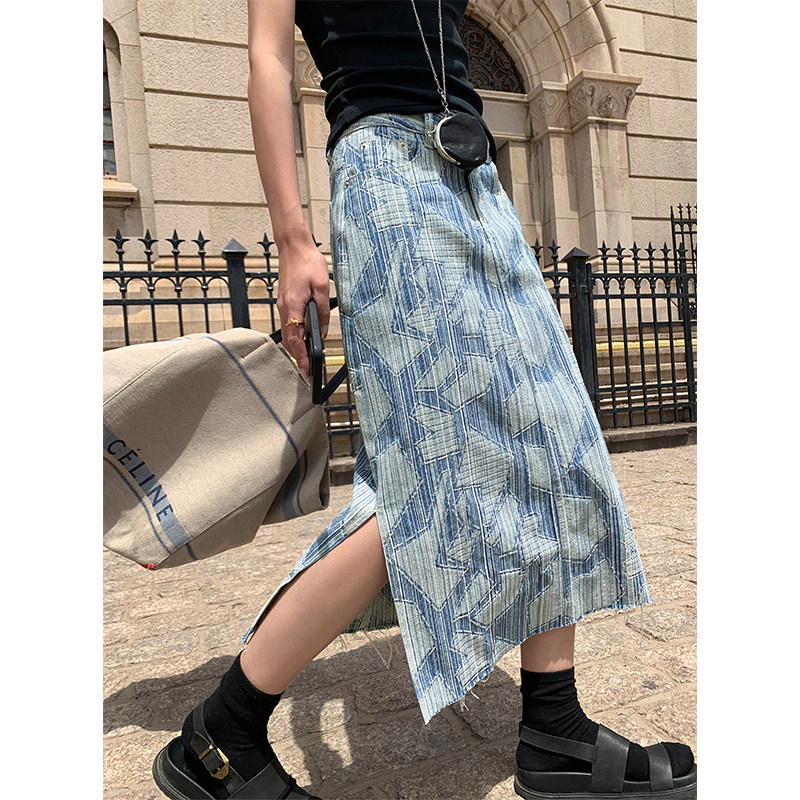 Летняя дизайнерская длинная джинсовая юбка, принт, высокая талия, длина макси