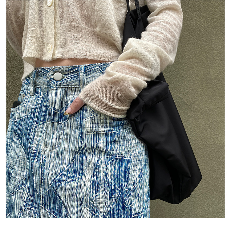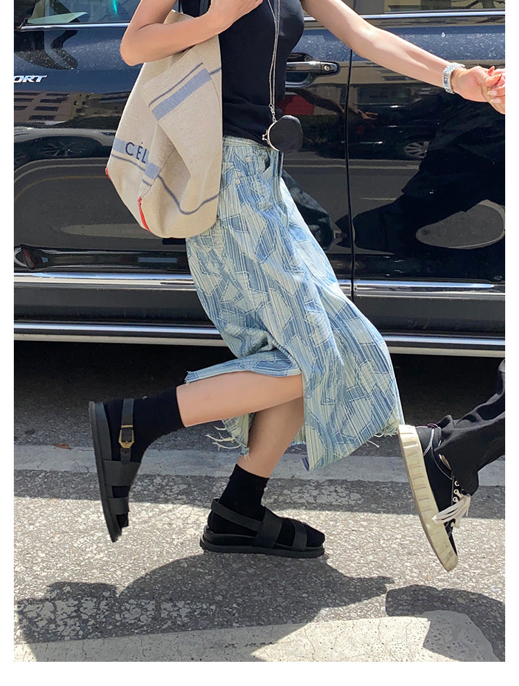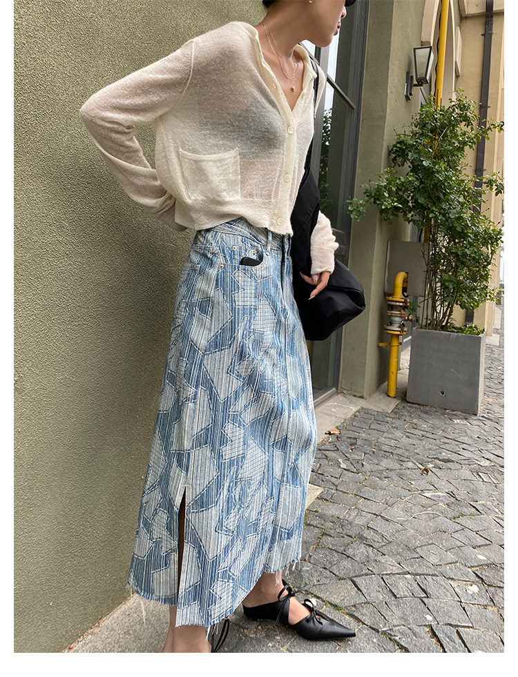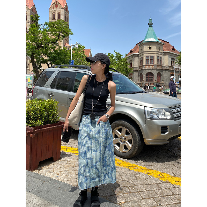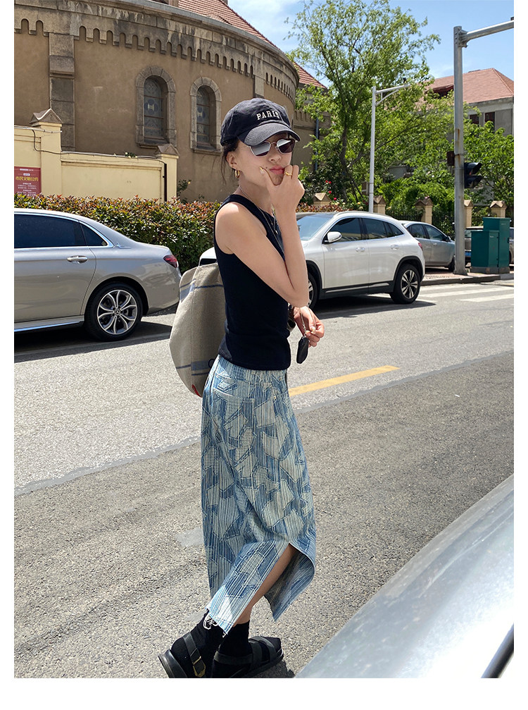 Летняя дизайнерская длинная джинсовая юбка, принт, высокая талия, длина макси