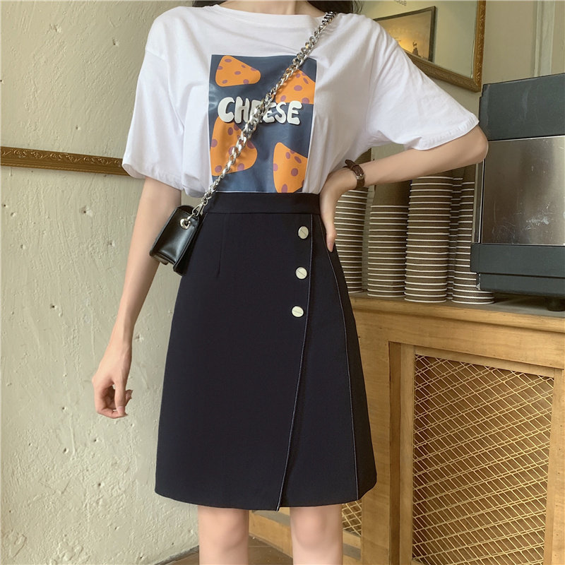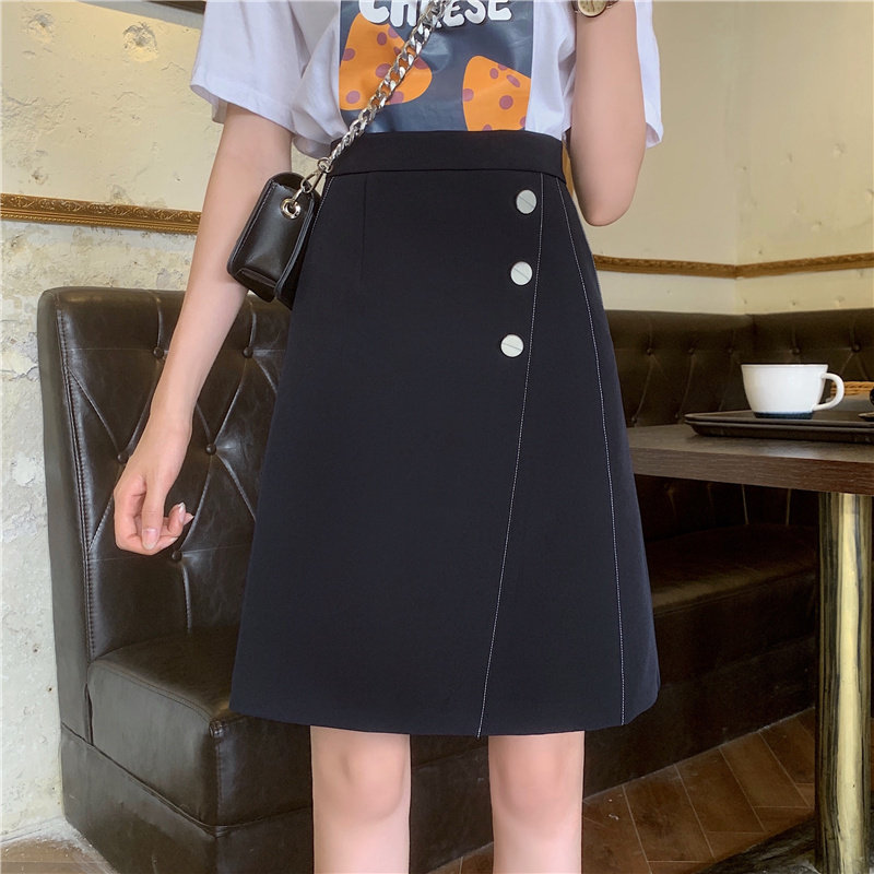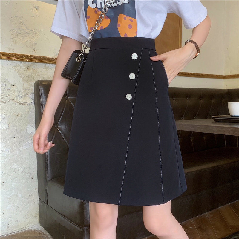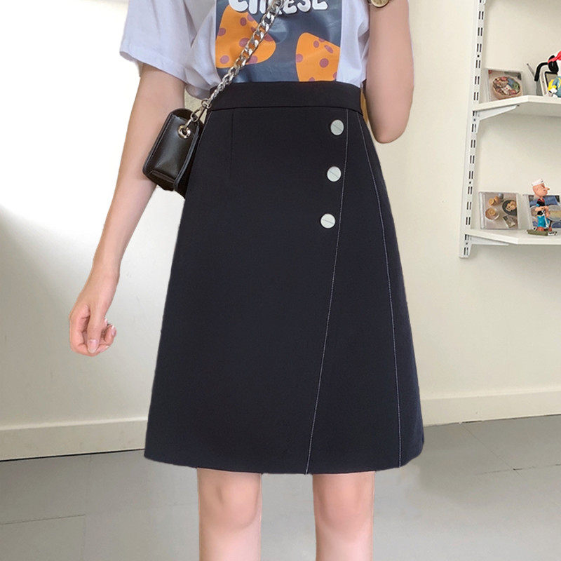 Летняя черная цветная юбка, А-силуэт, с акцентом на бедрах