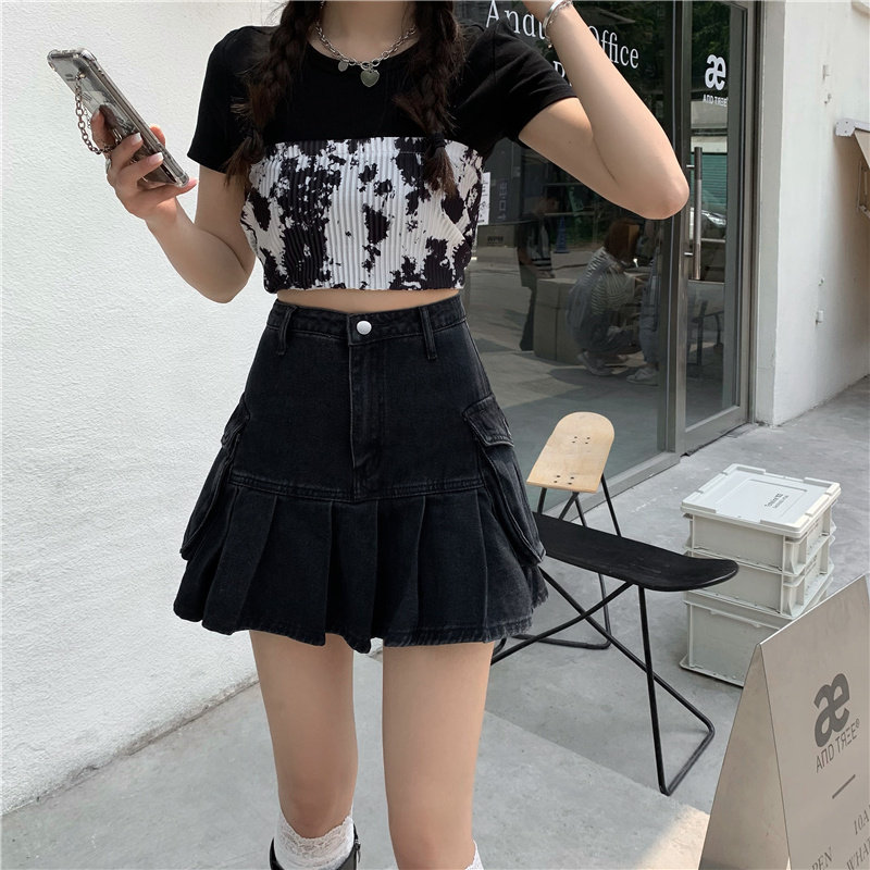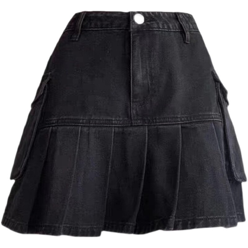 Черная летняя джинсовая юбка, юбка в складку, высокая талия, большой размер, плиссированная юбка