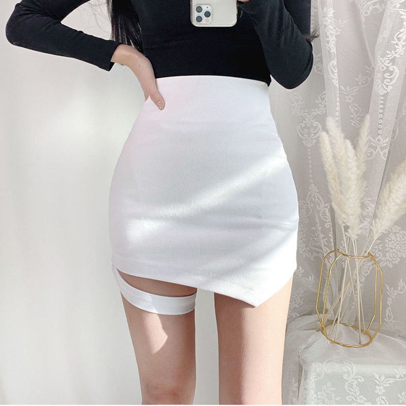 Эластичная дизайнерская белая юбка, коллекция 2021, высокая талия, в обтяжку, с акцентом на бедрах, тренд сезона