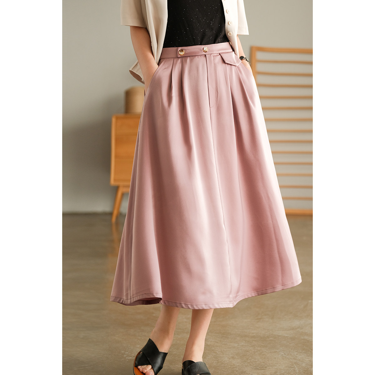 Шелковистая летняя длинная юбка, средней длины, А-силуэт