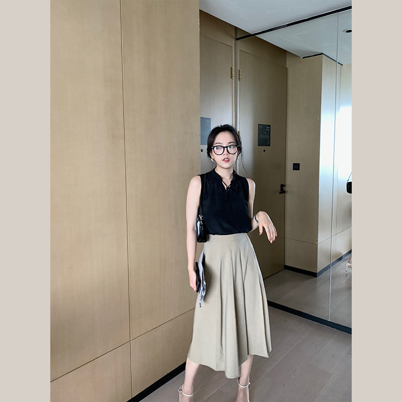 Длинная летняя юбка в складку, (в наличии на складе), А-силуэт, высокая талия